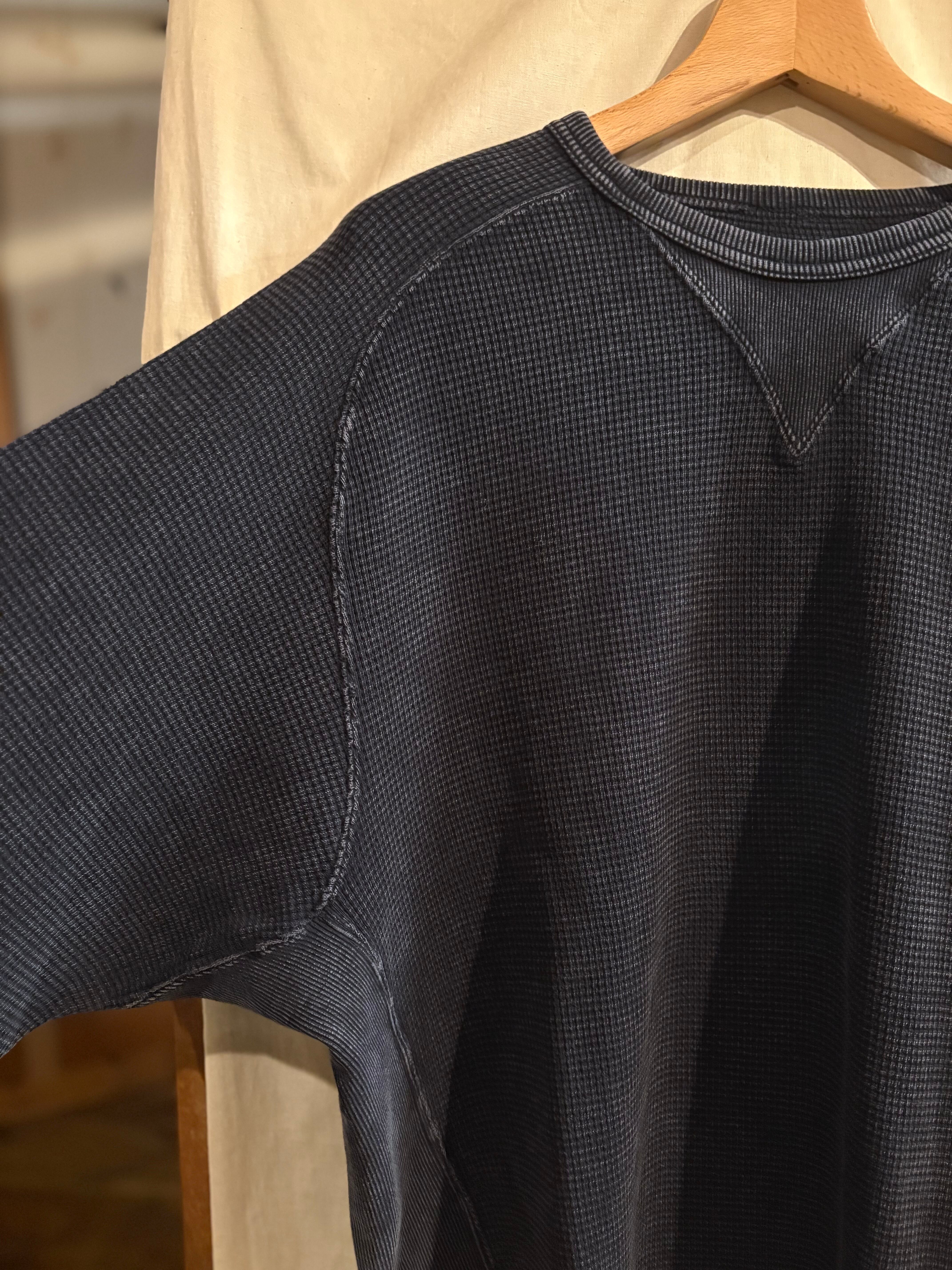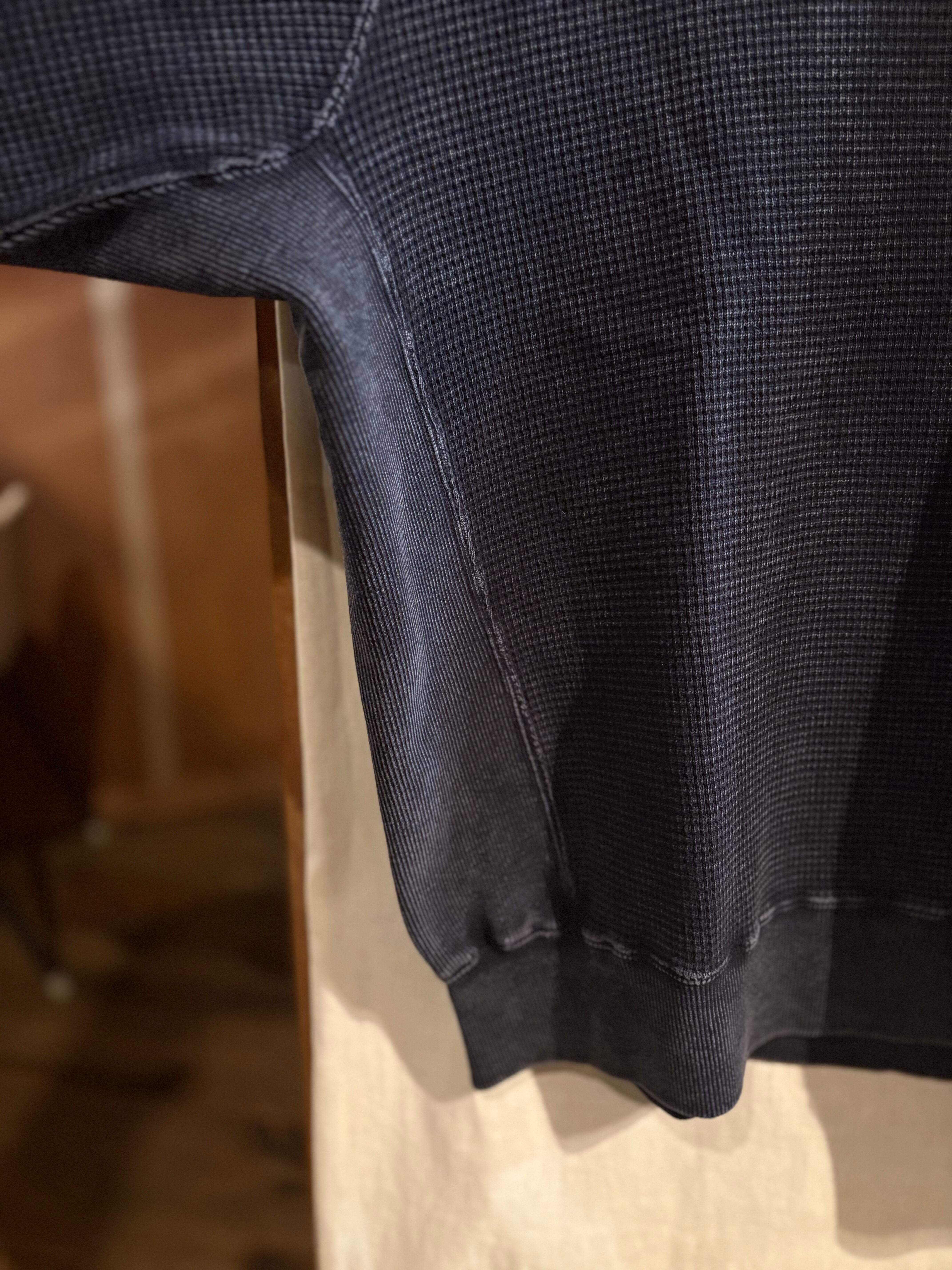 この染料を導入した結果、超リアルな褪せ感とビンテージのディティールと古着で希少な素材感に1枚で着るのに嬉しい緩めのサイジングがドンピシャに融合して、ありそうで無いサーマルロンTの完成。