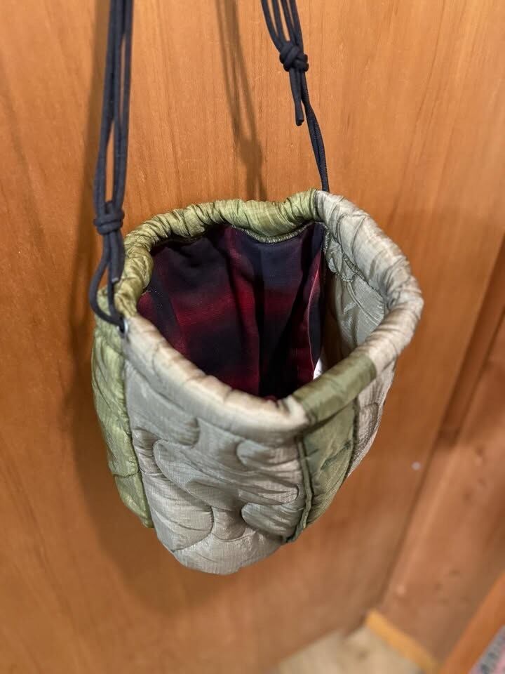 手持ちも斜めがけもできるドローストリングバッグへリメイク。
