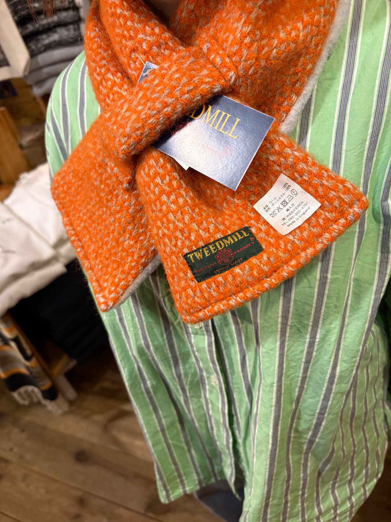 ウール素材とフリースを組み合わせた、表裏で異なるバイカラーのマフラー