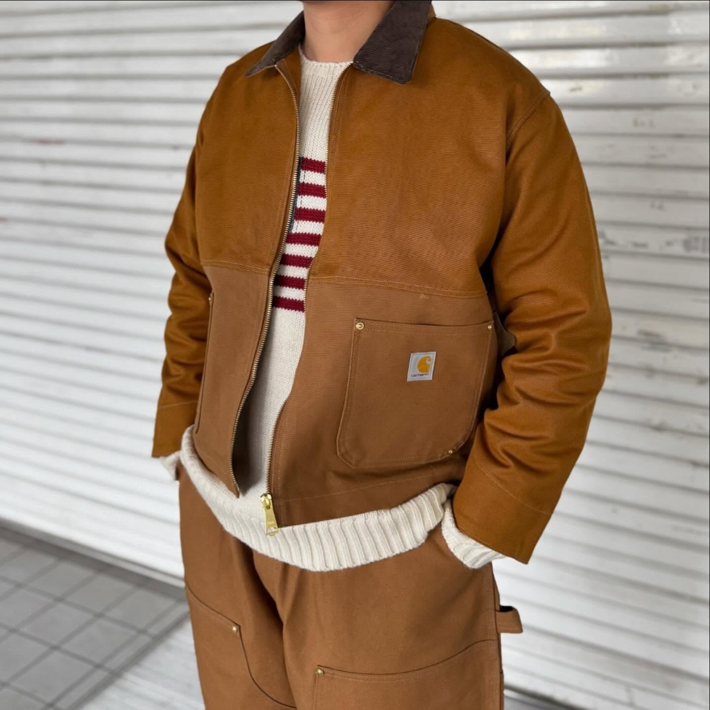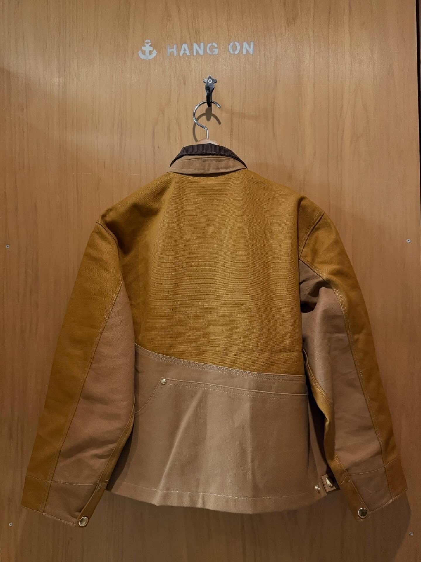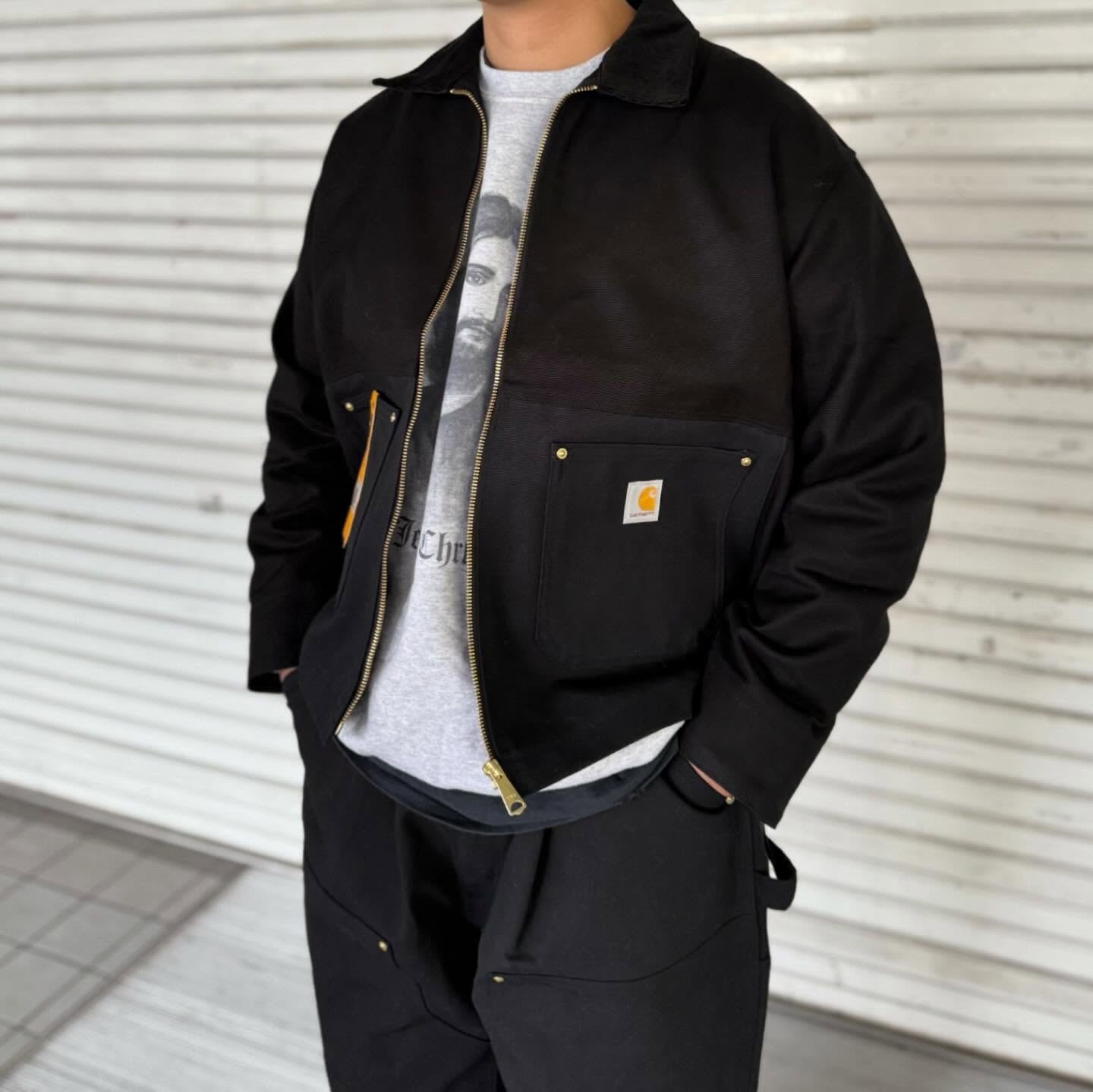 USカーハートのダブルニーパンツを解体し、アクティブジャケットにアップサイクルした一着。