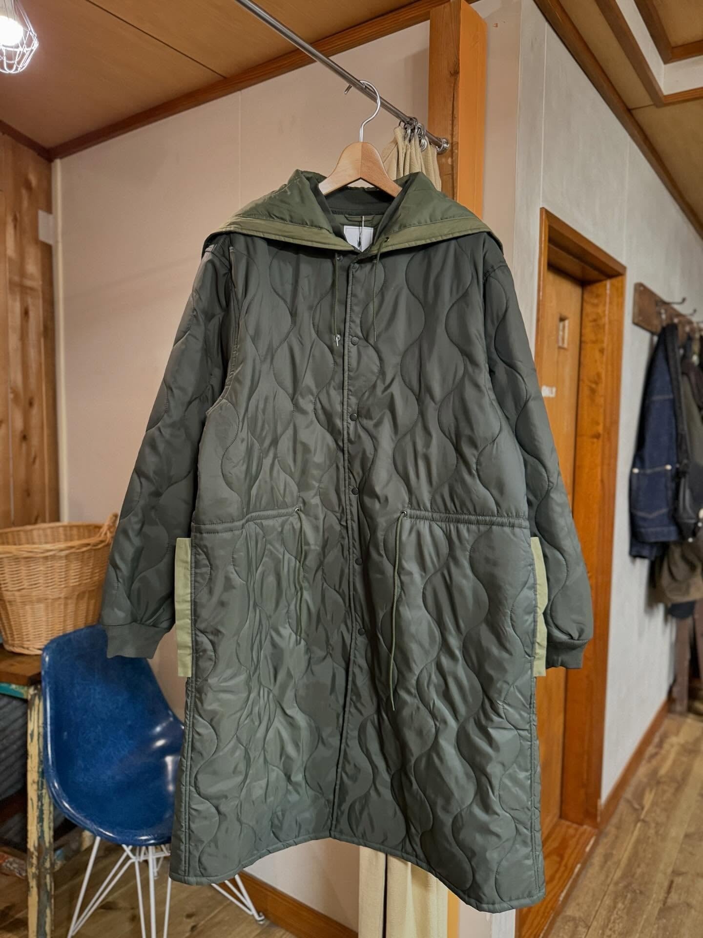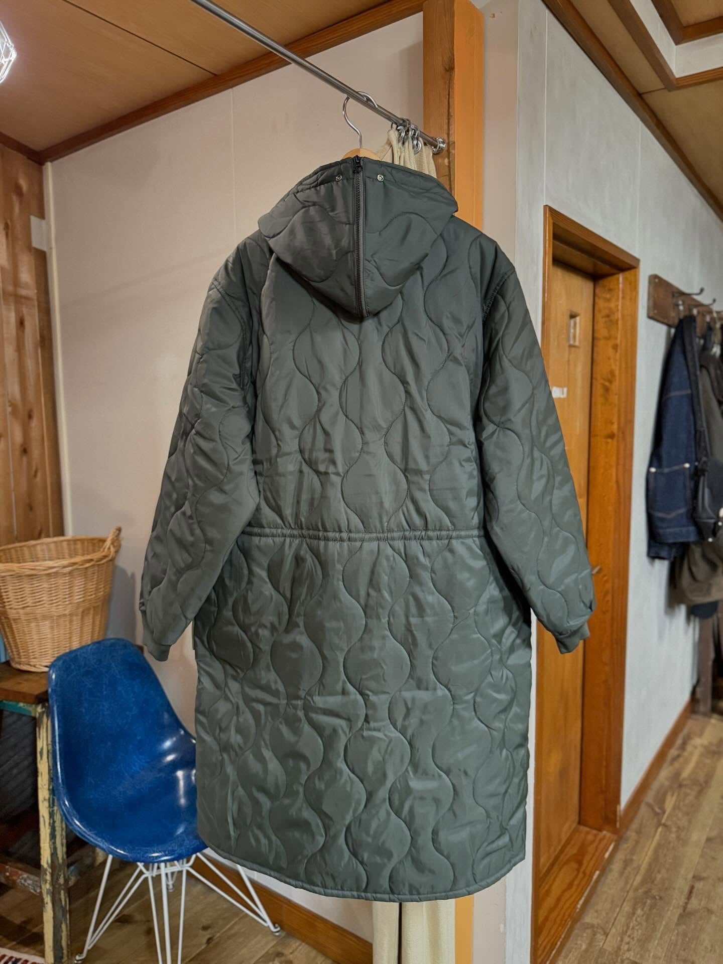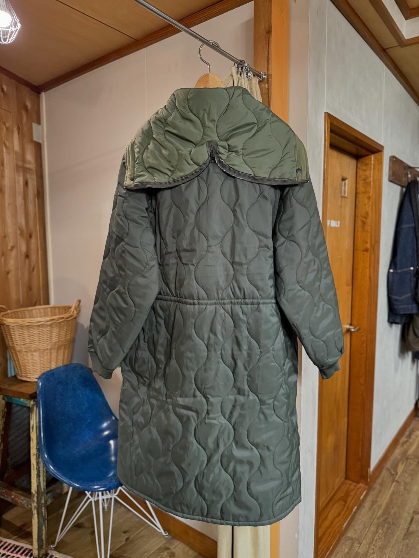 1980年代のアメリカ軍の食品検査官用コートのライナー(US ARMY FOOD INSPECTOR’S SMOCK QUILTING LINER)をベースにアップデートした一着。