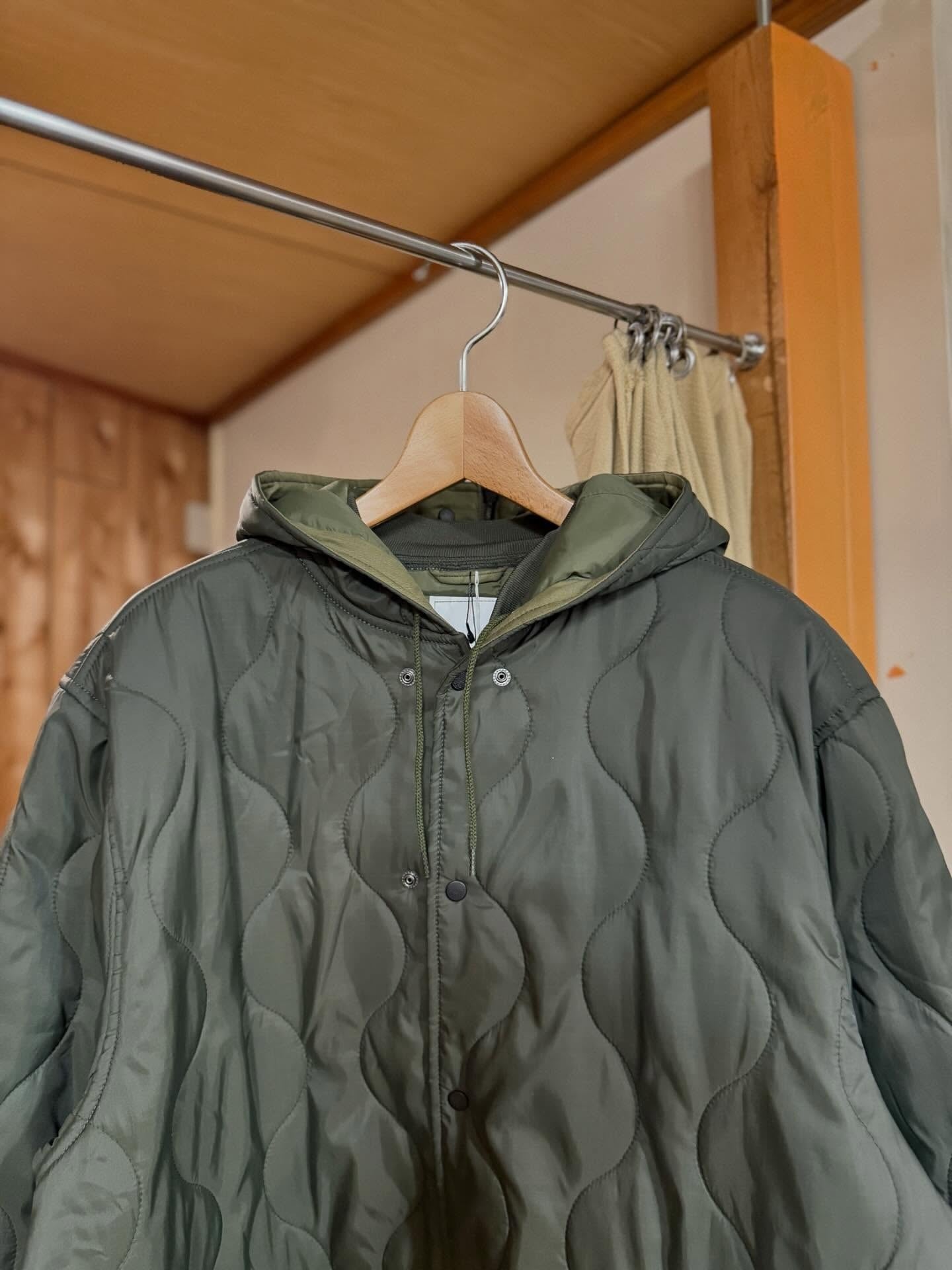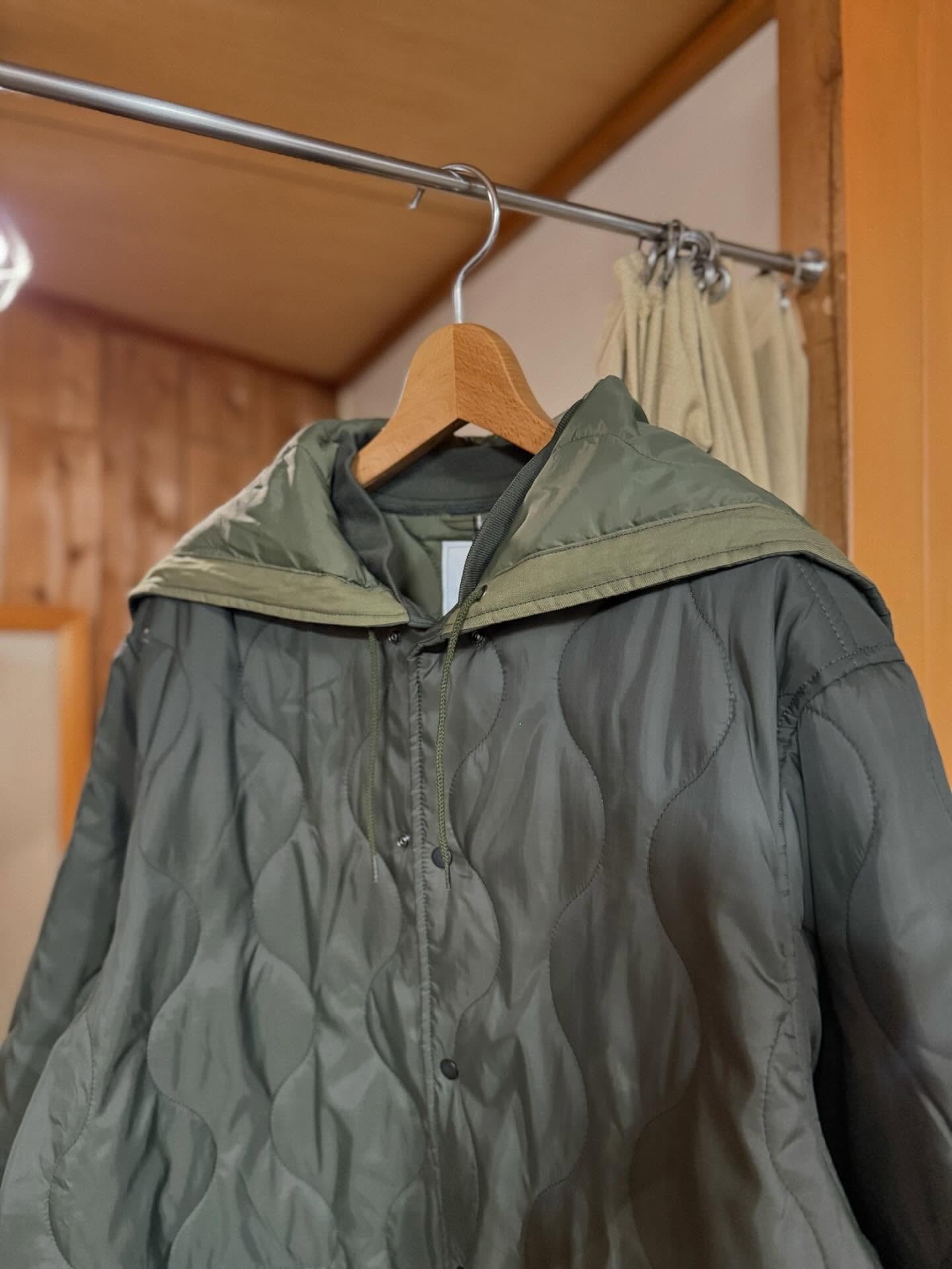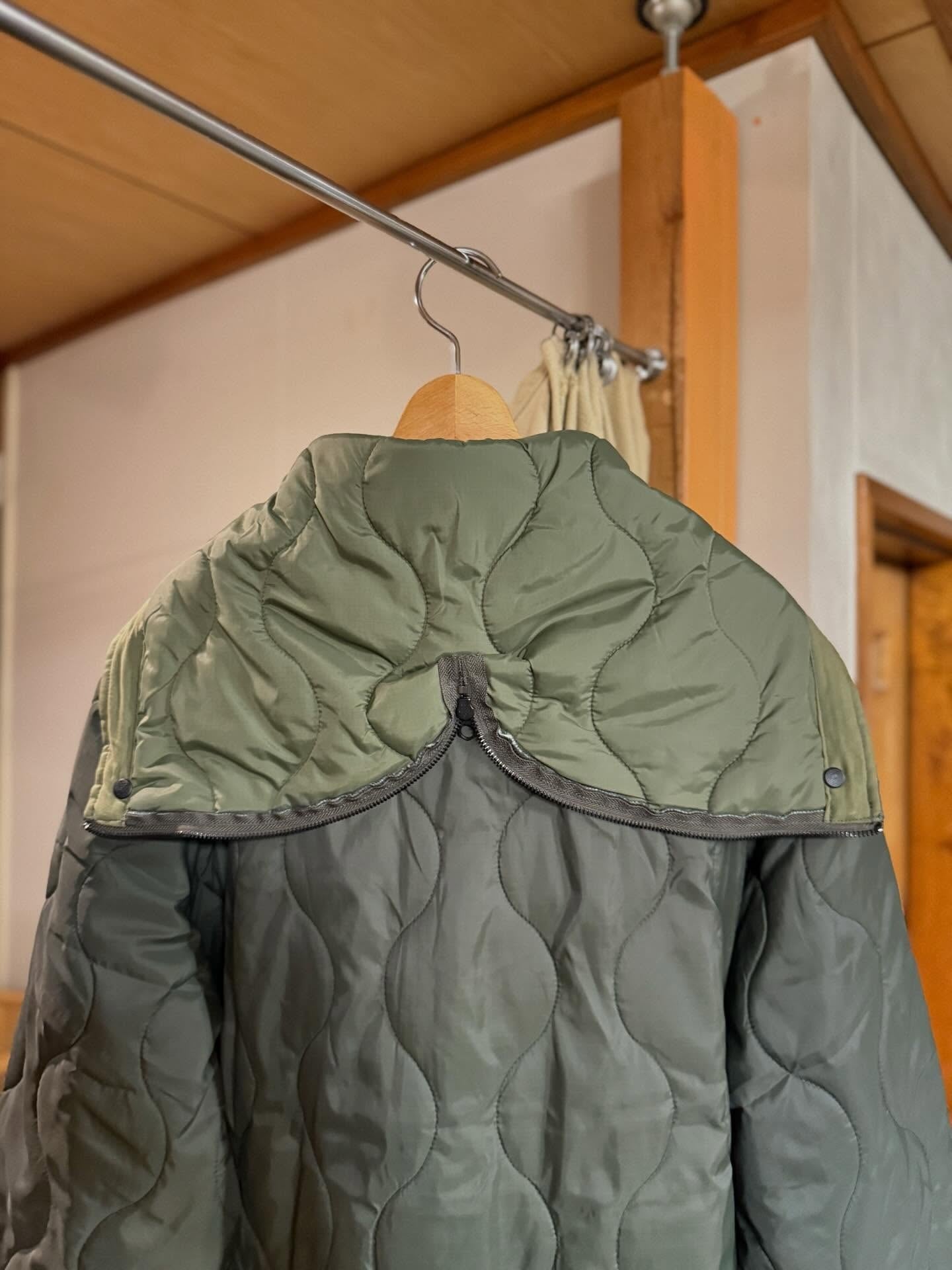 1980年代のアメリカ軍の食品検査官用コートのライナー(US ARMY FOOD INSPECTOR’S SMOCK QUILTING LINER)をベースにアップデートした一着。