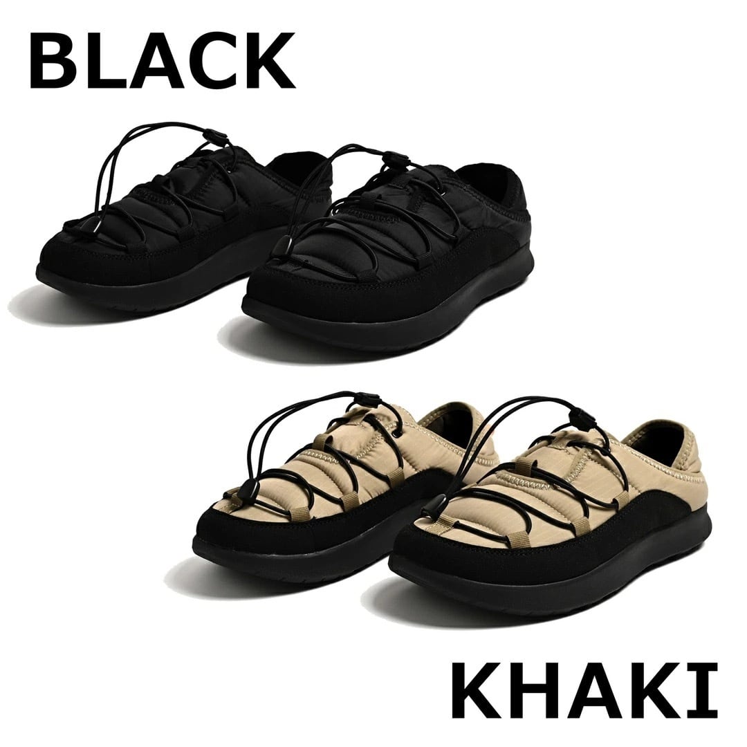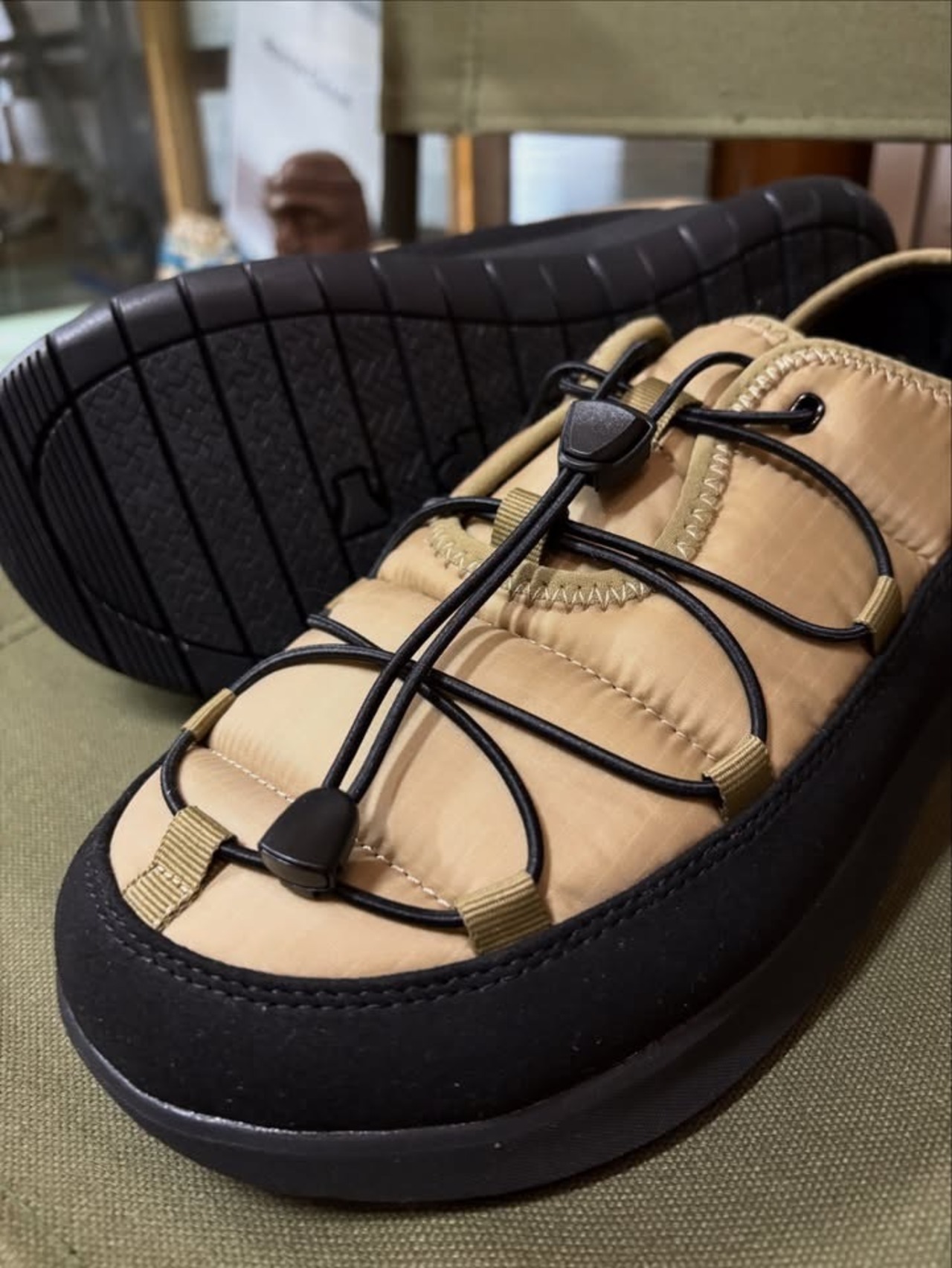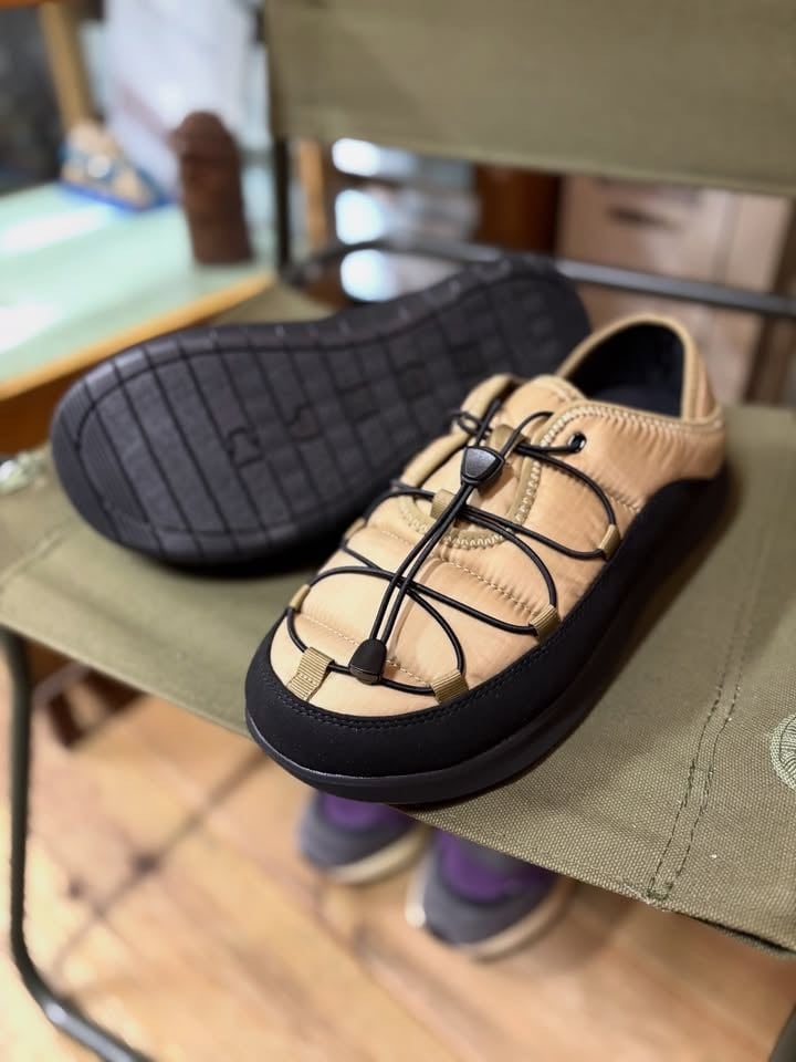 踵を踏んでも履ける2WAYタイプ。ドローコードでサイズ調整も出来、コンパクトにまとめる事も出来ます。