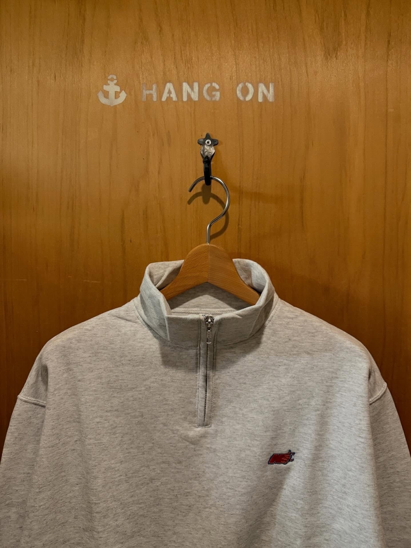 アメリカンなハーフジップのスウェットボディにワンポイント刺繍を施した一着。