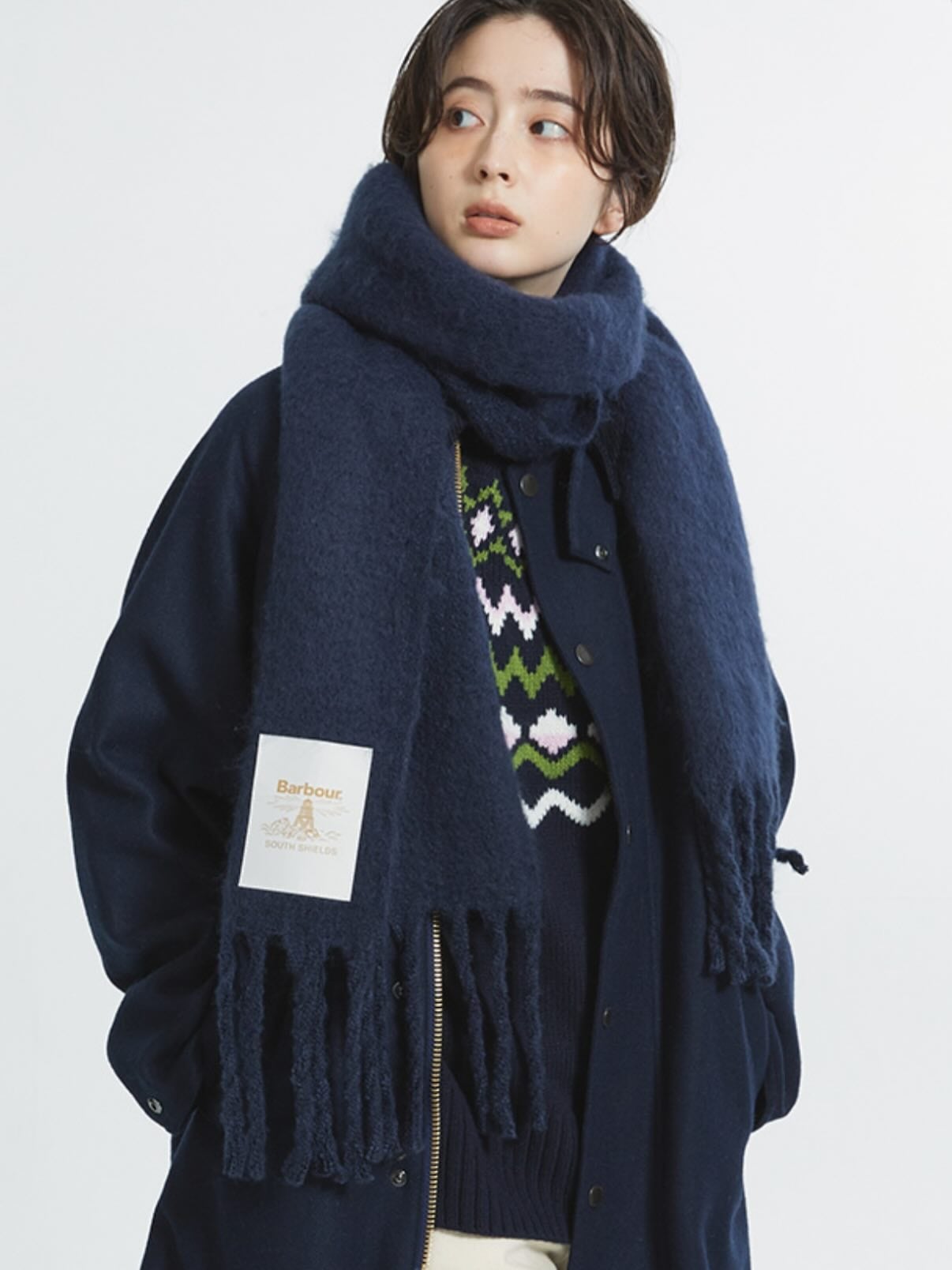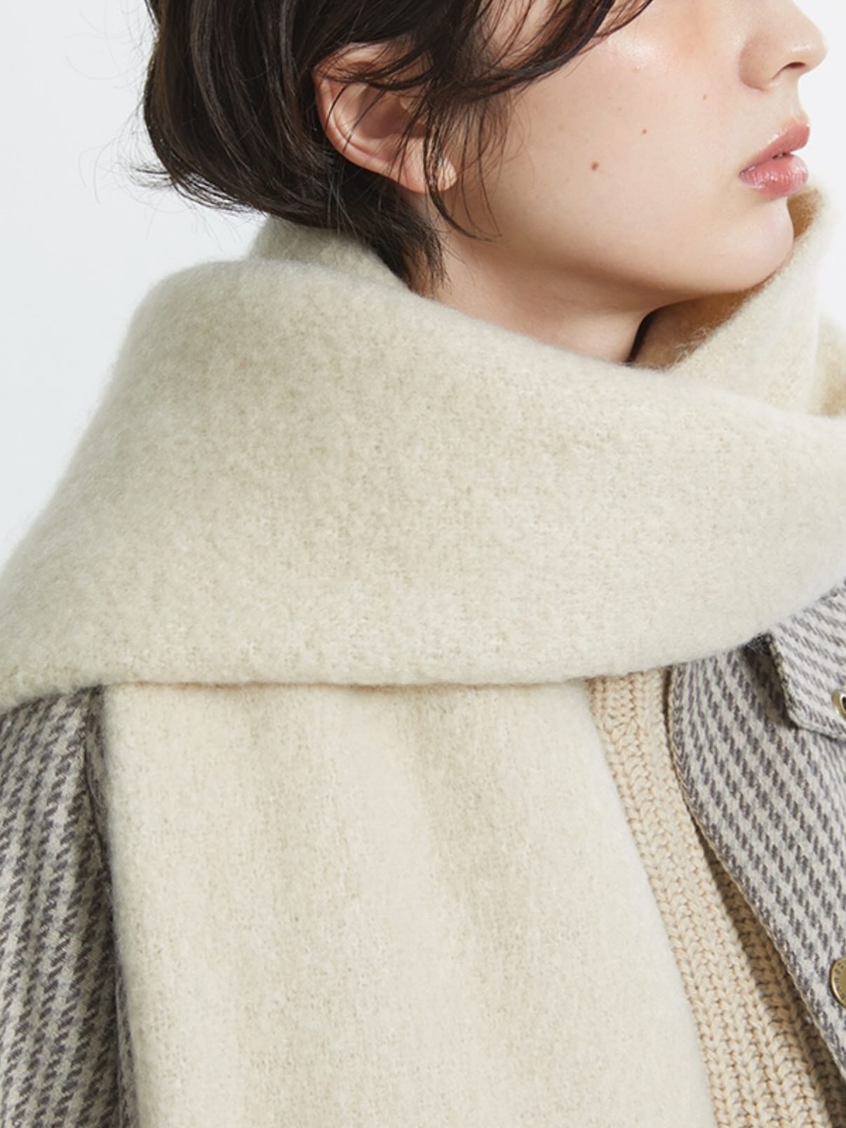 大判サイズのマフラーは保温性の高さはもちろん様々な巻き方をお楽しみいただけます。