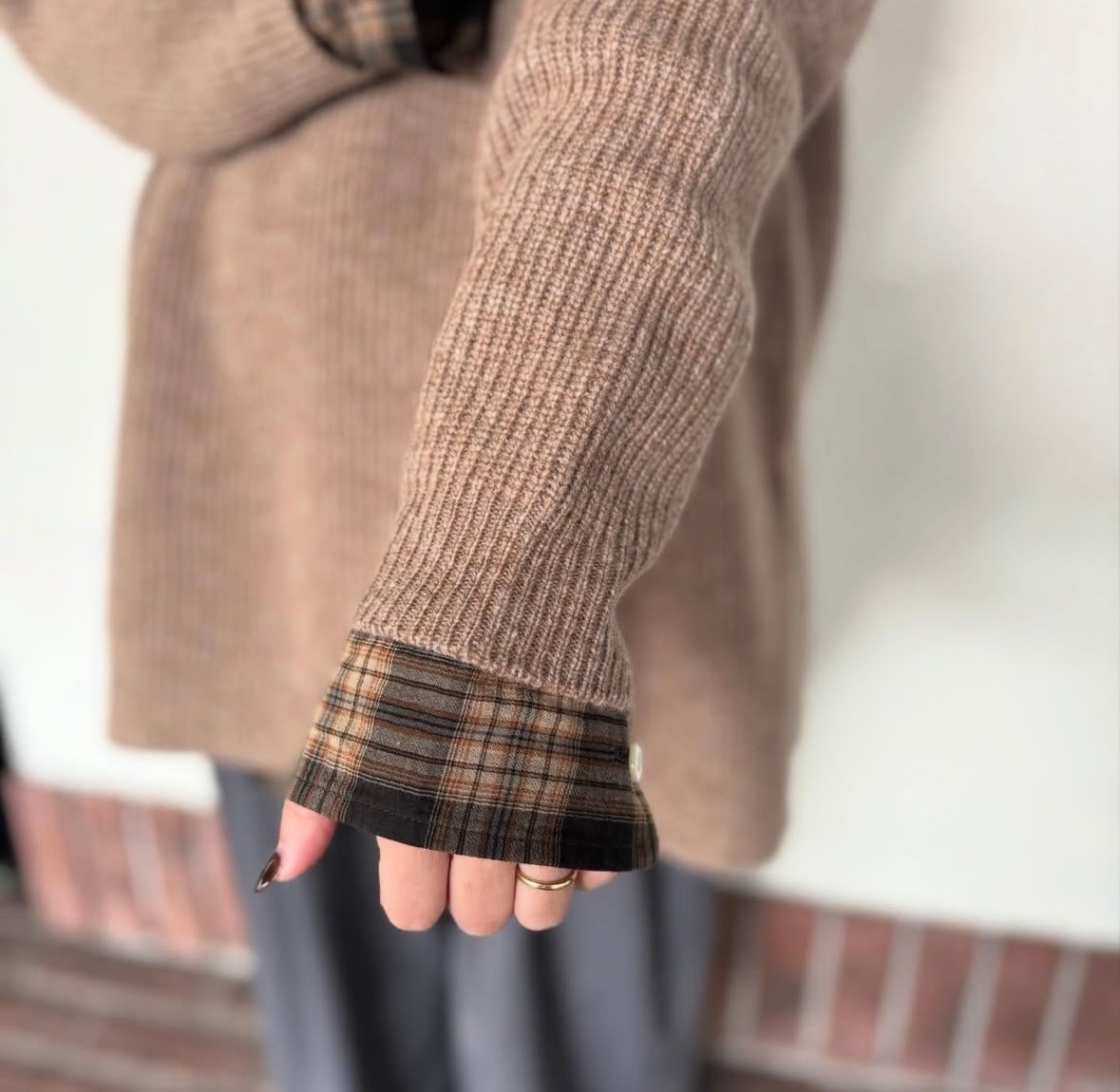 インナーにはチェックシャツやタートルなど、合わせるアイテム次第で雰囲気を変えられる万能デザイン。