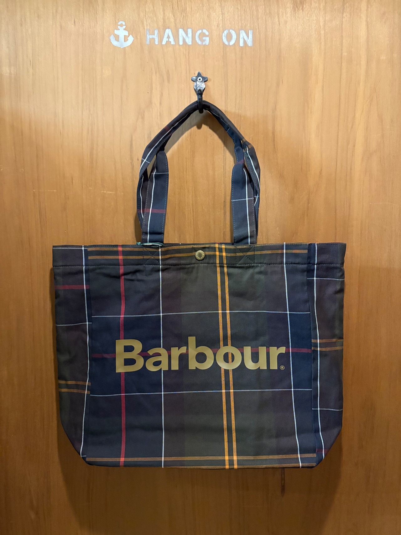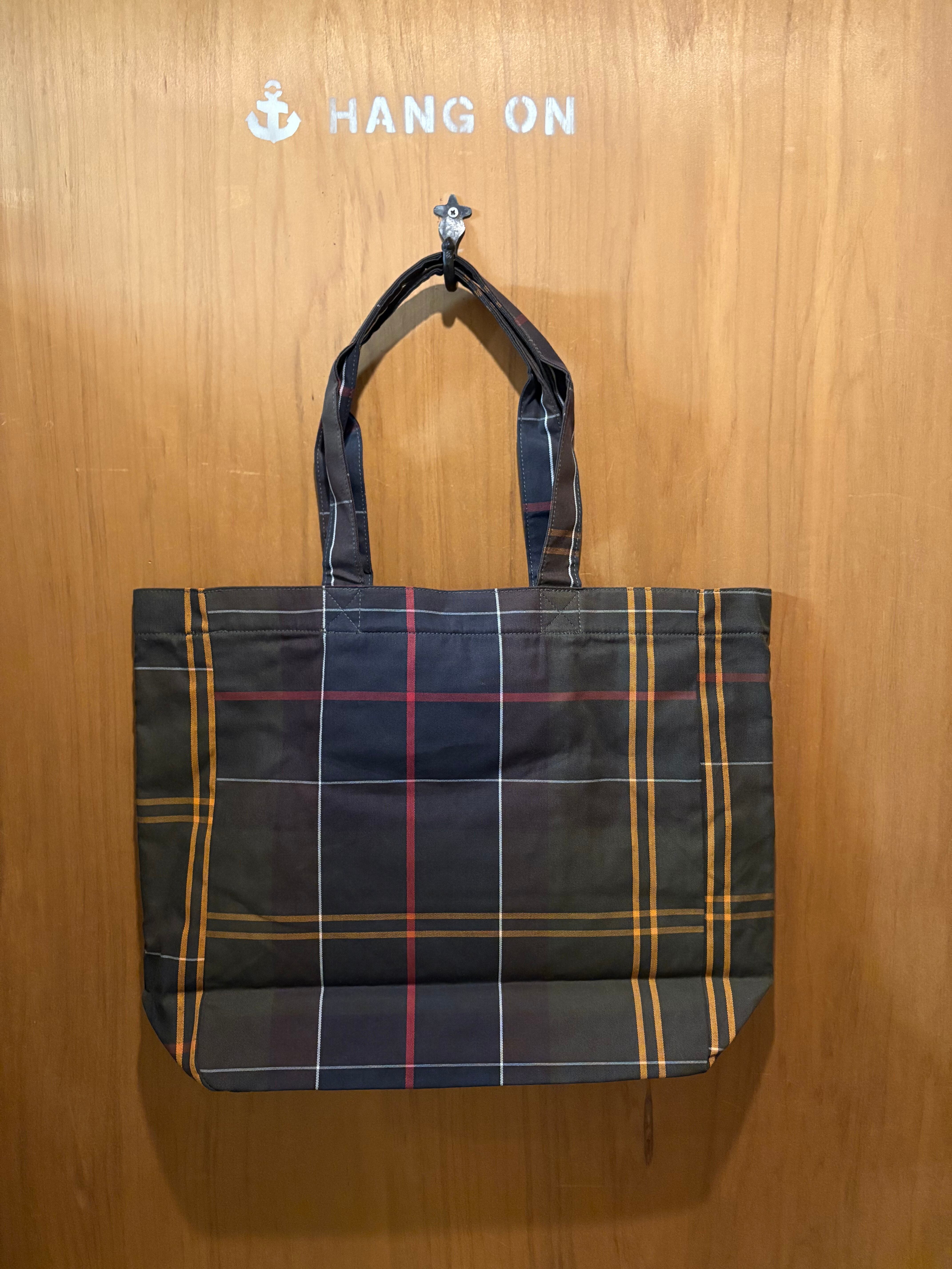 Barbourらしさを象徴するクラシックなタータンチェックを全体にあしらったトートバッグ。