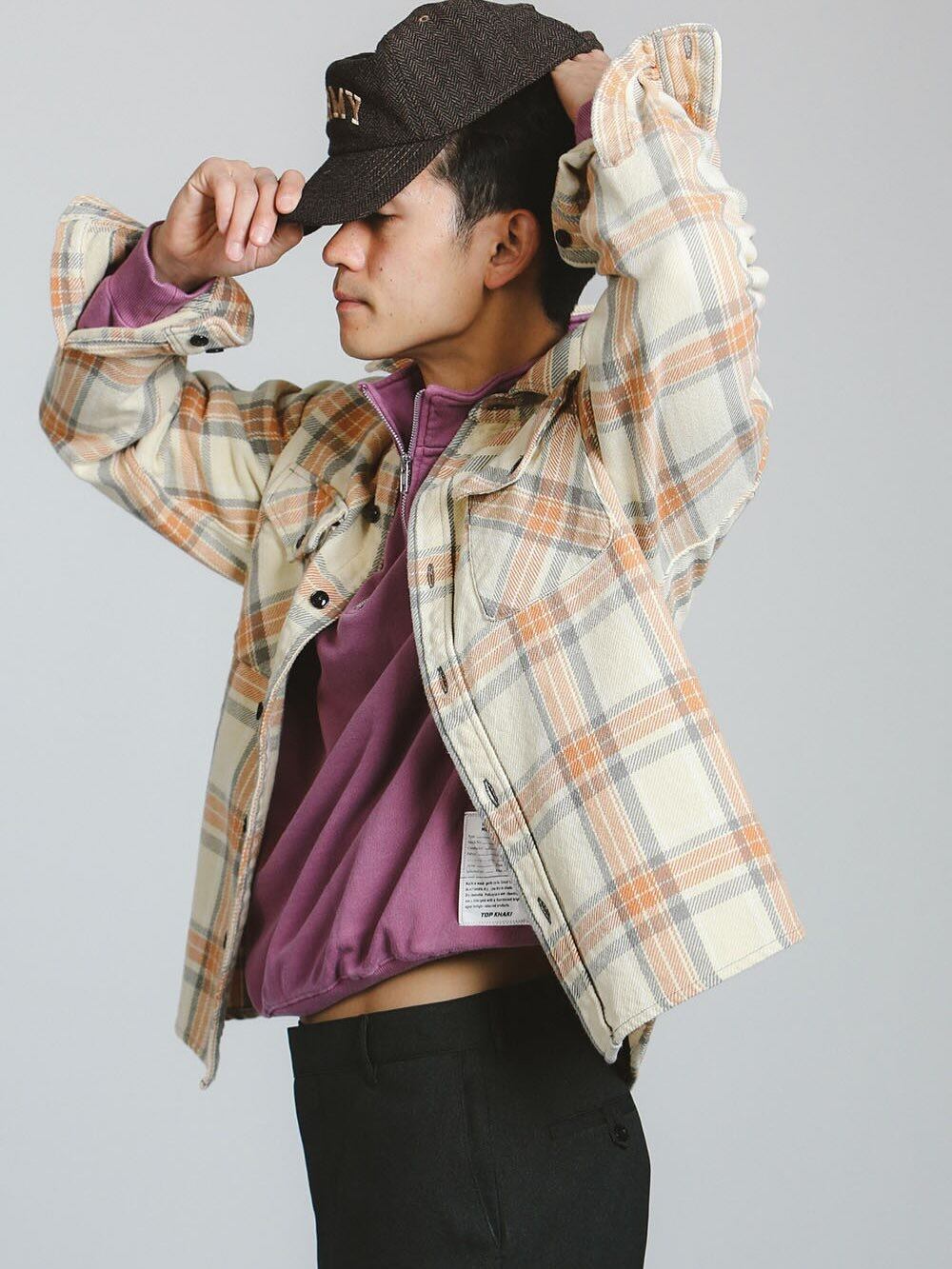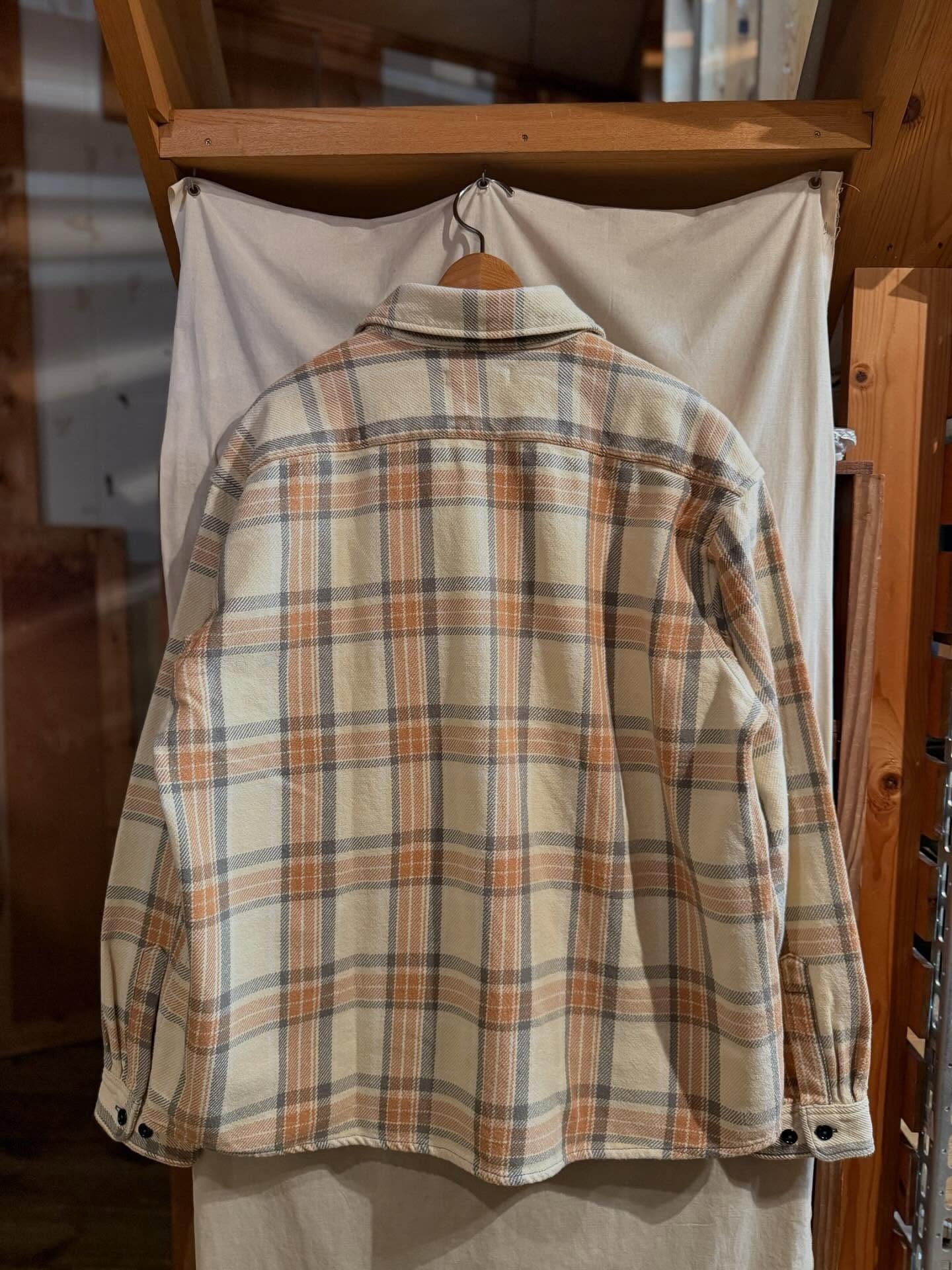 CPOシャツとは、海軍の作業着用シャツがルーツで、シャツとアウターの中間的な存在として親しまれています。チェック生地にブリーチ加工を施し、なかなか見ない褐色感のある風合いが魅力です。