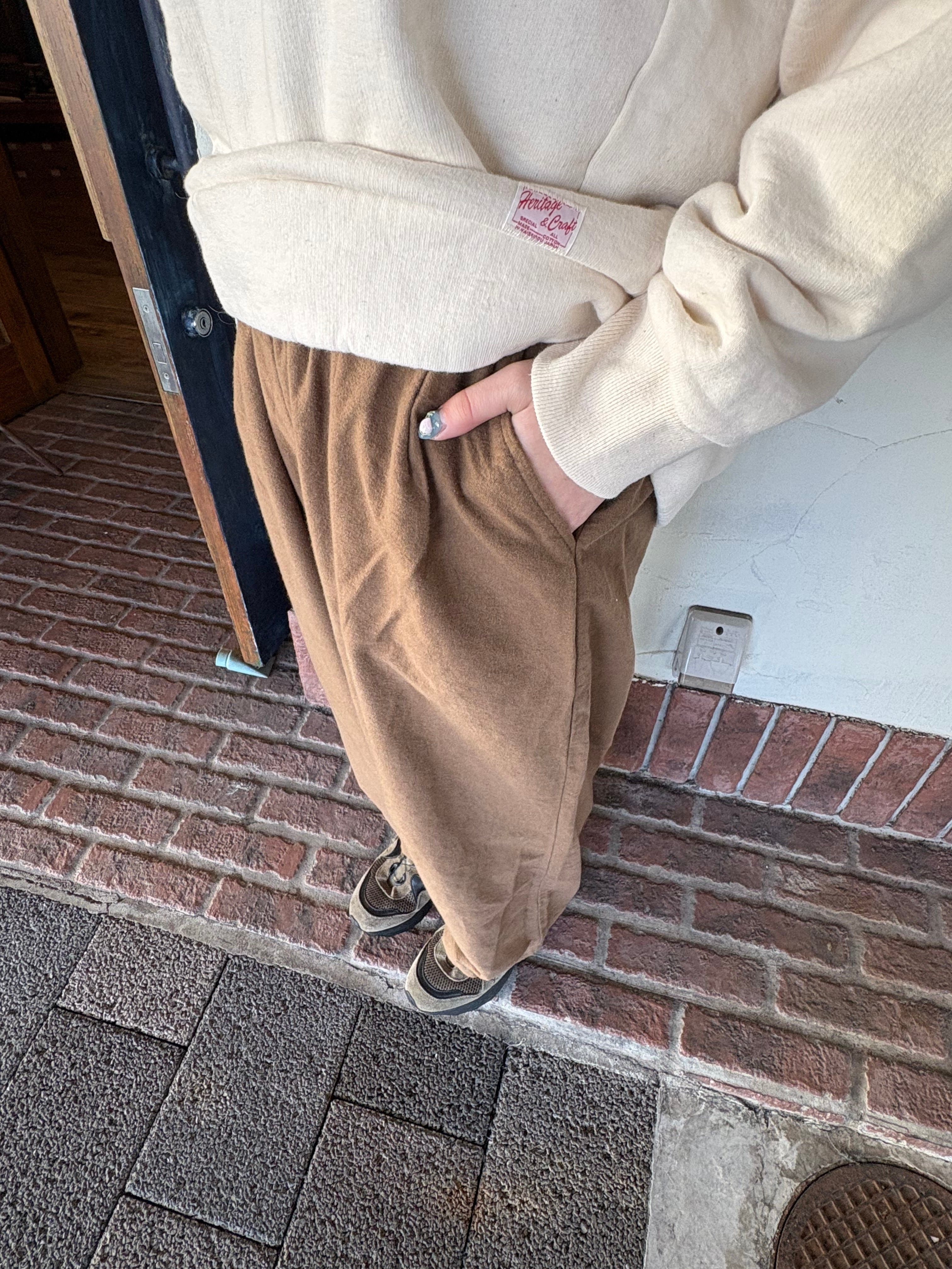 ふんわり起毛したコットン生地で、あたたかみのある履き心地です。