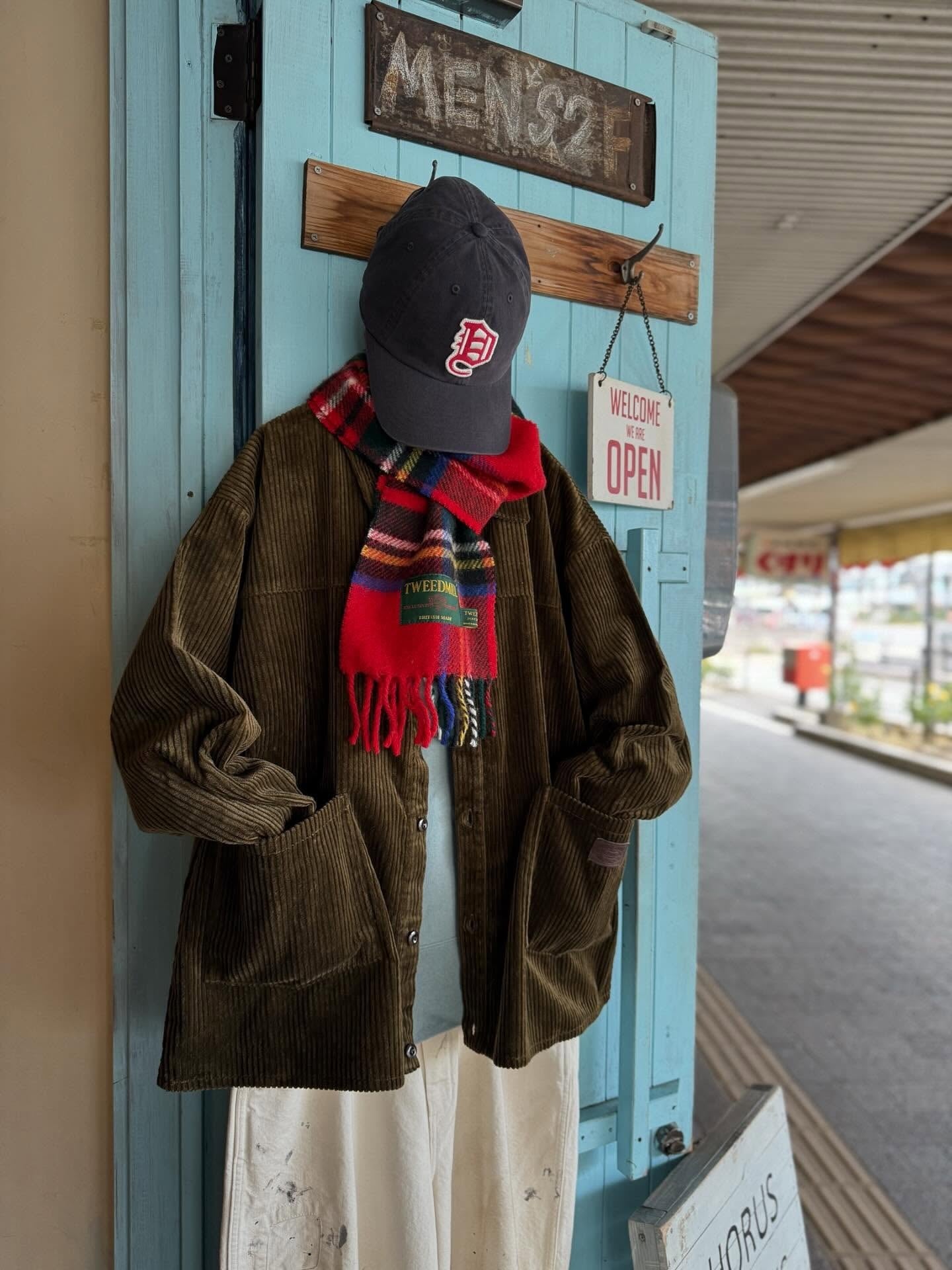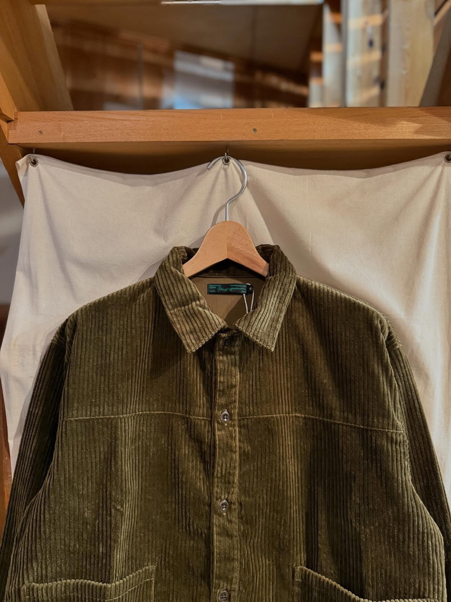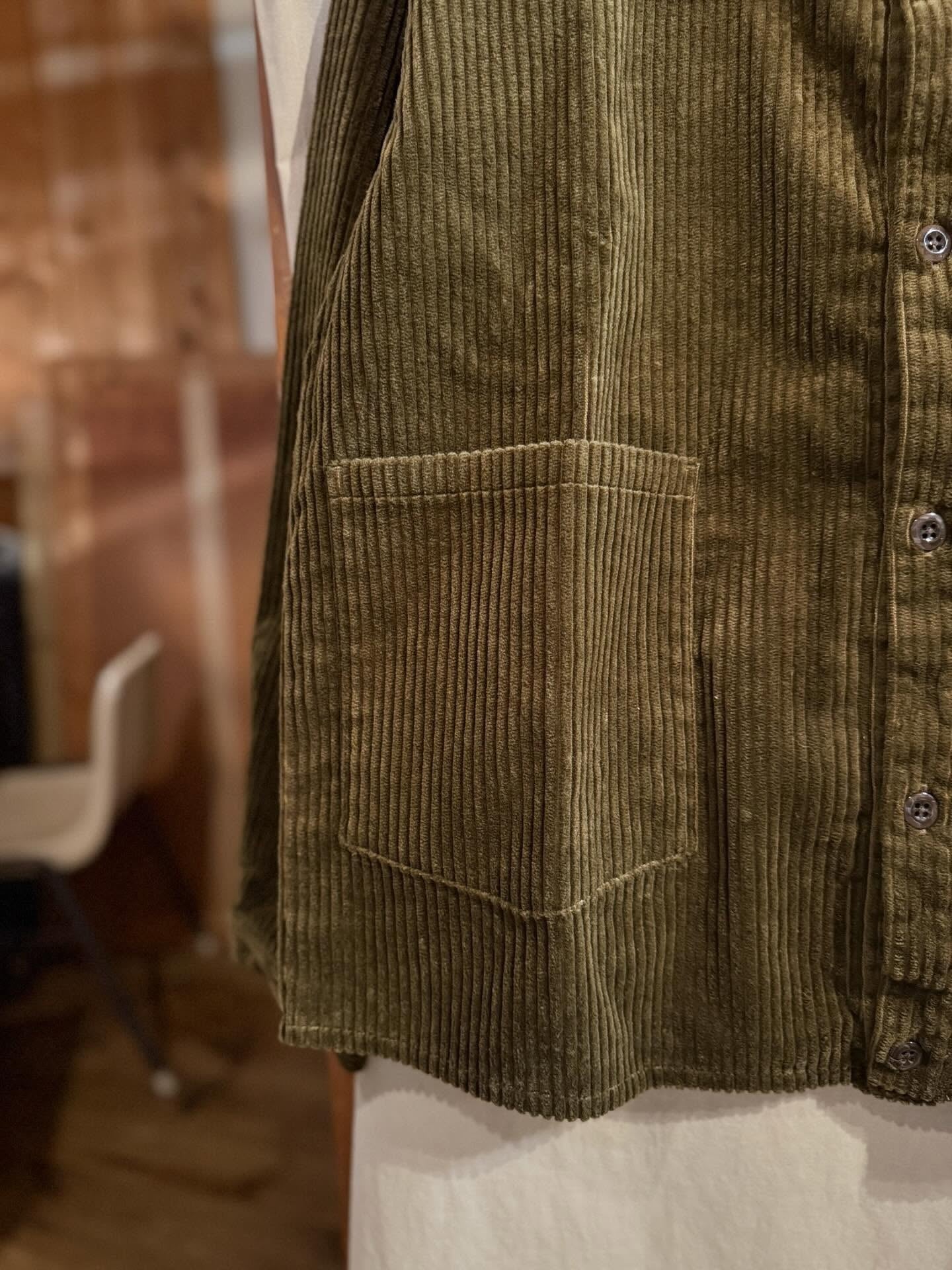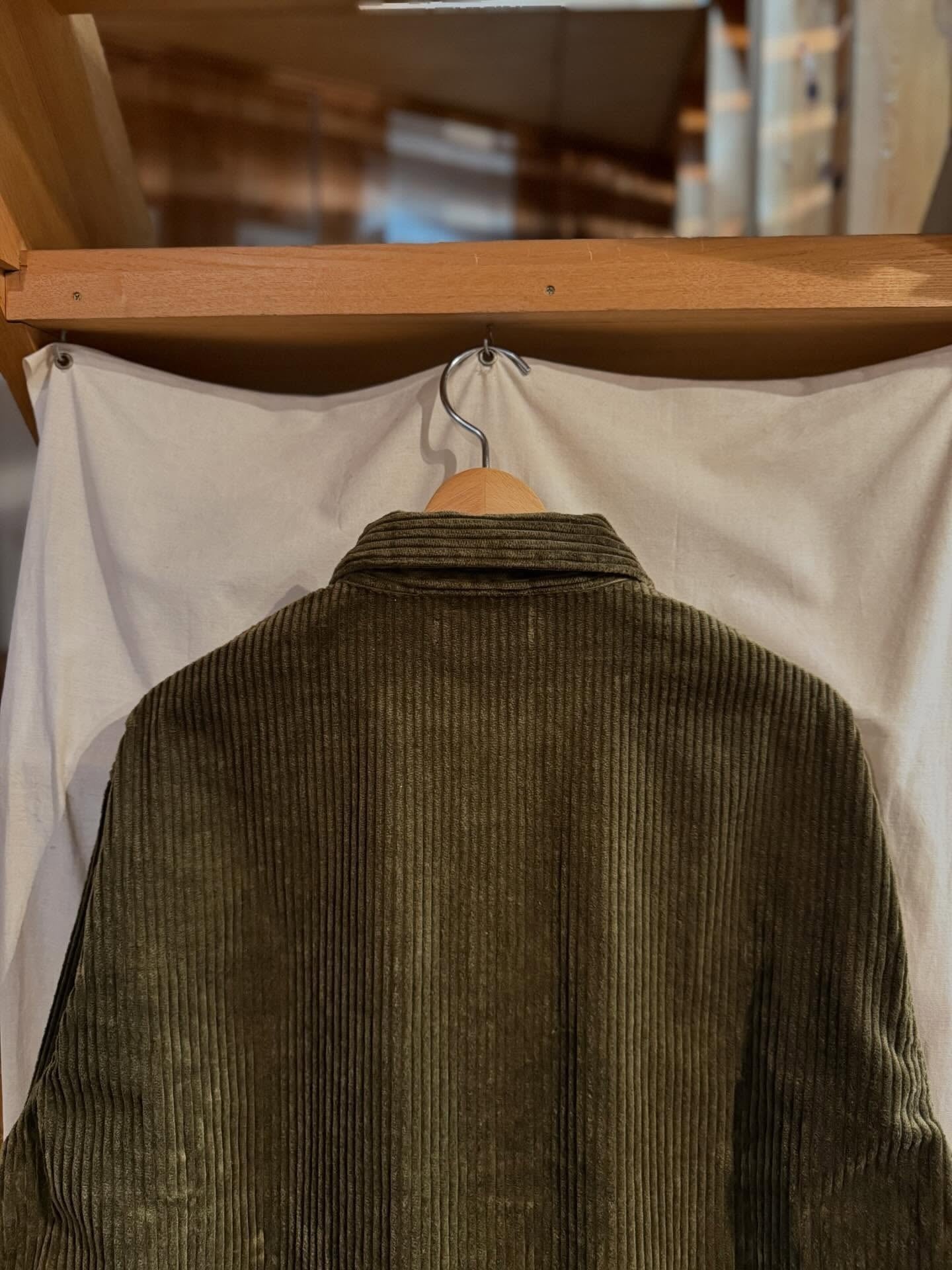 この温かみのあるブラウンカラーに、太い畝、生地の柔らかさがマッチしたシルエットで、身幅は広く着丈はジャストな良いところを突いた絶妙なゆるさのあるジャケット。