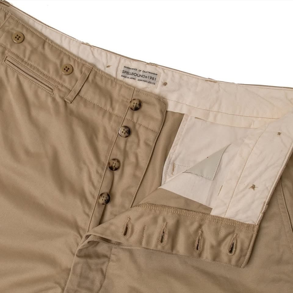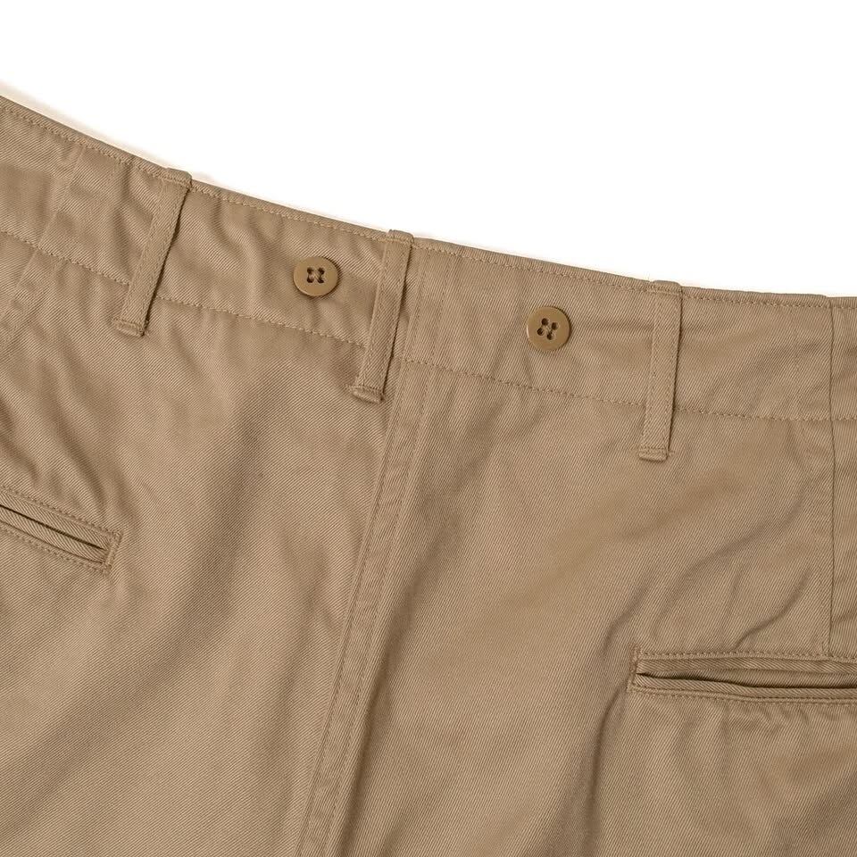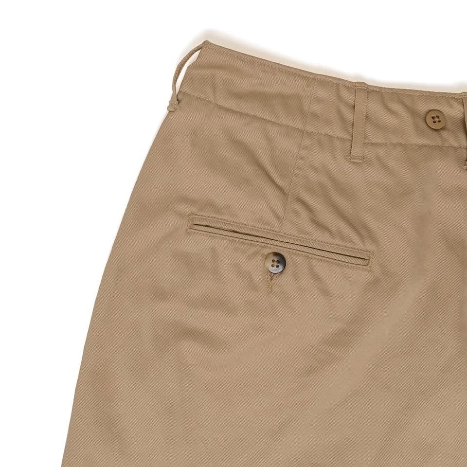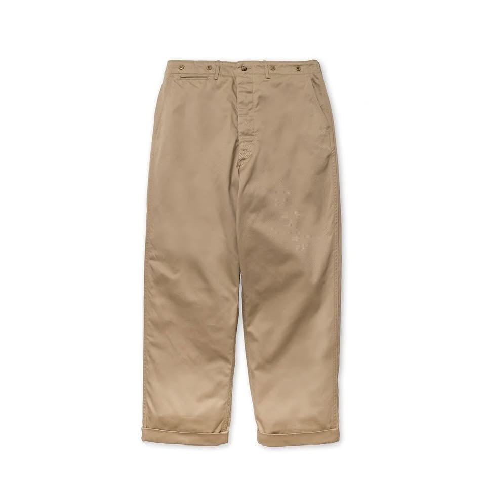 米軍の43カーキをデザインベースに、股上が深く迫力のあるシルエットに仕立ています。