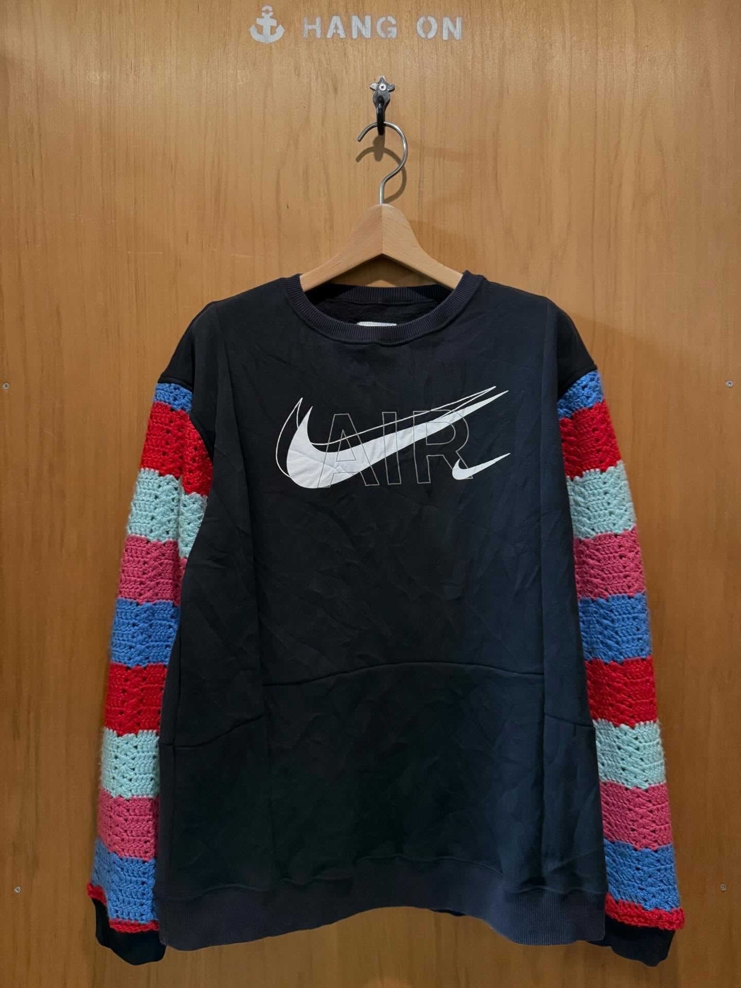 古着のスウェットを解体し、パッチワークにして再構築した一着。