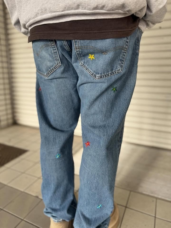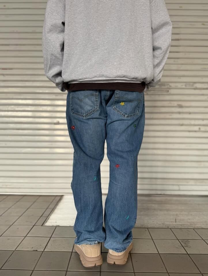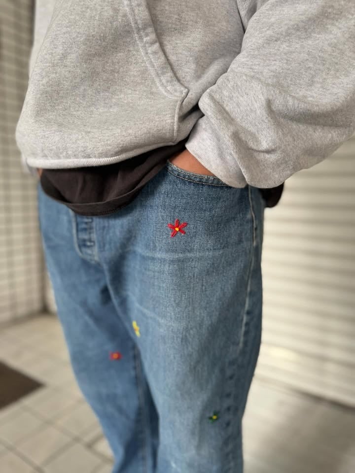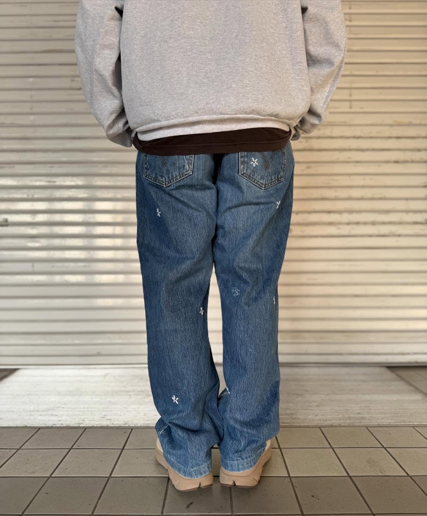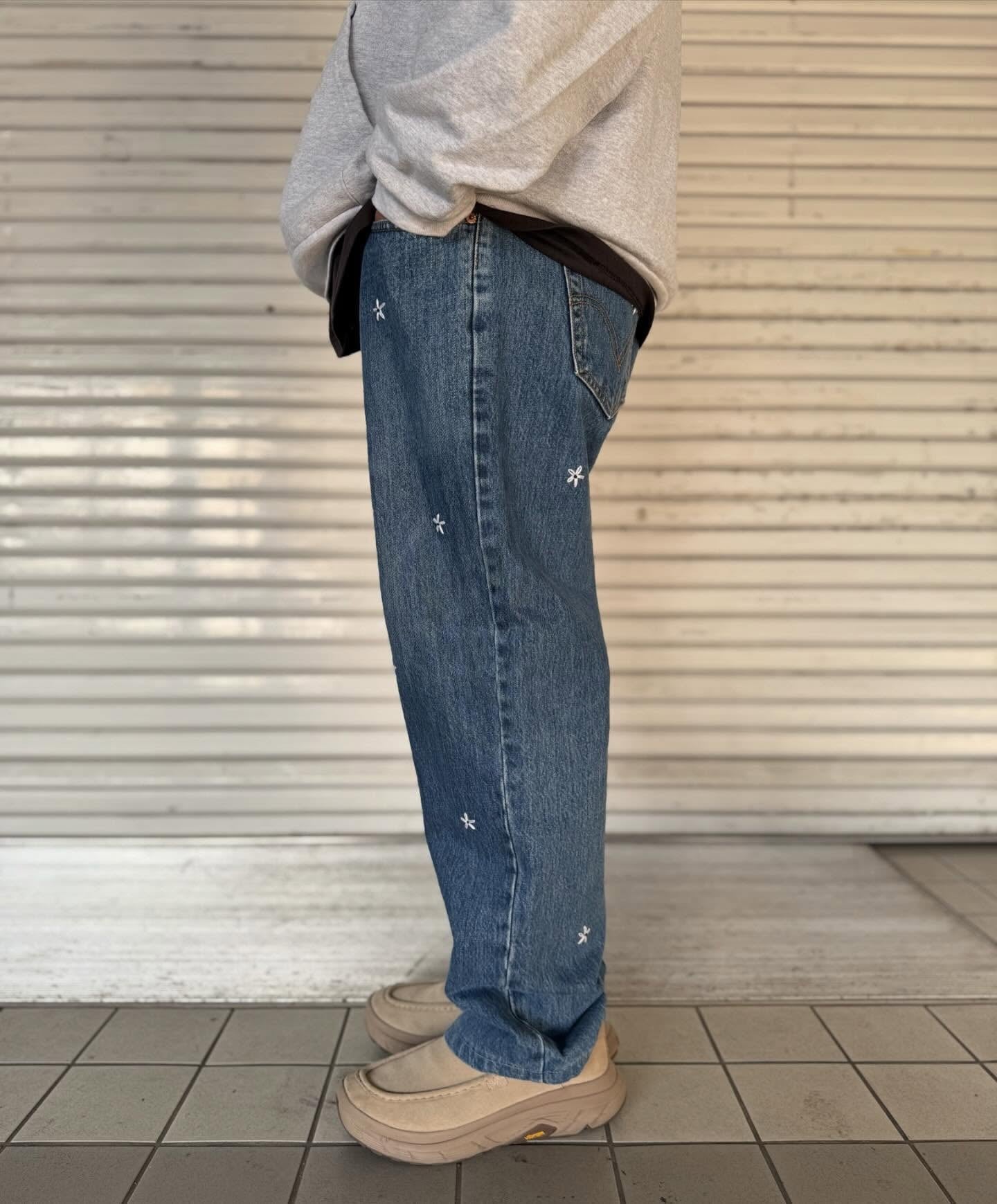 "花刺繍 Denim Pants"