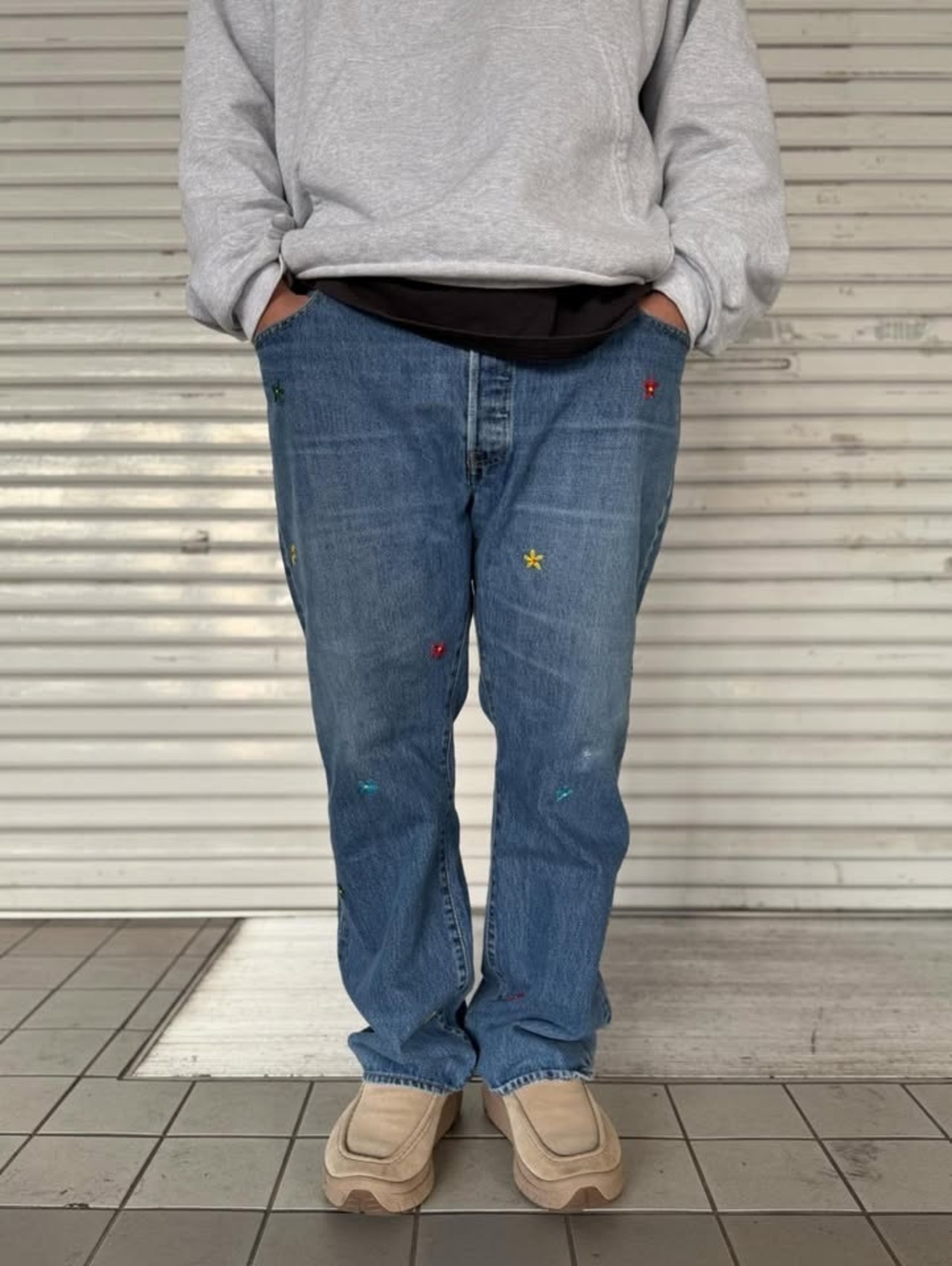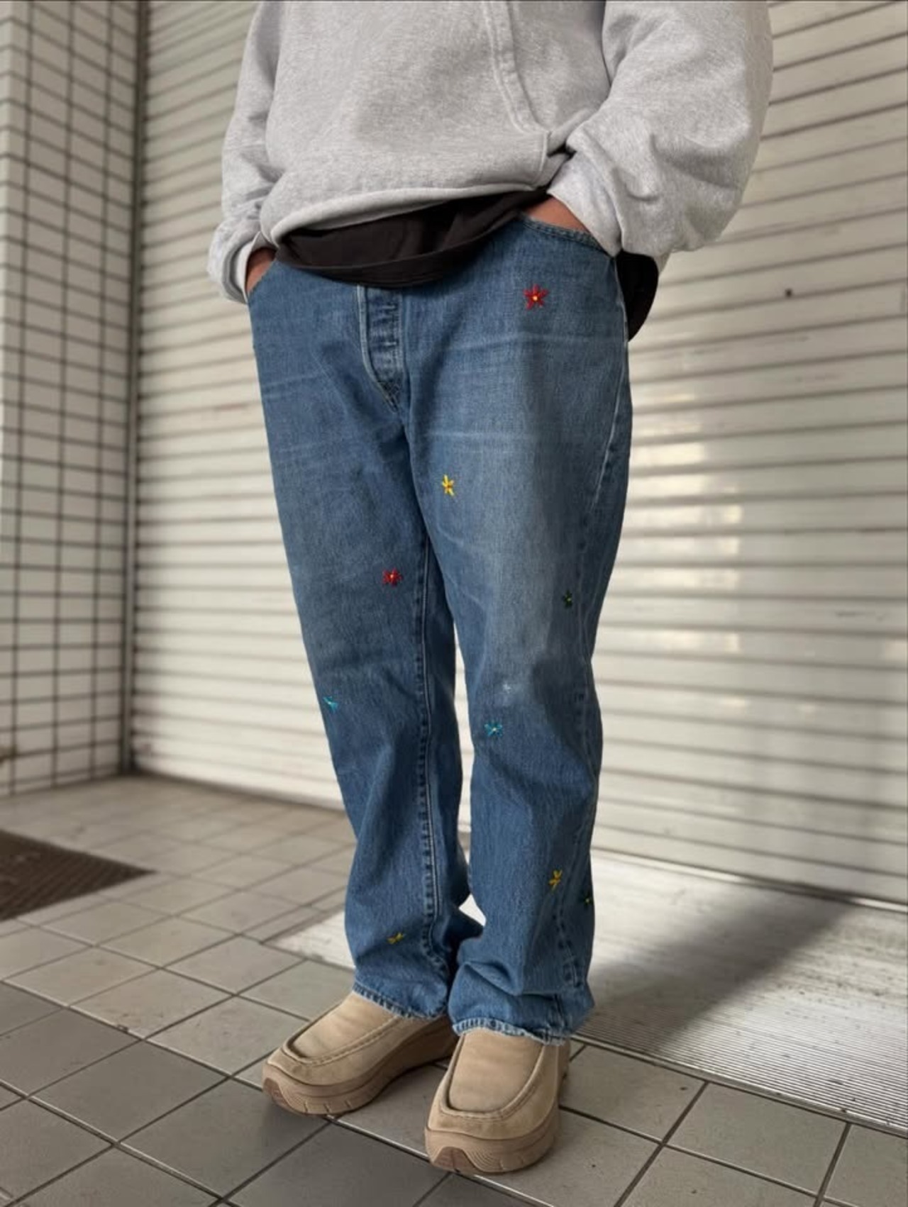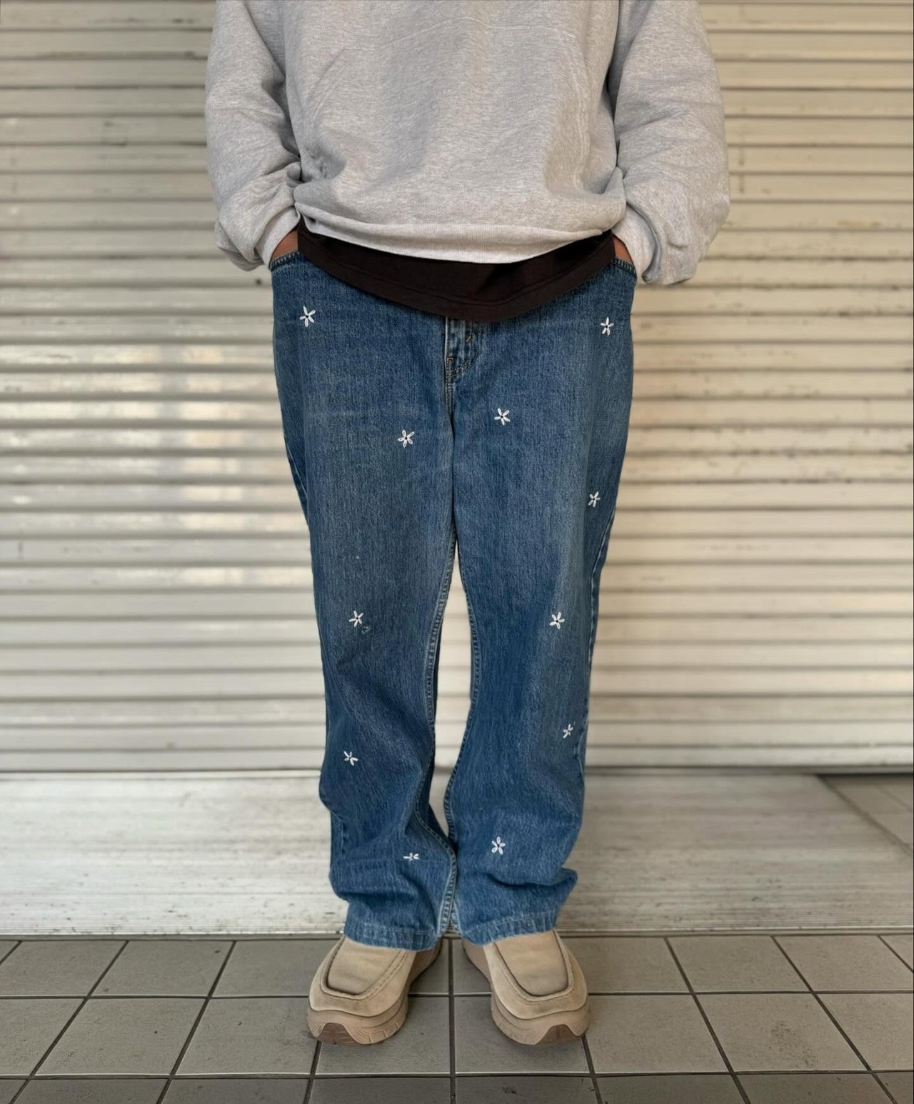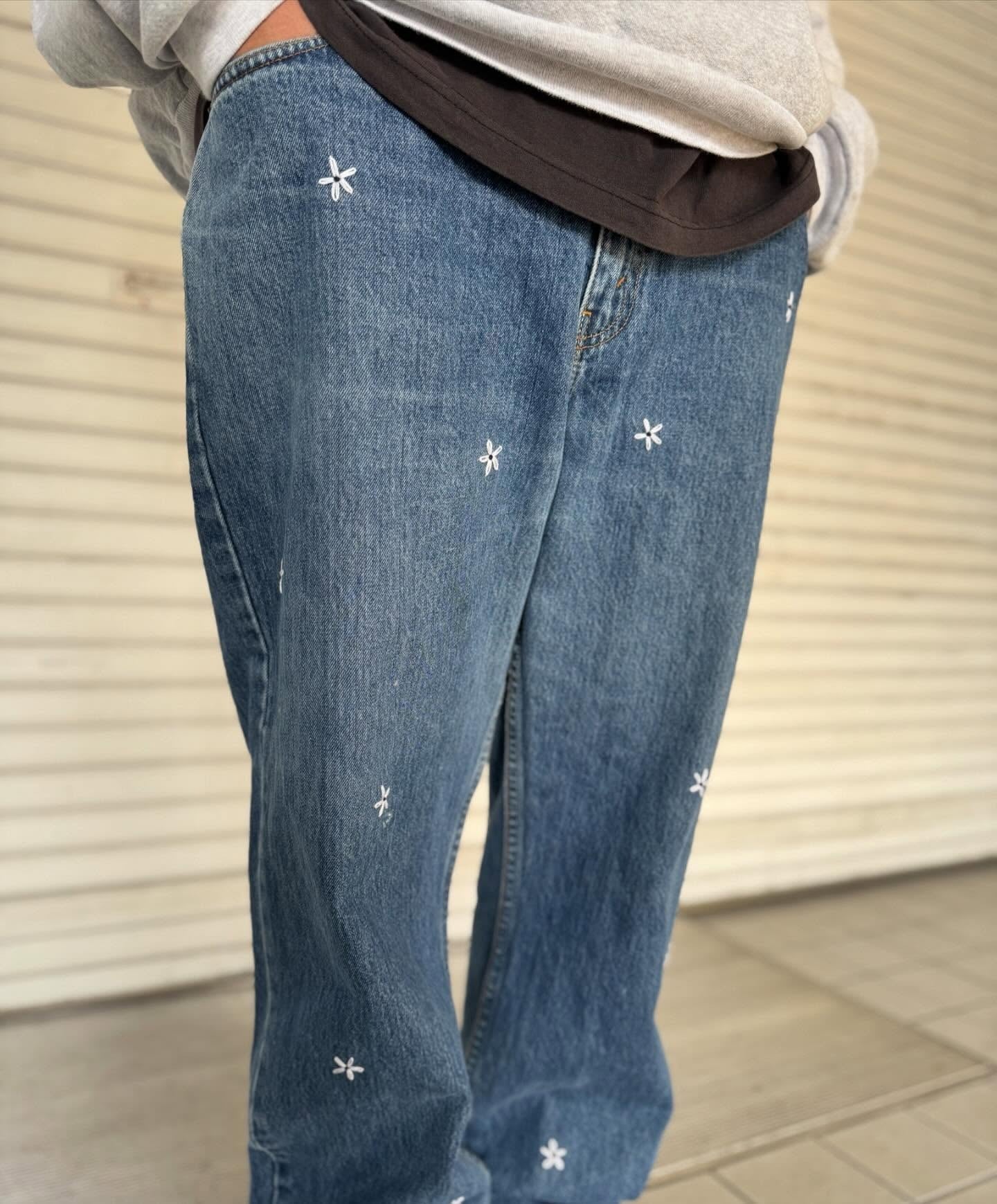 "花刺繍 Denim Pants"
