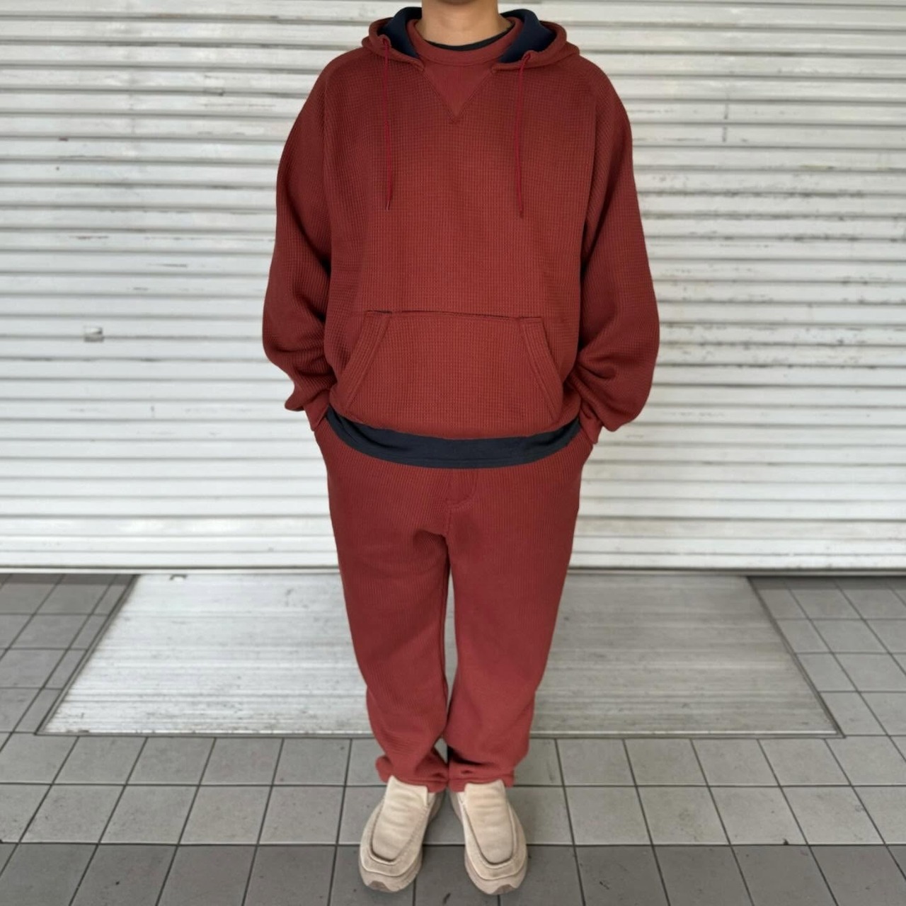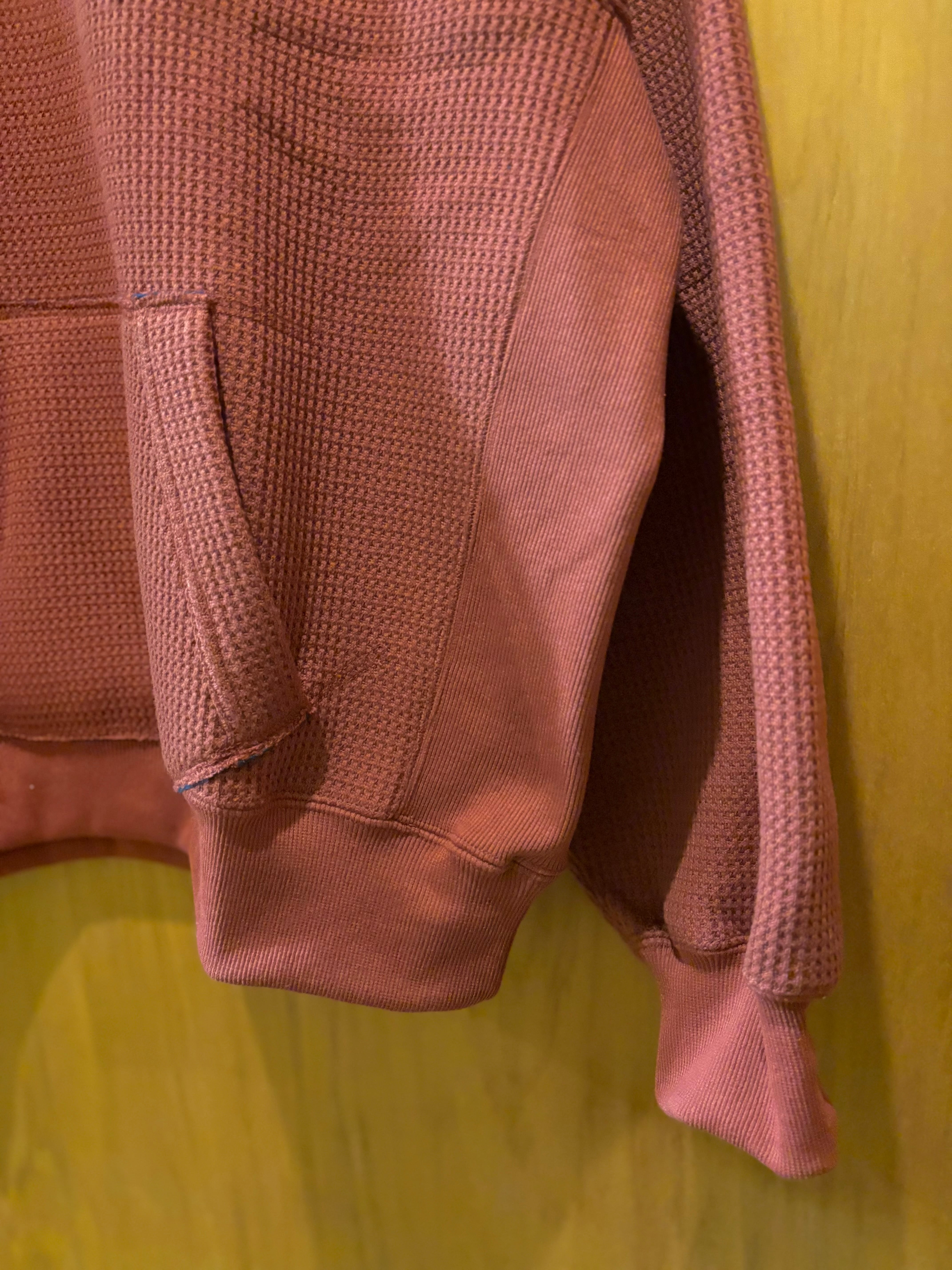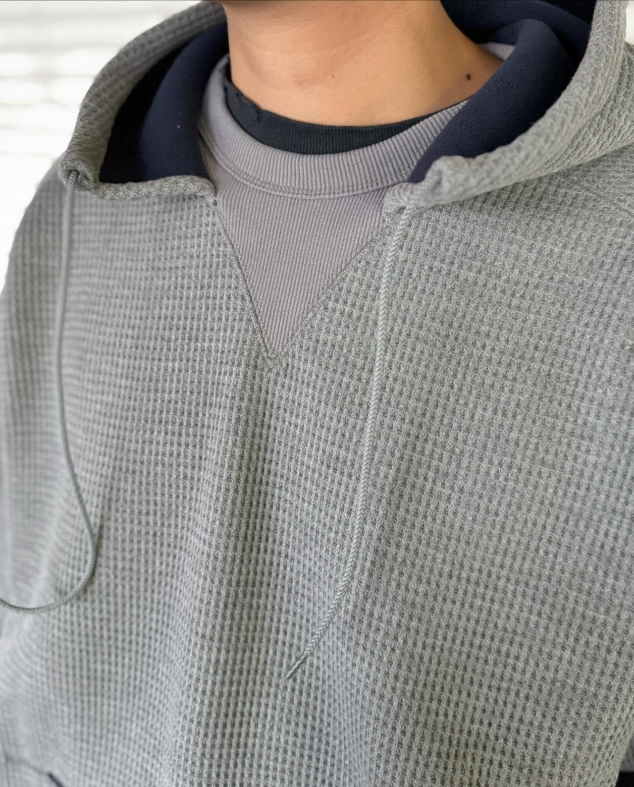 見た目はヴィンテージ感あるサーマルですが、裏側には極暖フリースをボンディング加工で一体化しているので、寒い季節に抜群の保温力を発揮します。