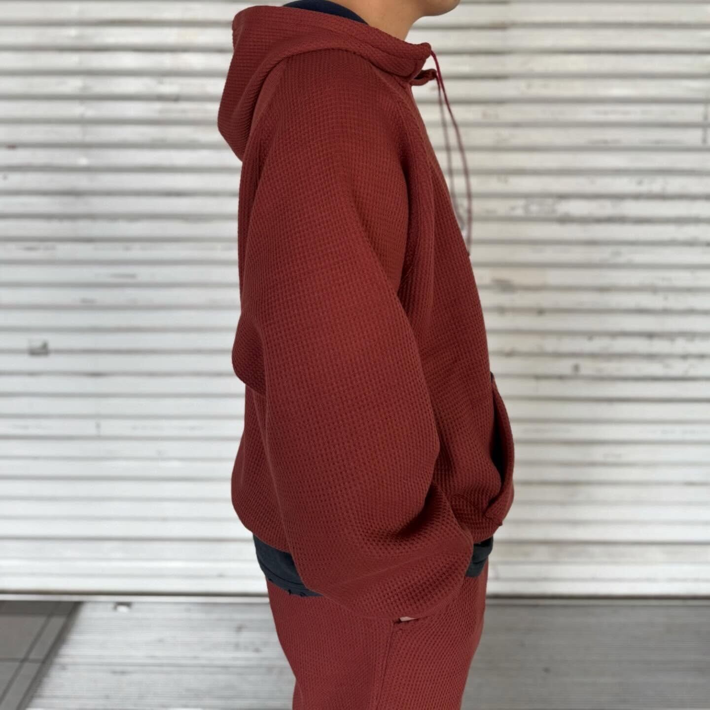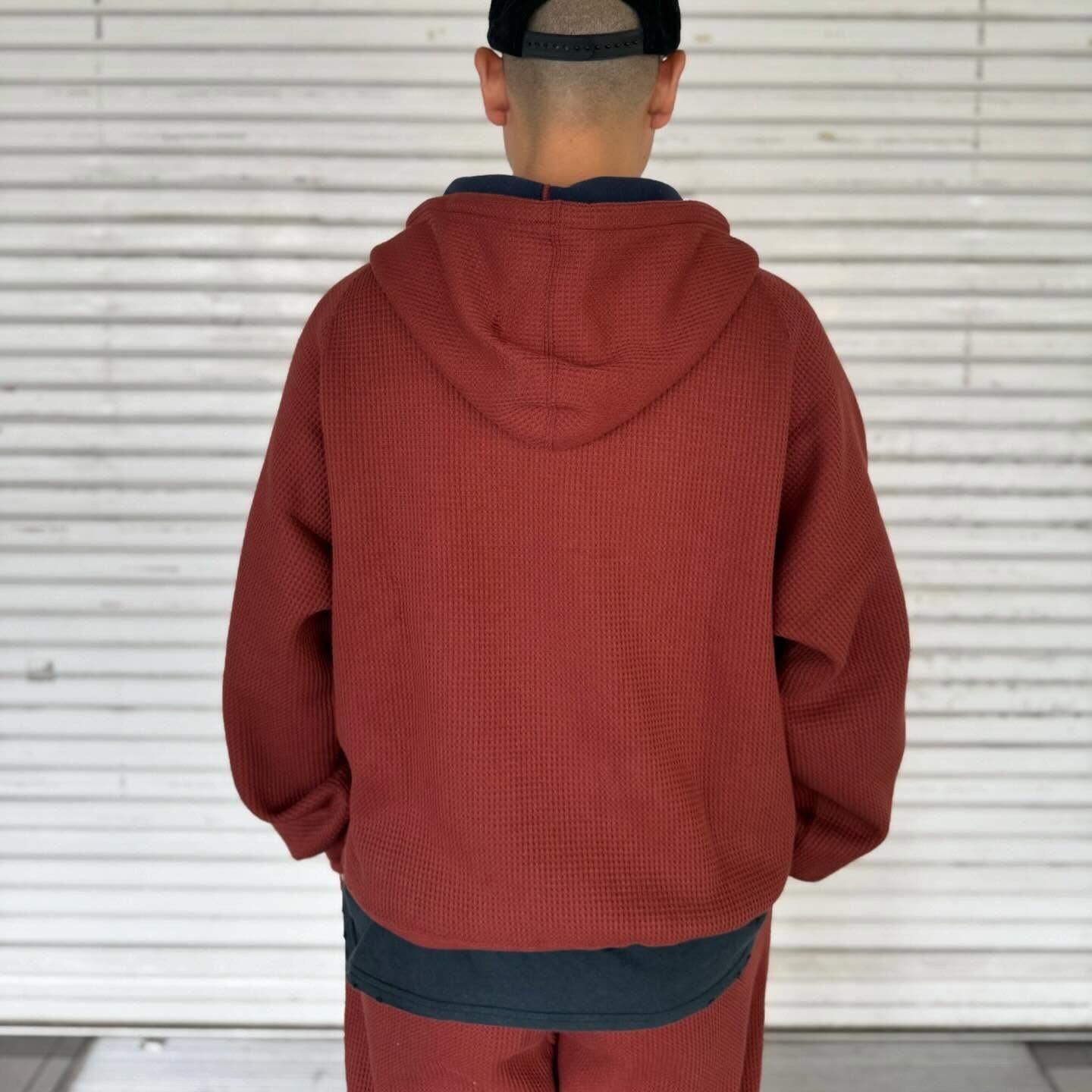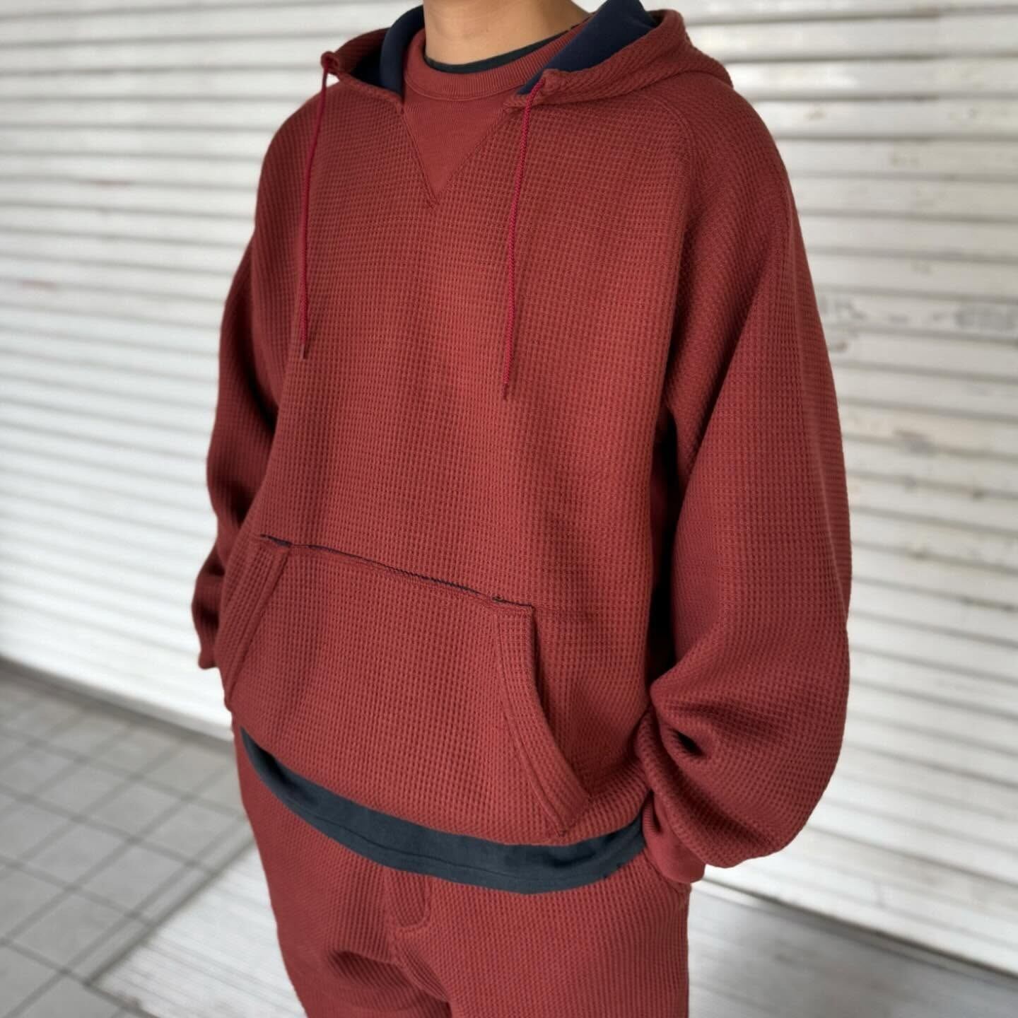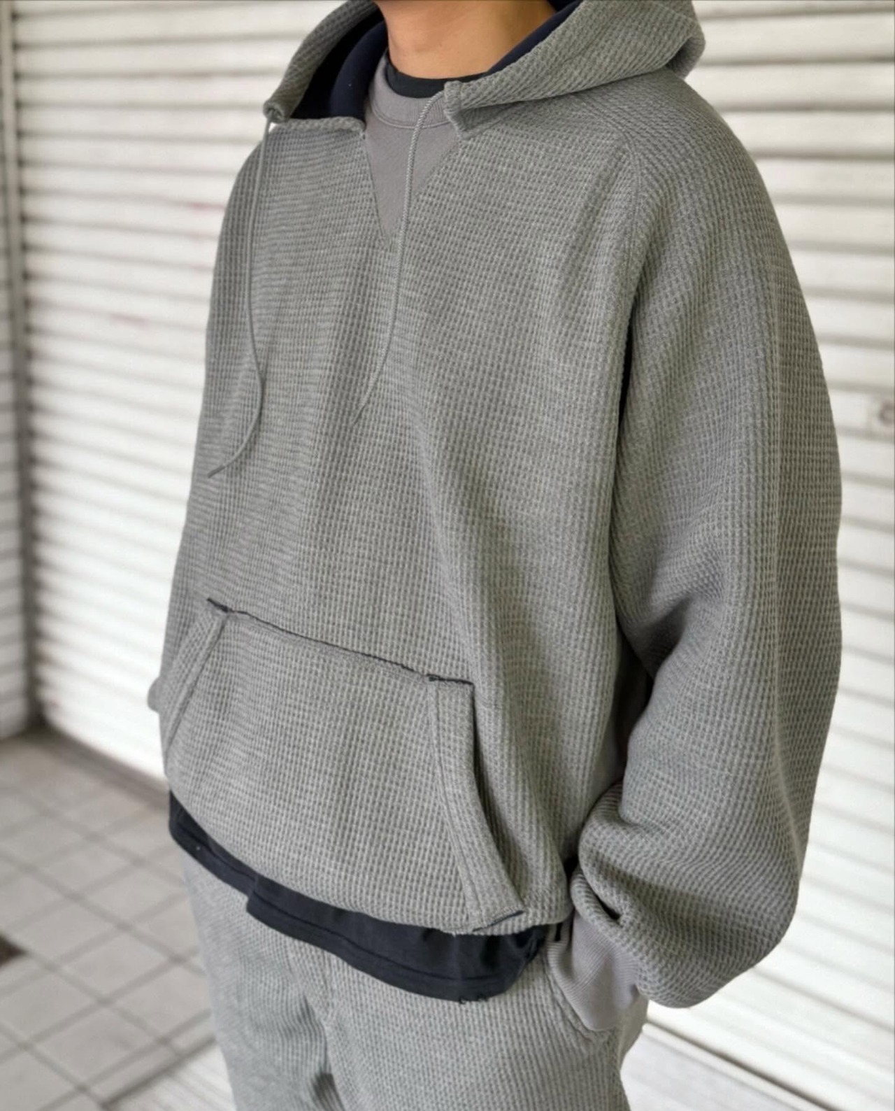 見た目はヴィンテージ感あるサーマルですが、裏側には極暖フリースをボンディング加工で一体化しているので、寒い季節に抜群の保温力を発揮します。