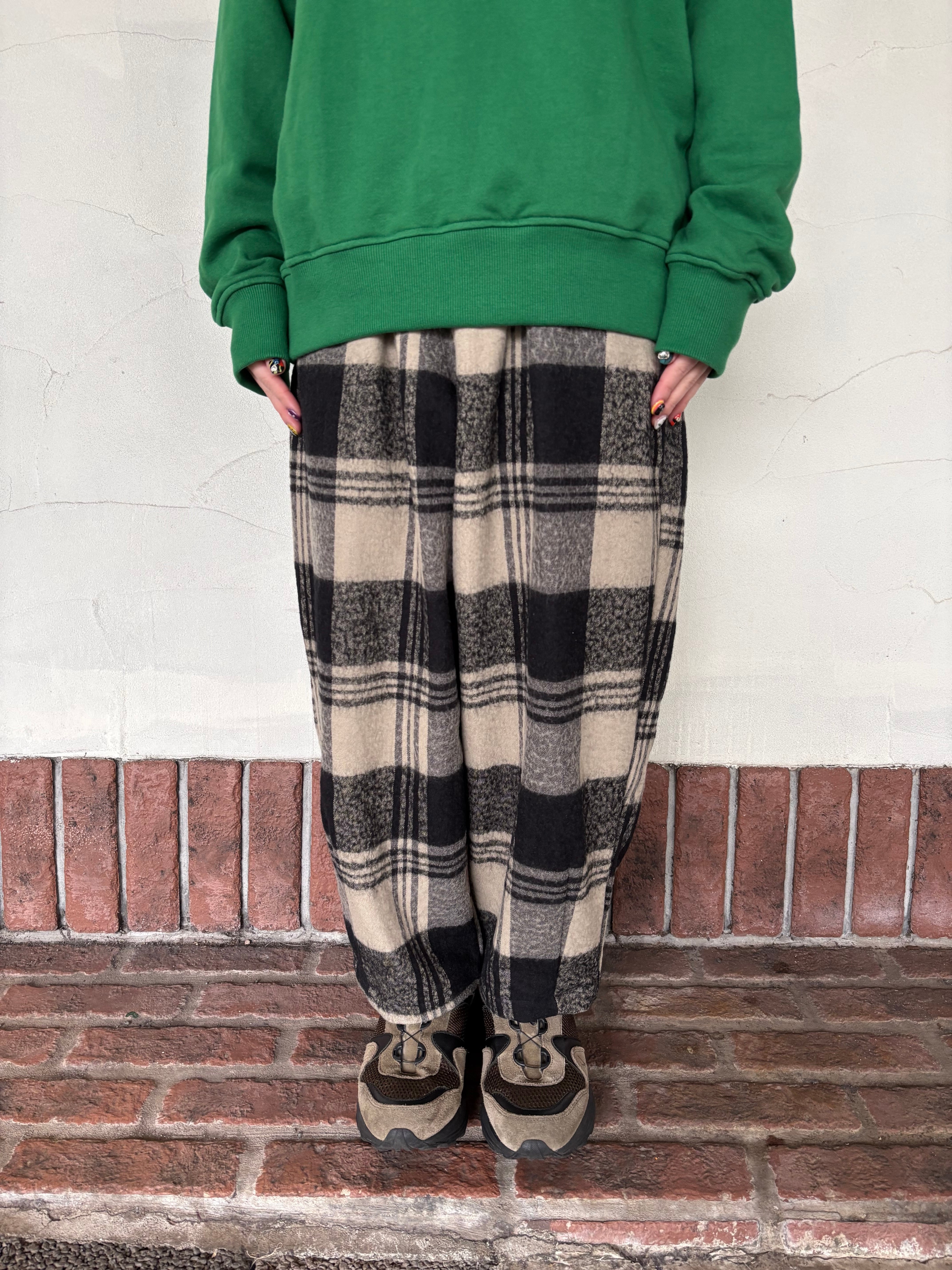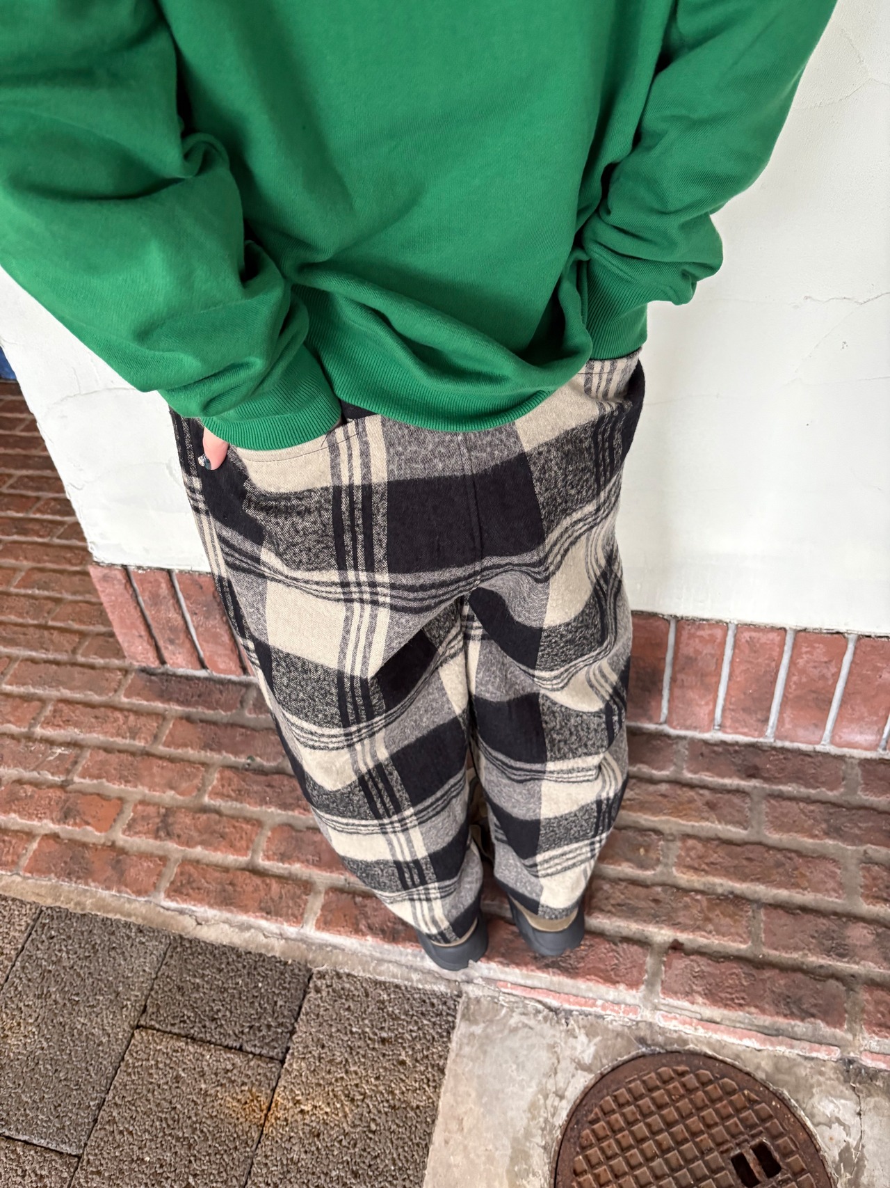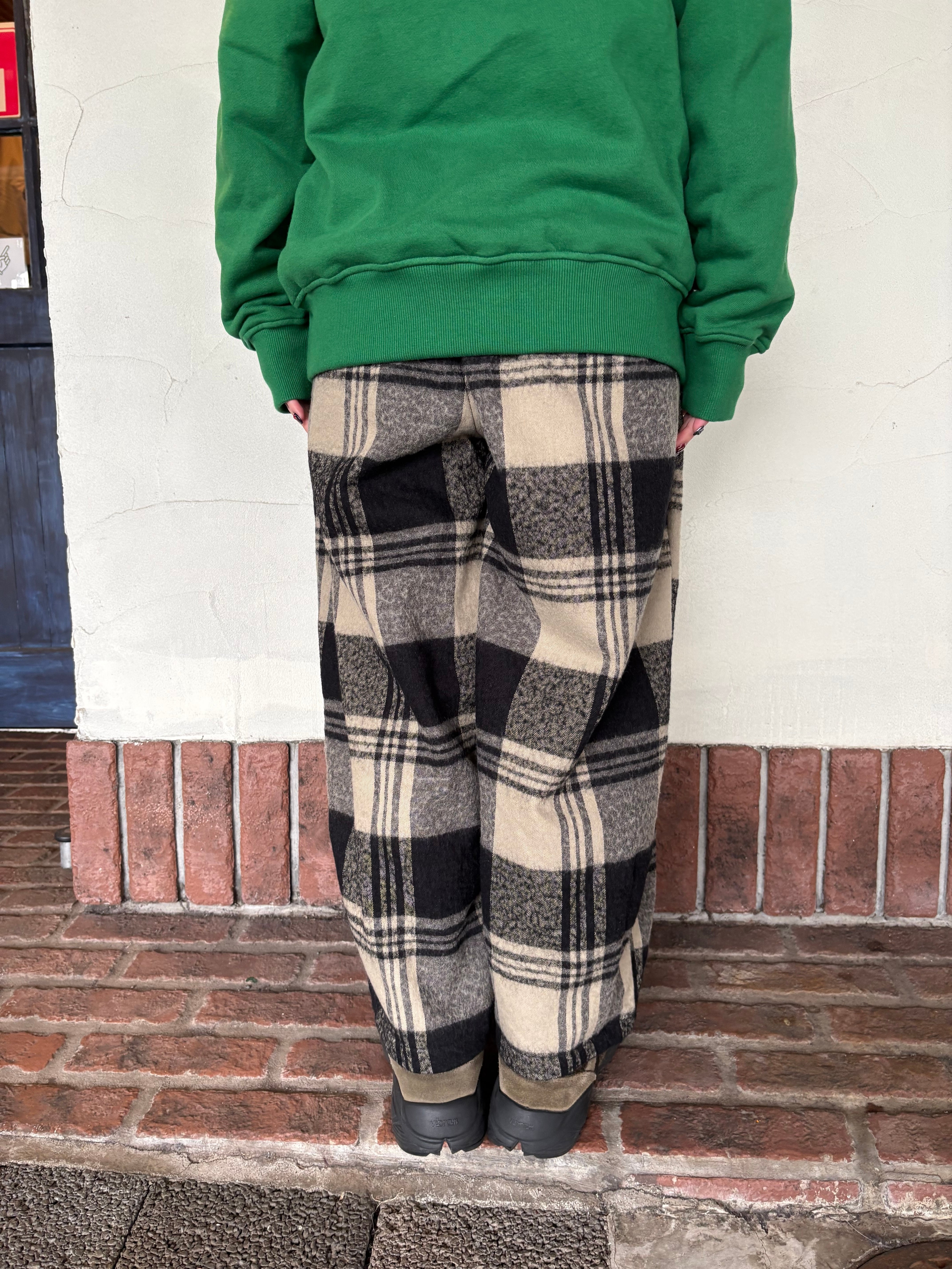 ゆったりとした穿き心地が魅力のチェックテーパードパンツ。