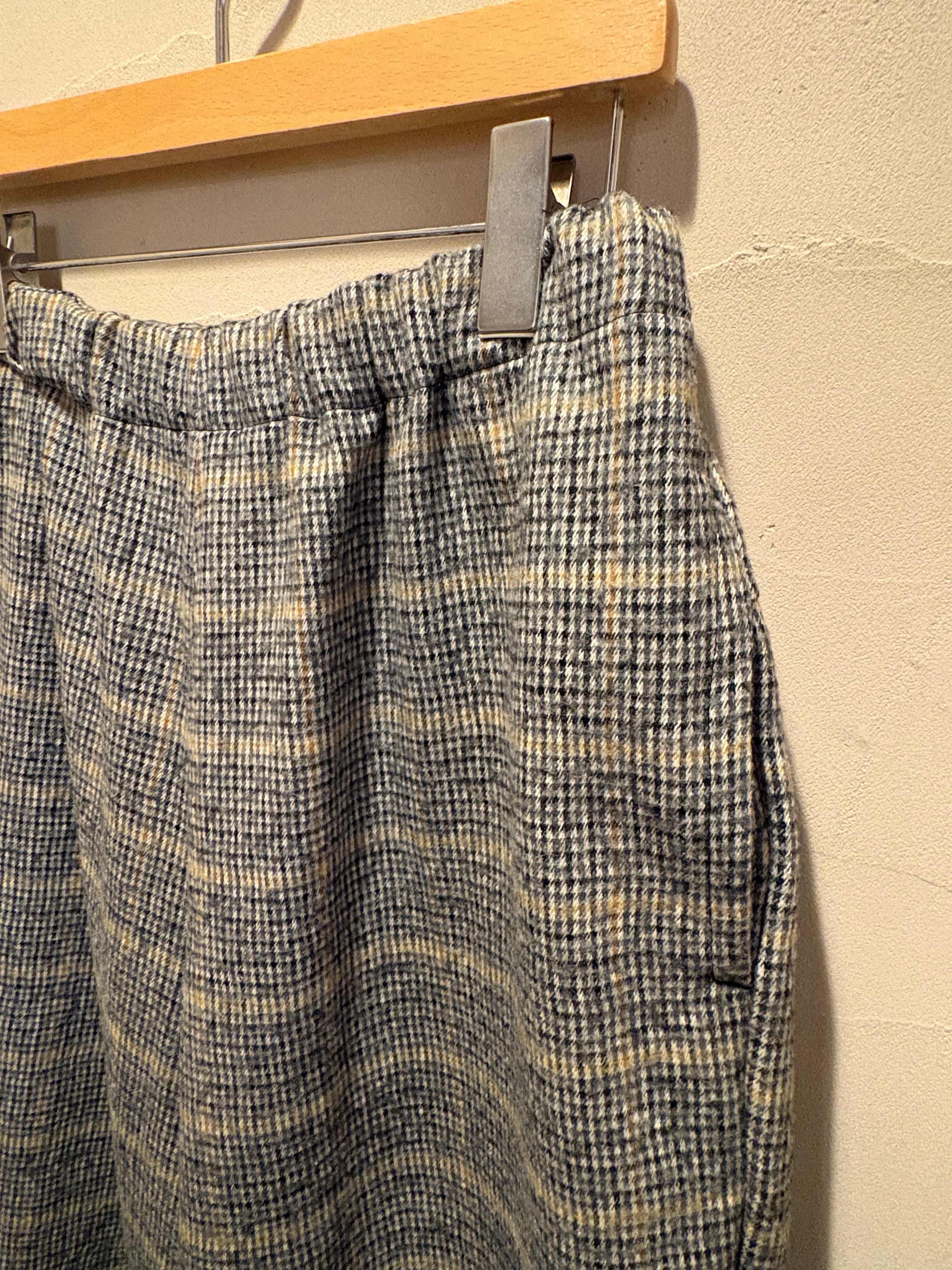チェック柄がコーデのさりげないアクセントになり、シンプルなトップスと合わせるだけで雰囲気のある着こなしに。