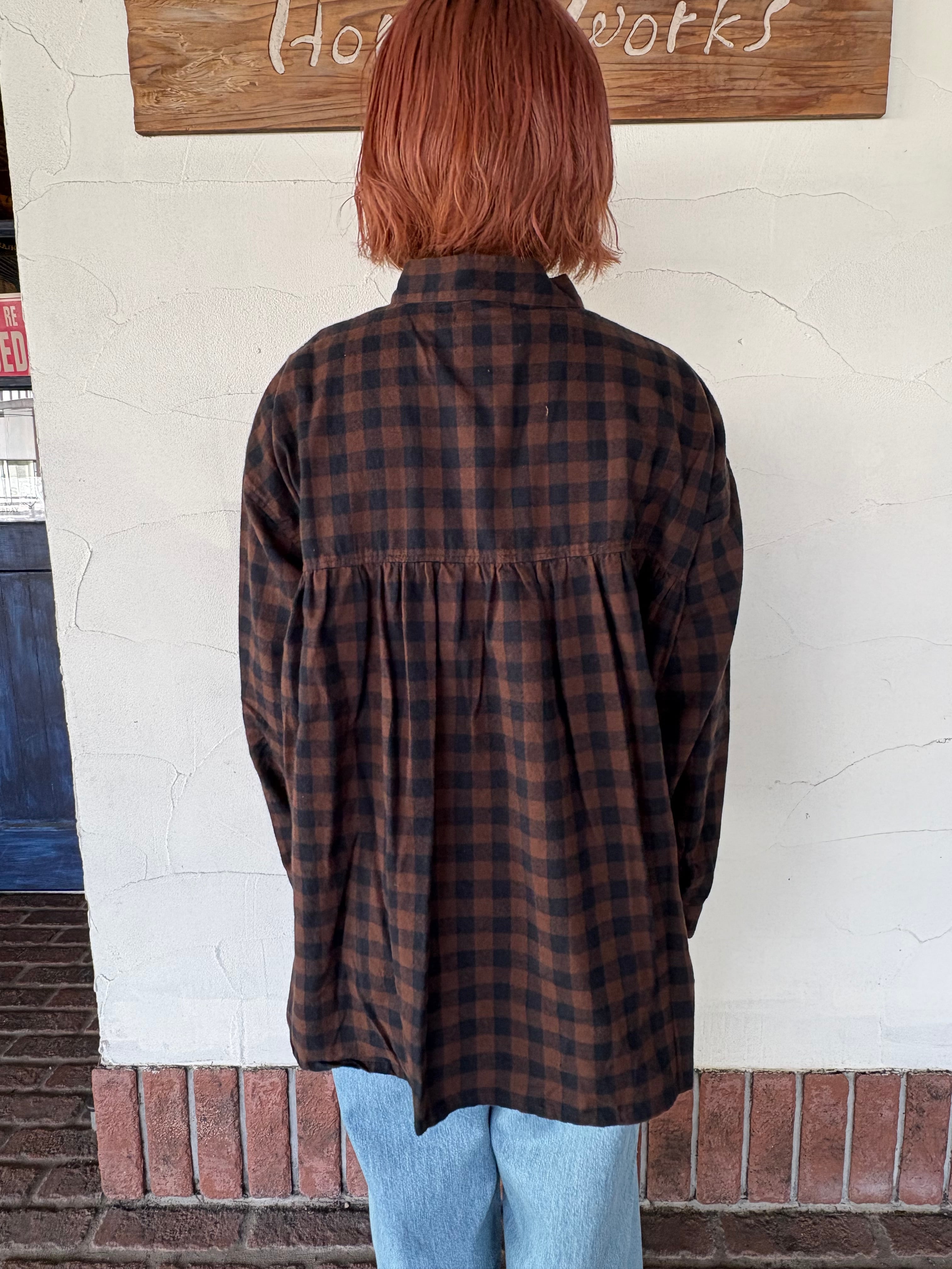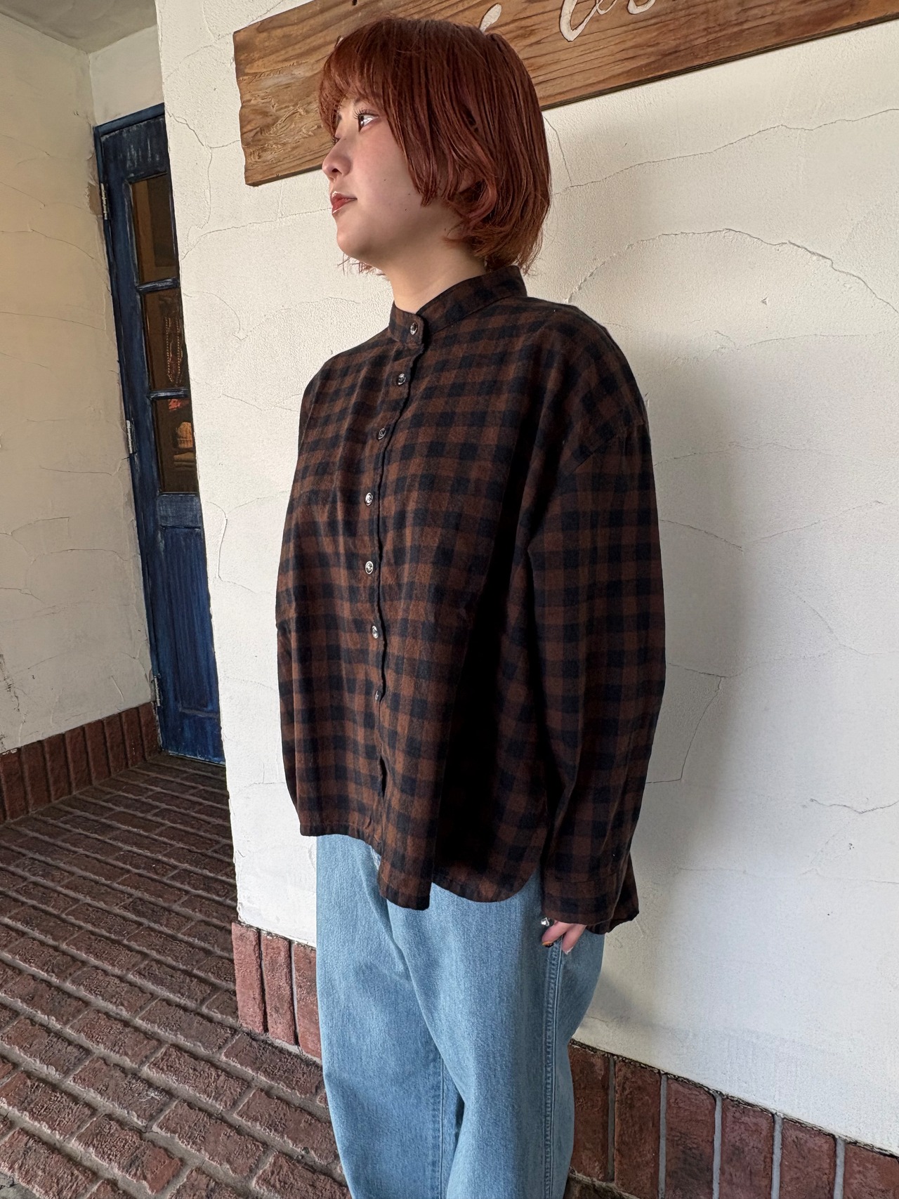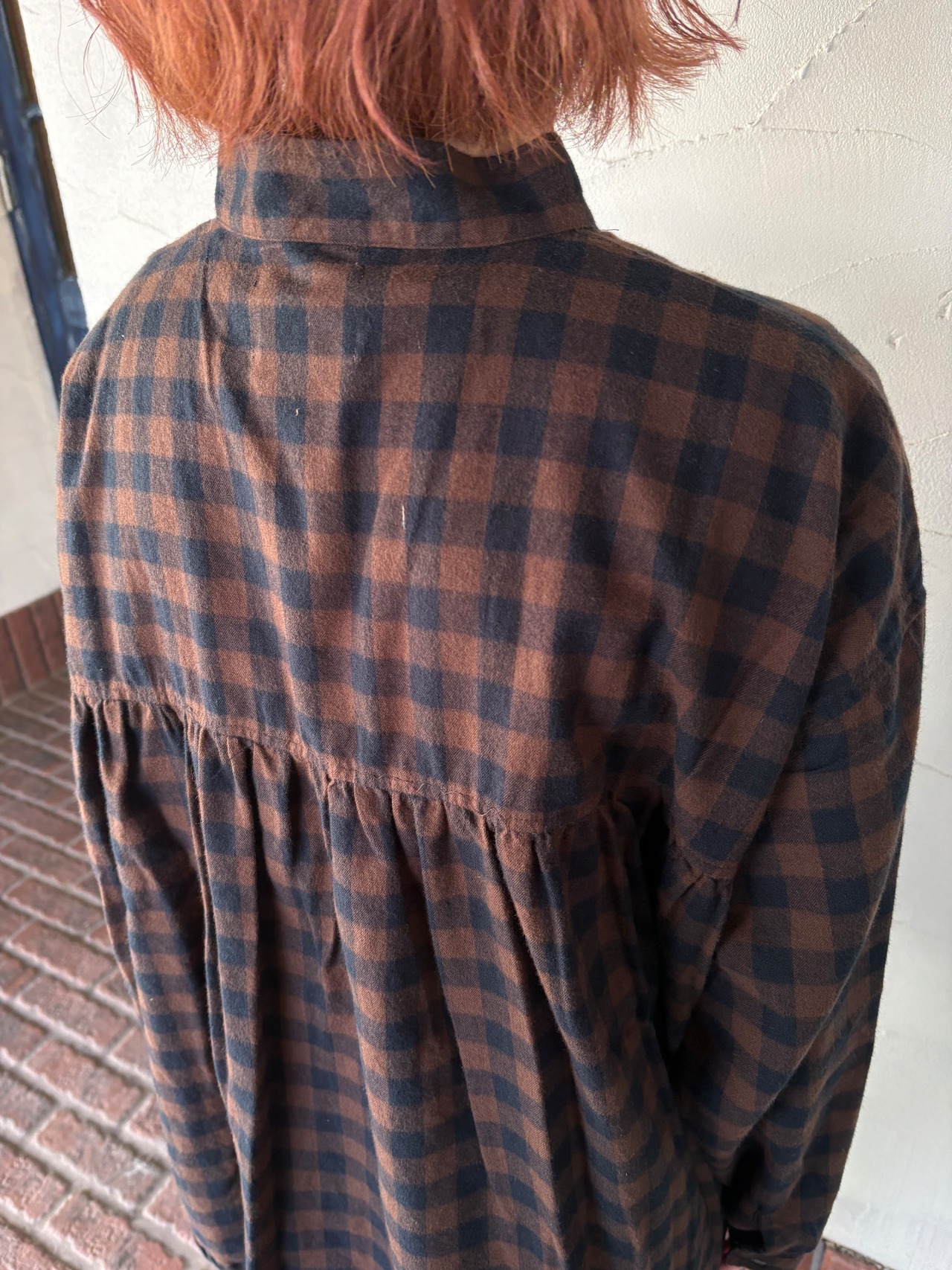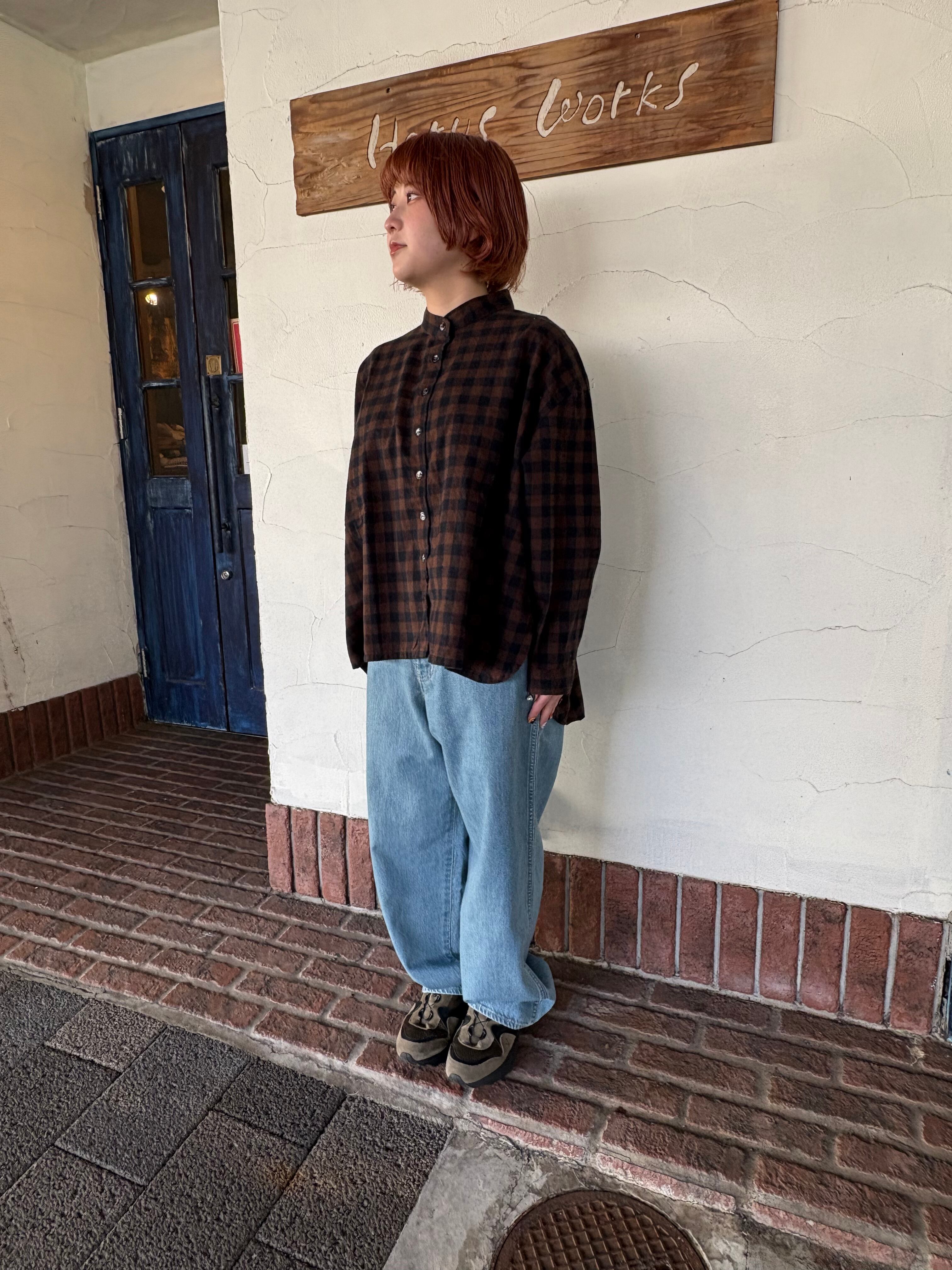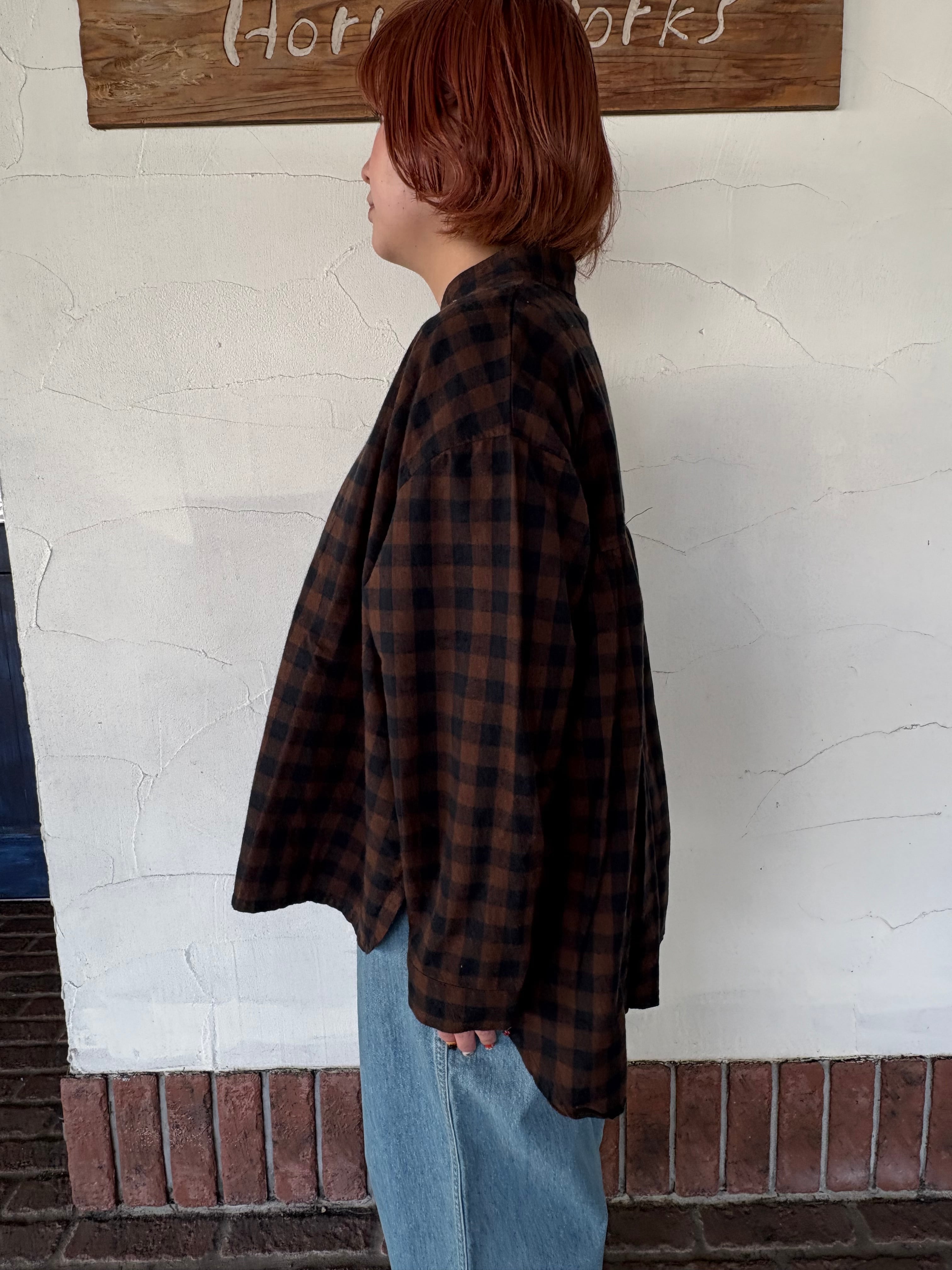 先染めならではの、やさしいチェックの表情が印象的な一枚。