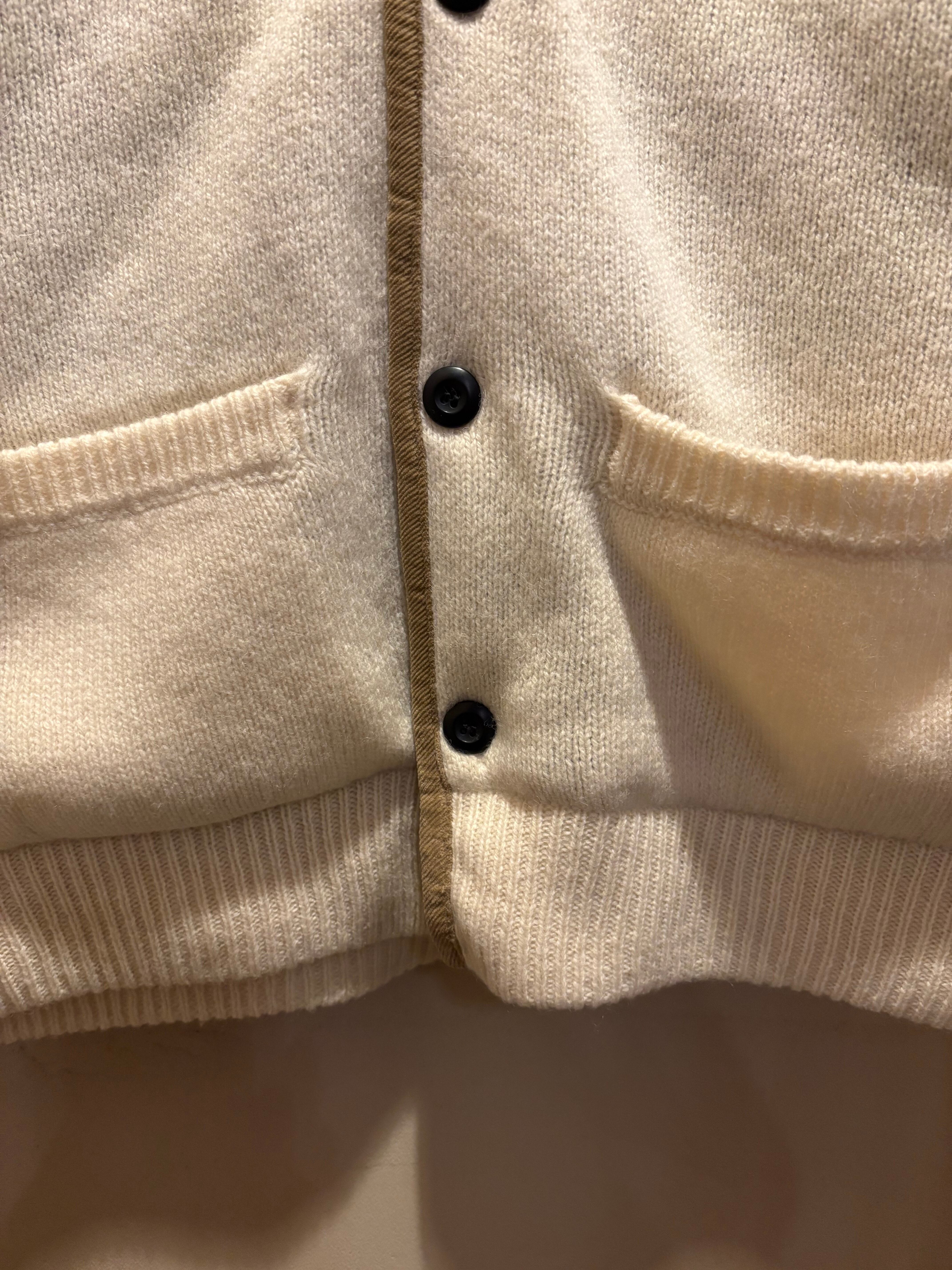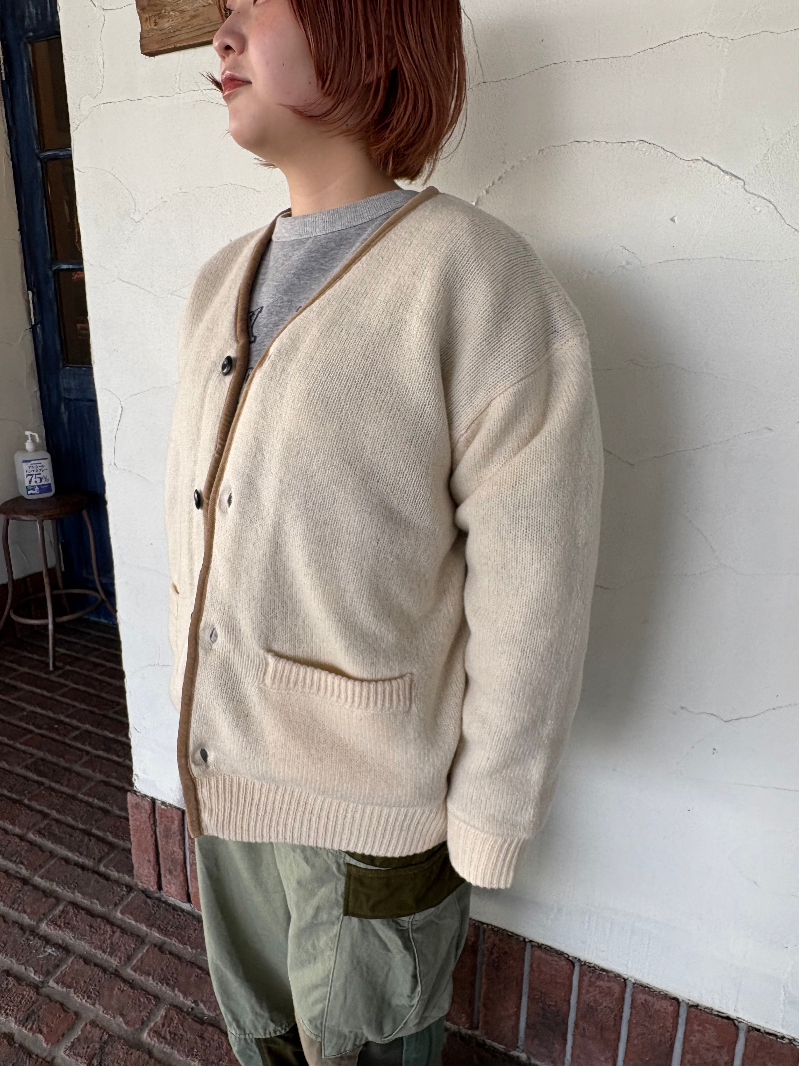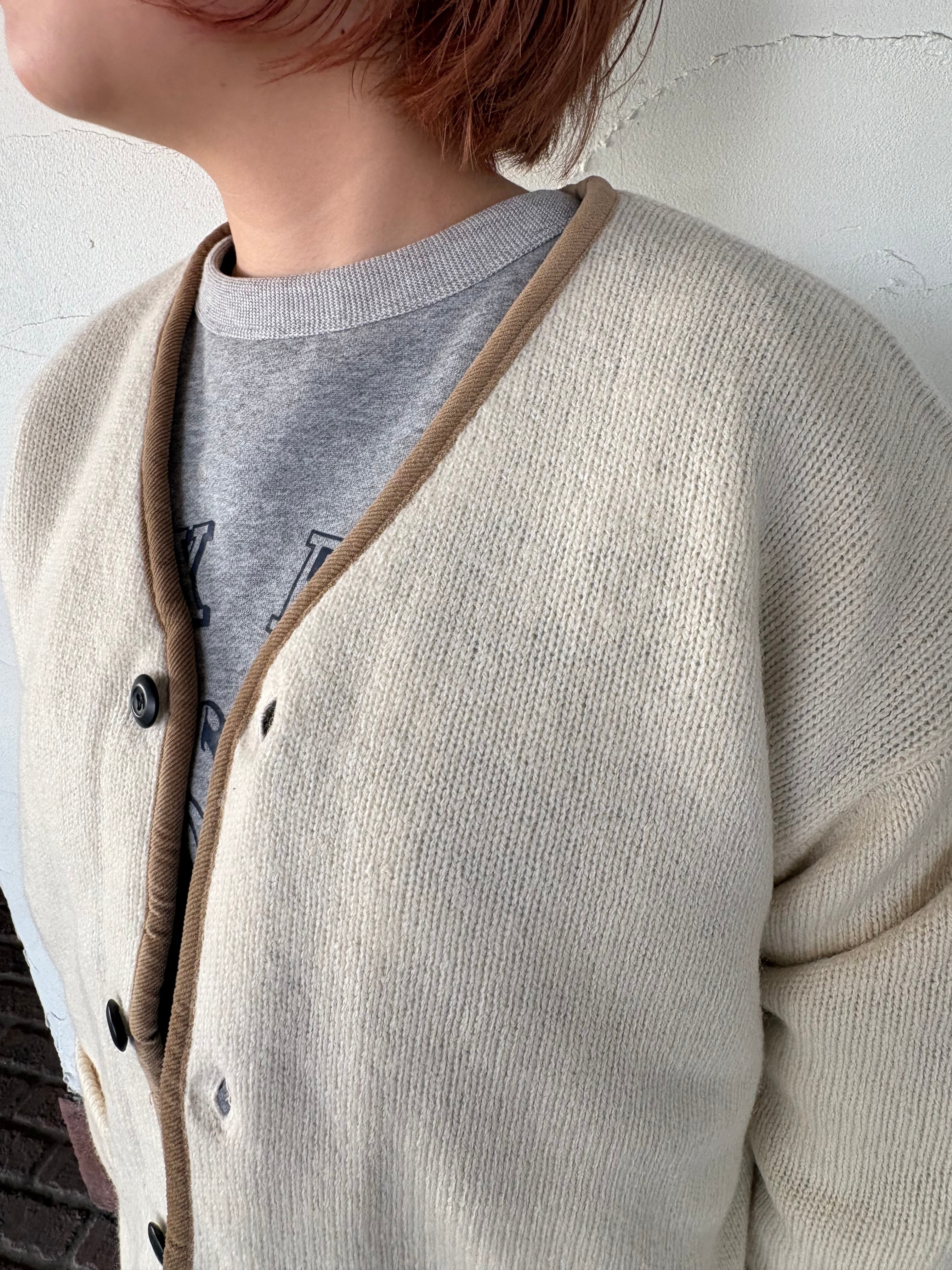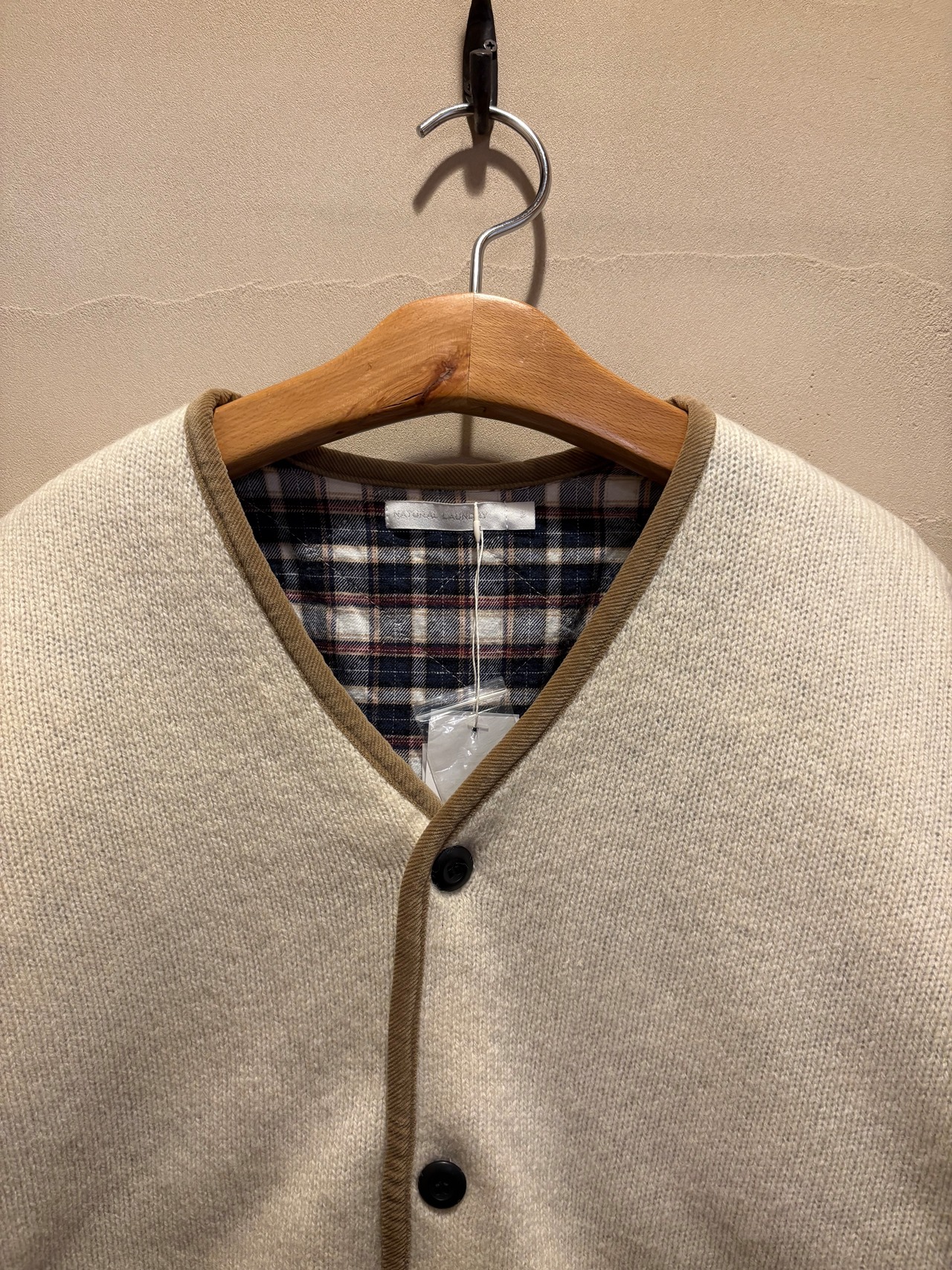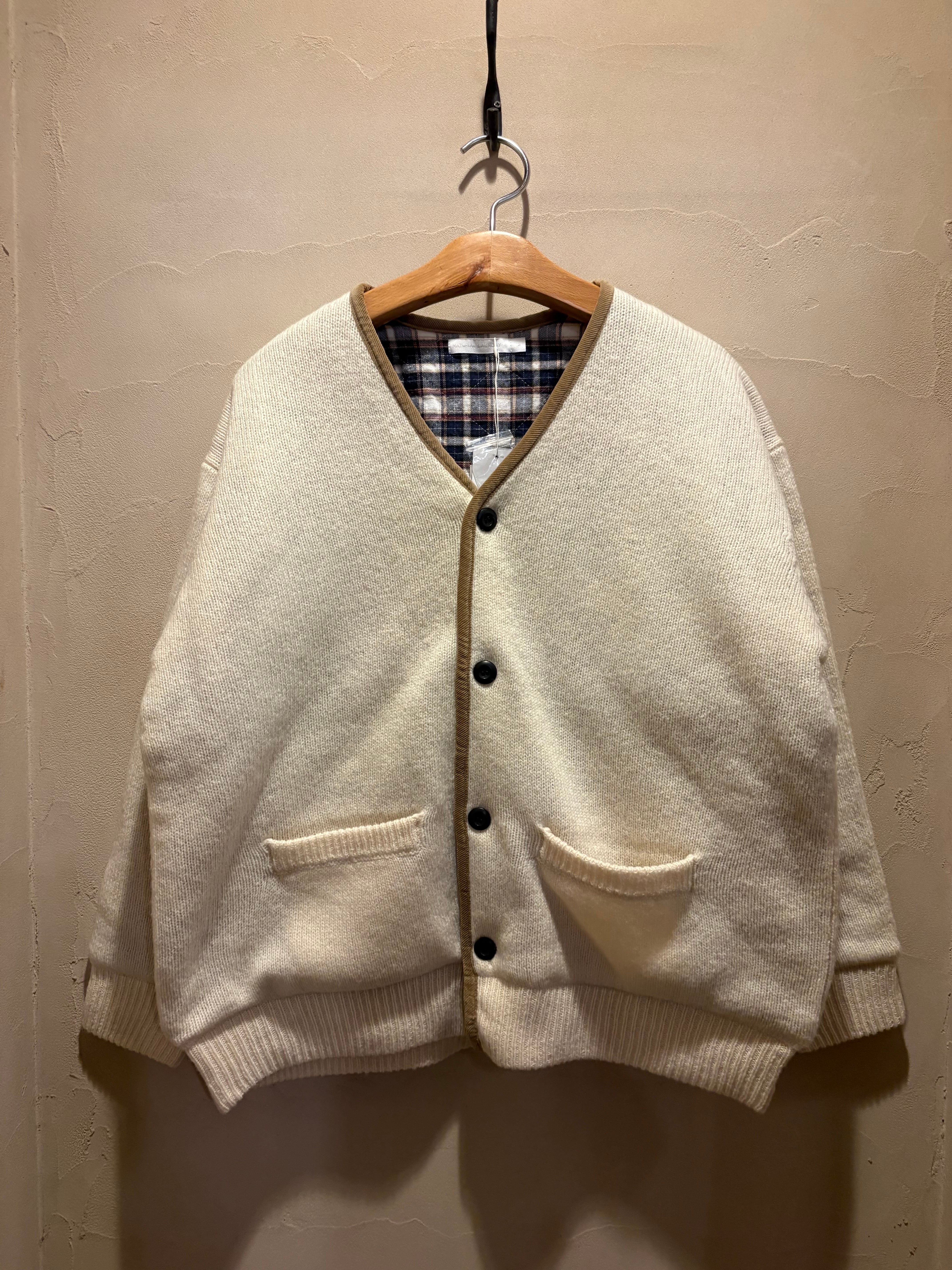 裏面のカラフルなチェック柄が目を引く、ナチュラルランドリーのニットカーディガン。