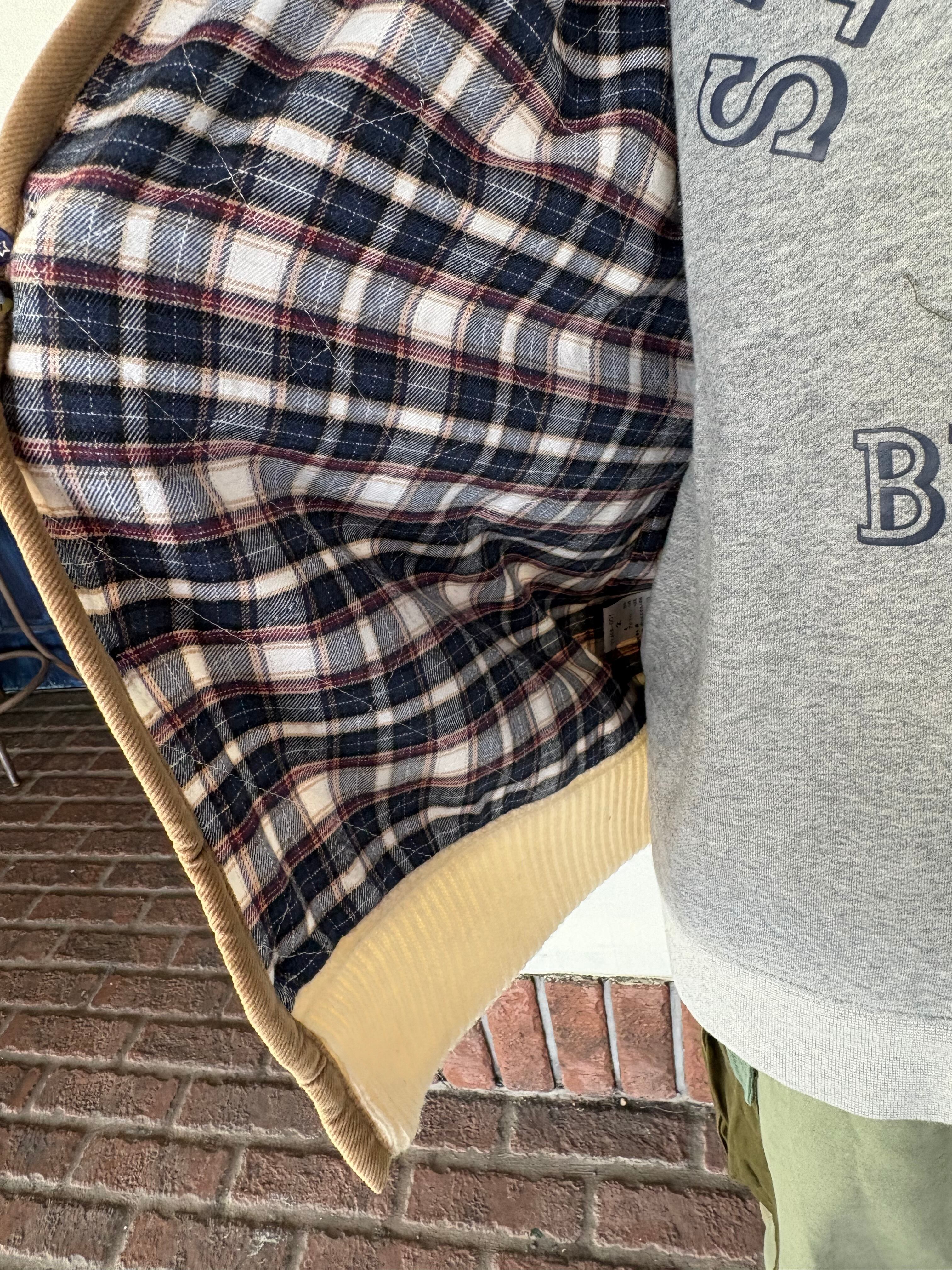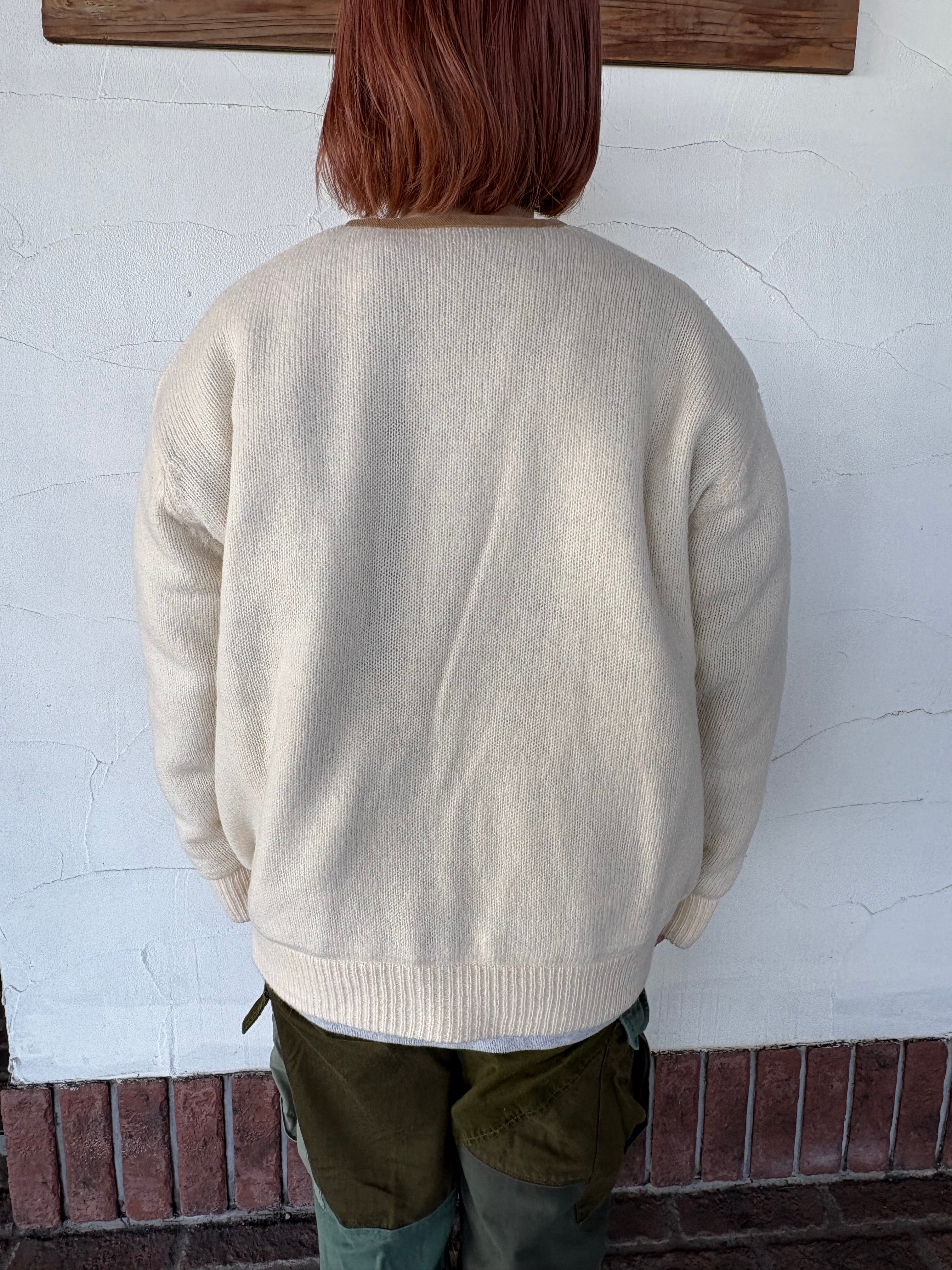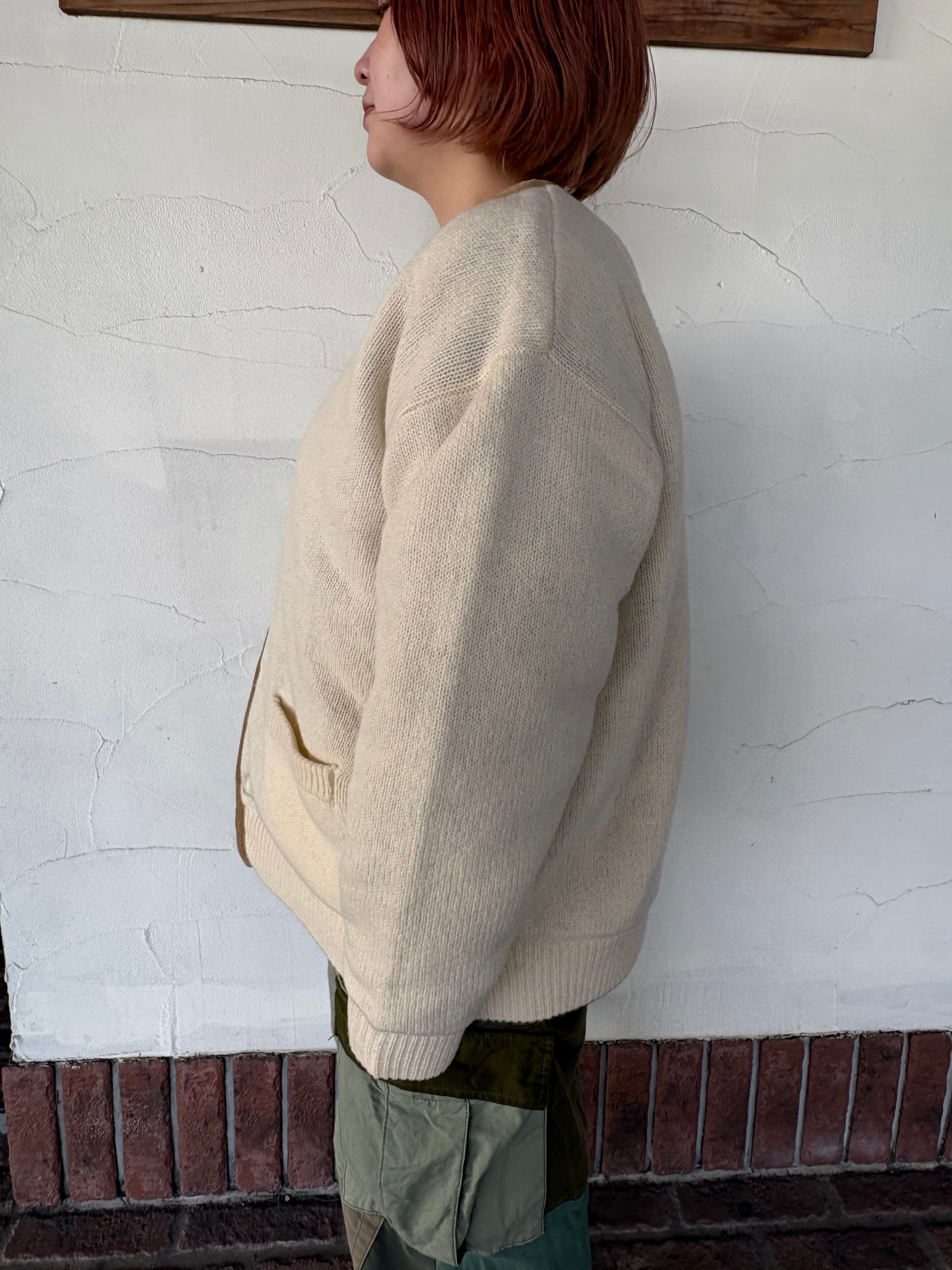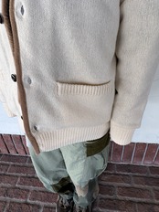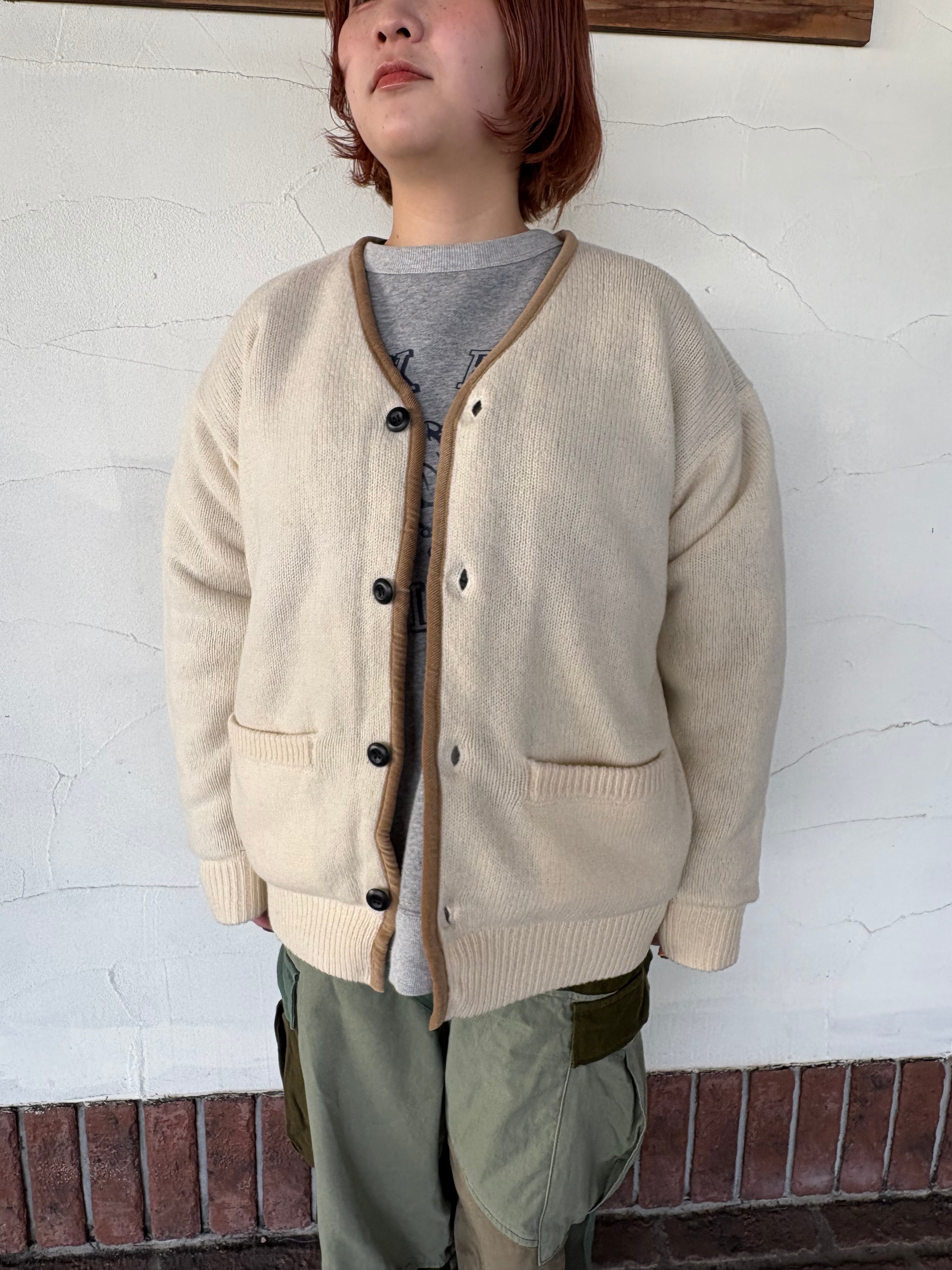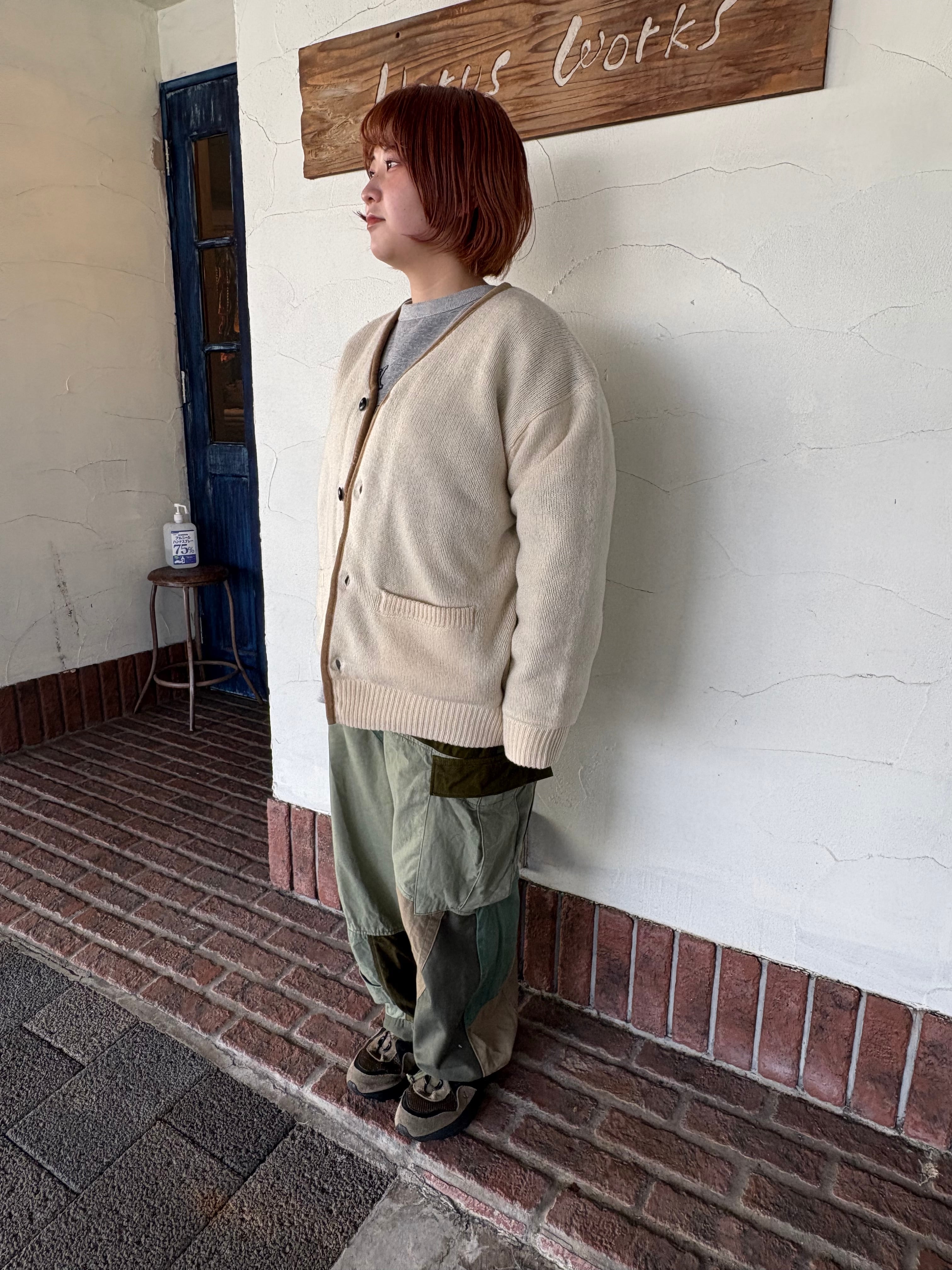 裏面のカラフルなチェック柄が目を引く、ナチュラルランドリーのニットカーディガン。