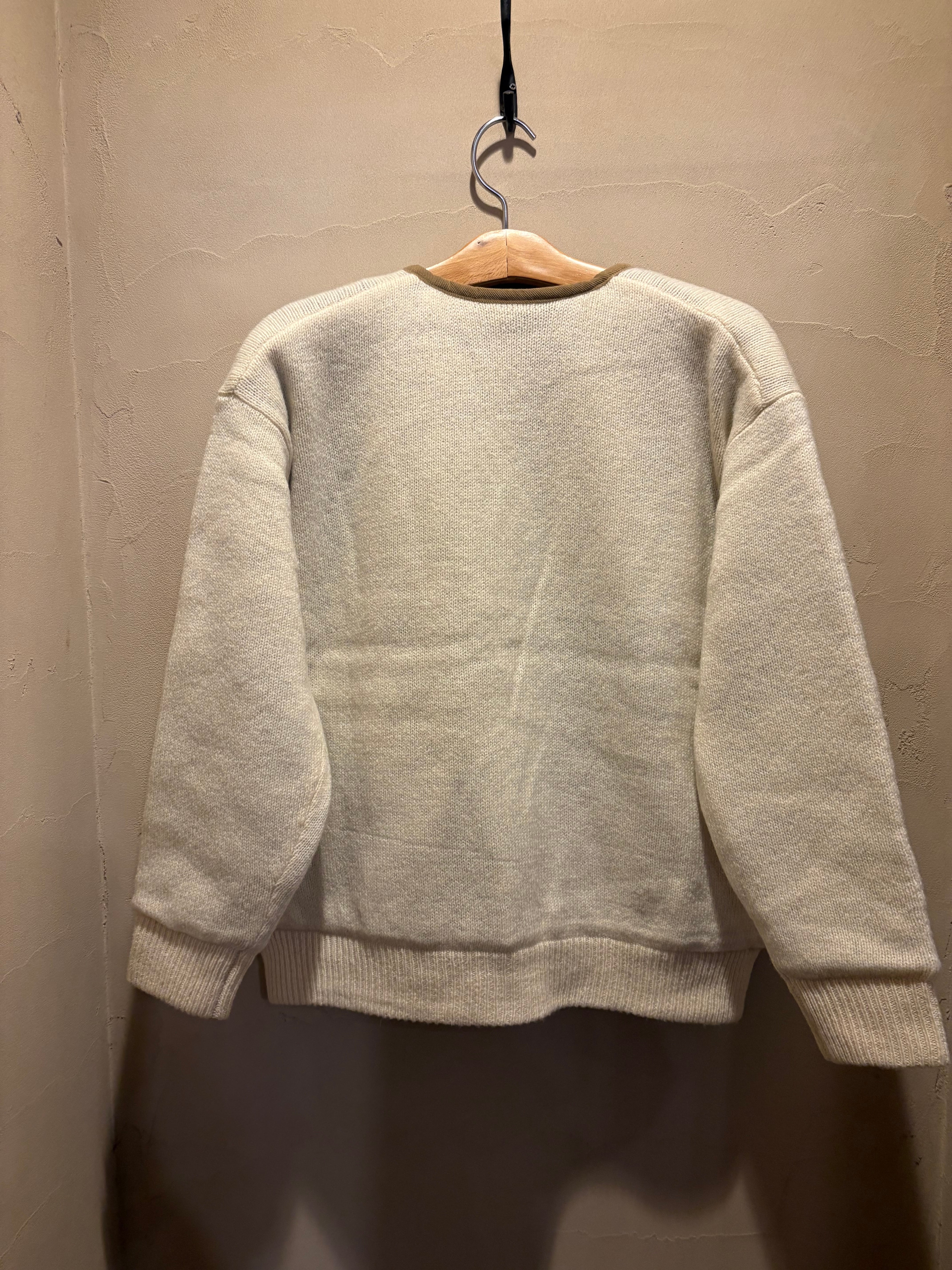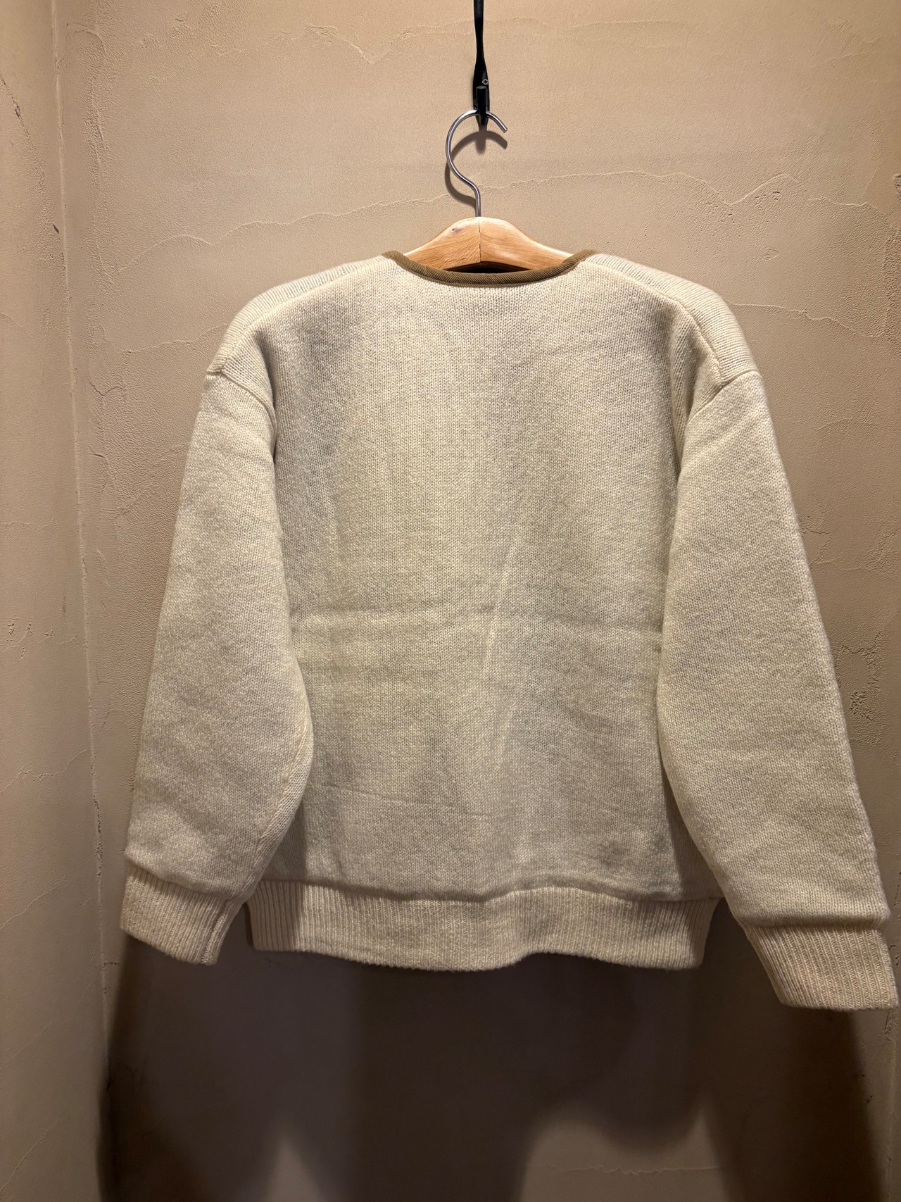 表側はシェットランドウールとナイロンの混紡糸で編んだニット、