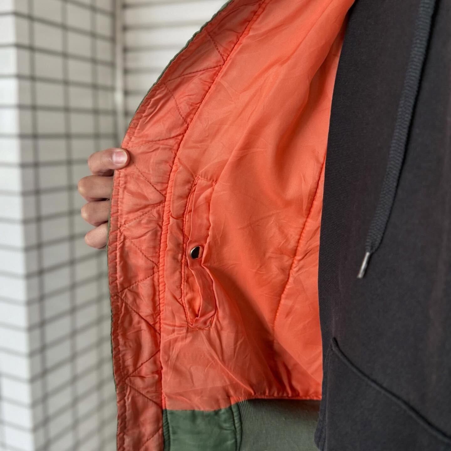 普通のMA-1に飽きた方や、少し変わった一着をお探しの方は是非。袖が二重になっているのでかなり暖かいです!