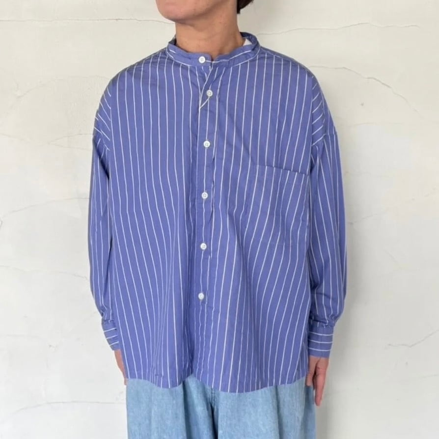 [prit] “高密度ポプリンパジャマストライプ スタンドカラービッグシャツ”