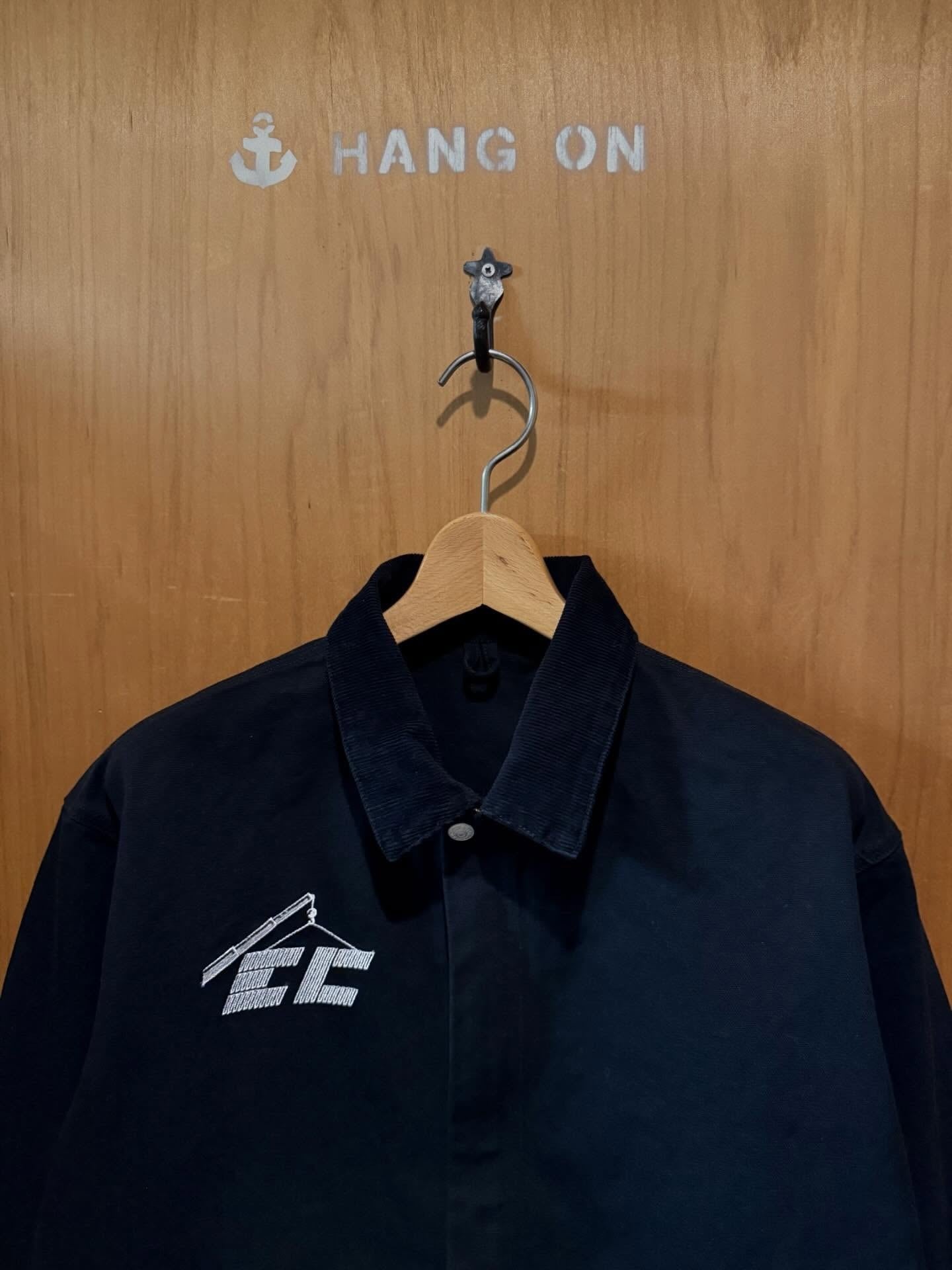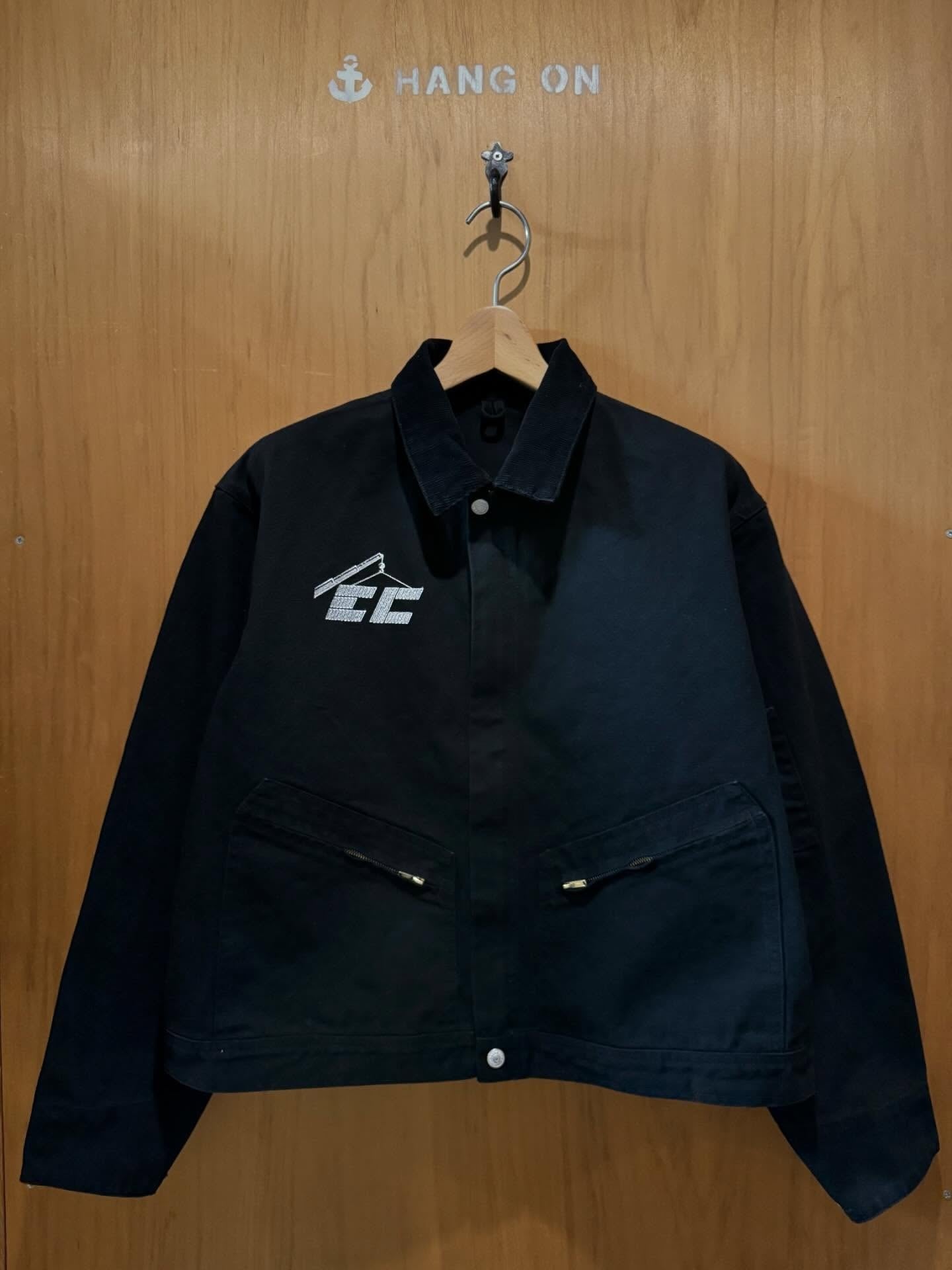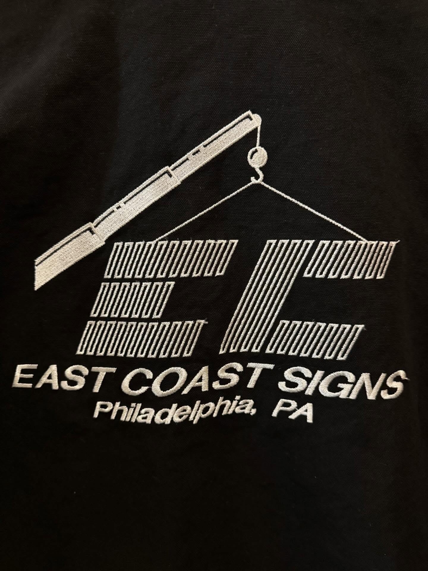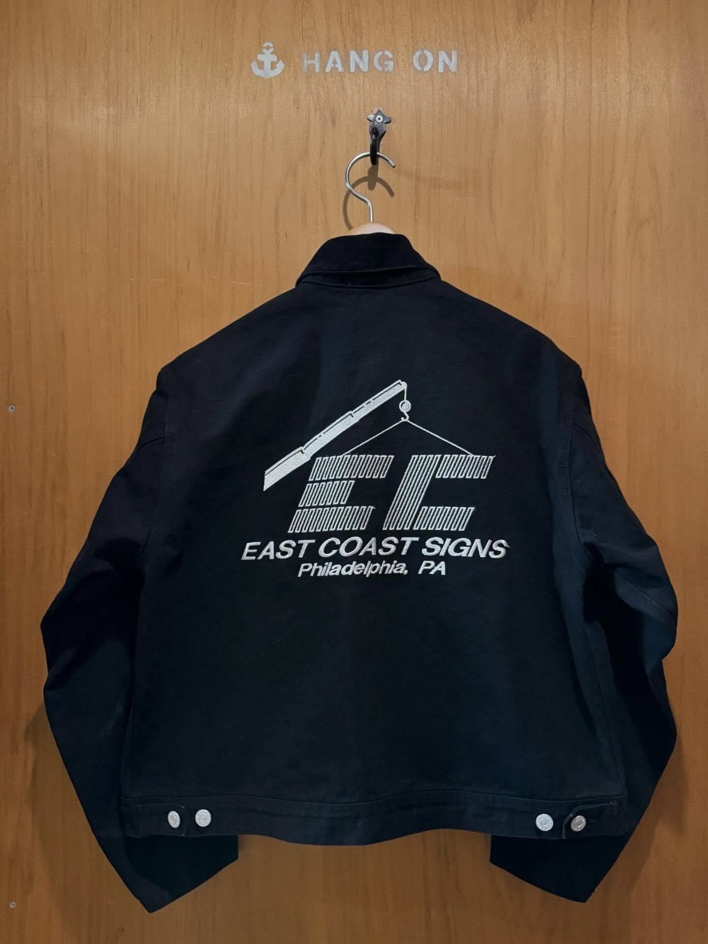 アメリカ・フィラデルフィアの看板製作会社「EAST COAST SIGNS」のアイコニックなロゴを大胆にフィーチャーした、ヘビーデューティーなショート丈ワークジャケットです。