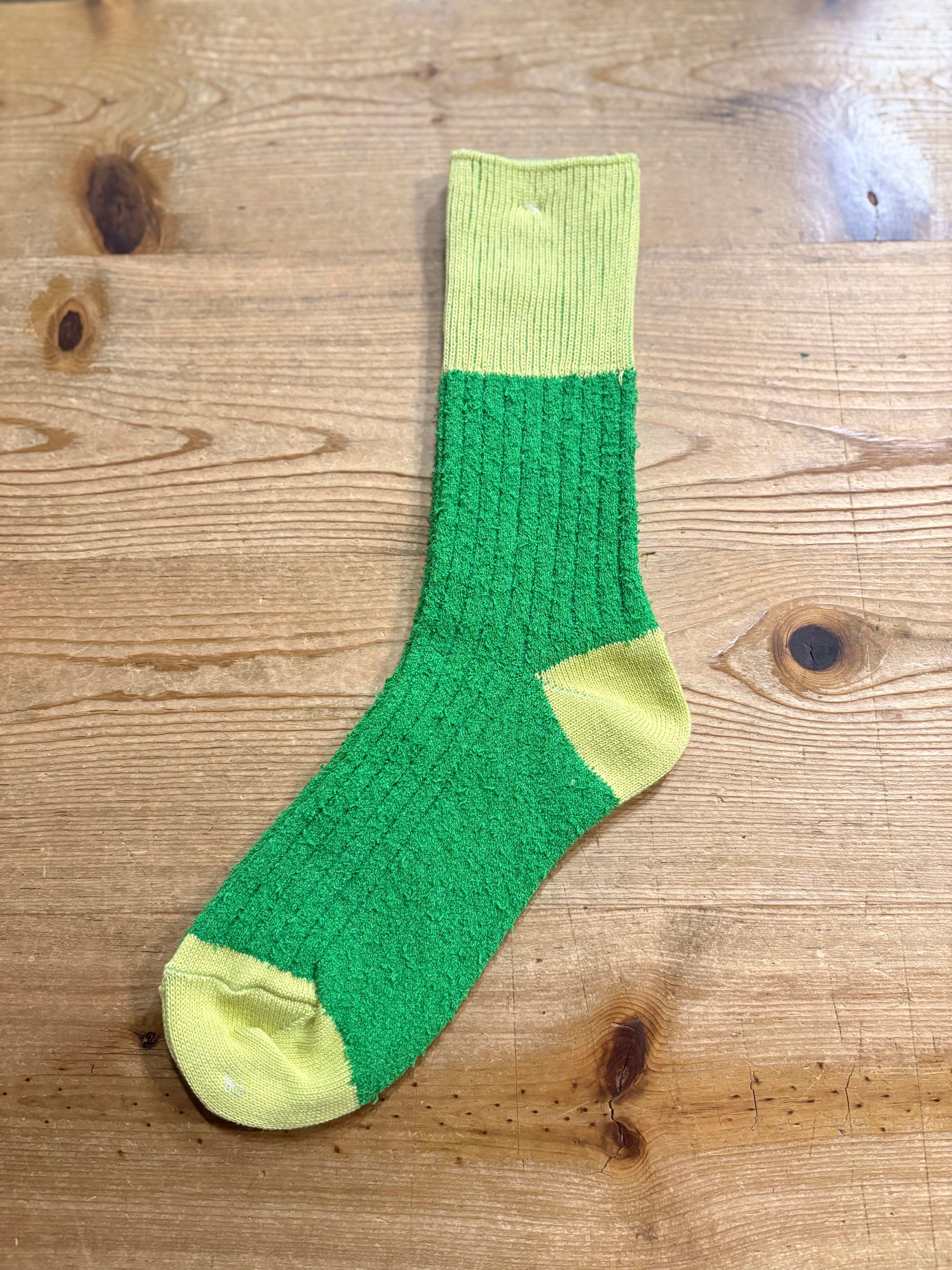 遊び心あふれるバイカラーのデザインで、スニーカーに合わせてもサンダルに合わせてもこの靴下の色がパッと明るいアクセントになってくれます。