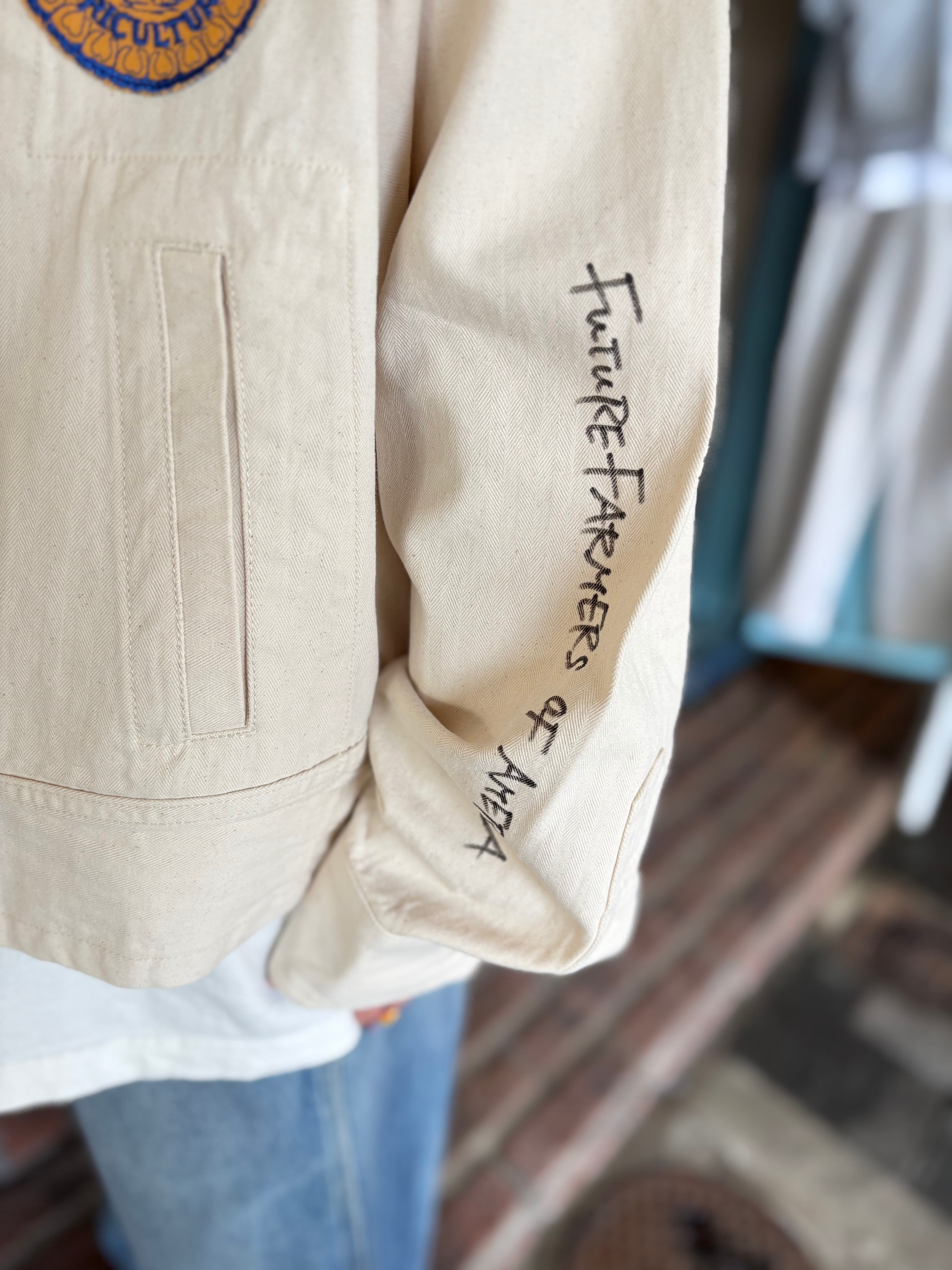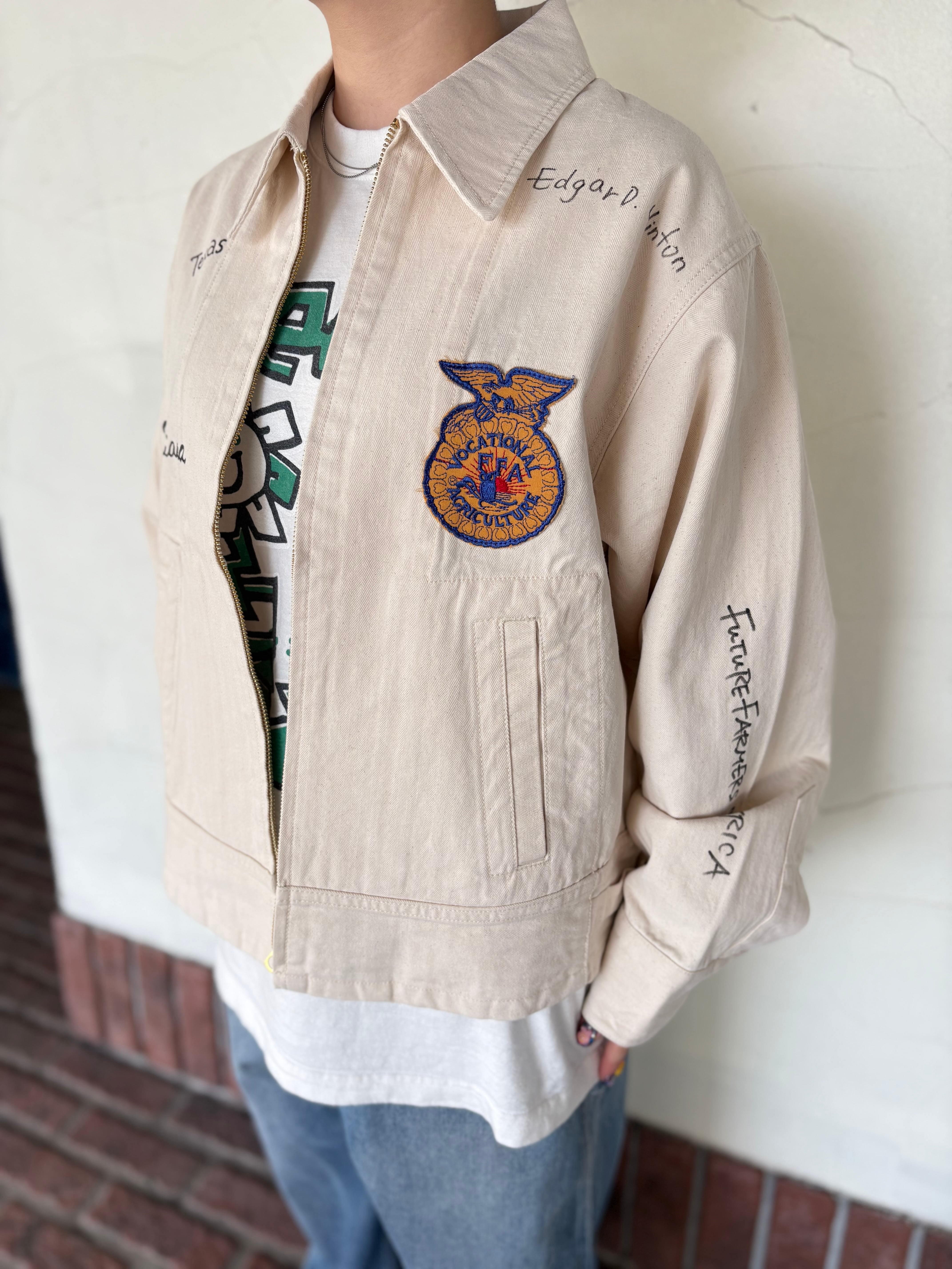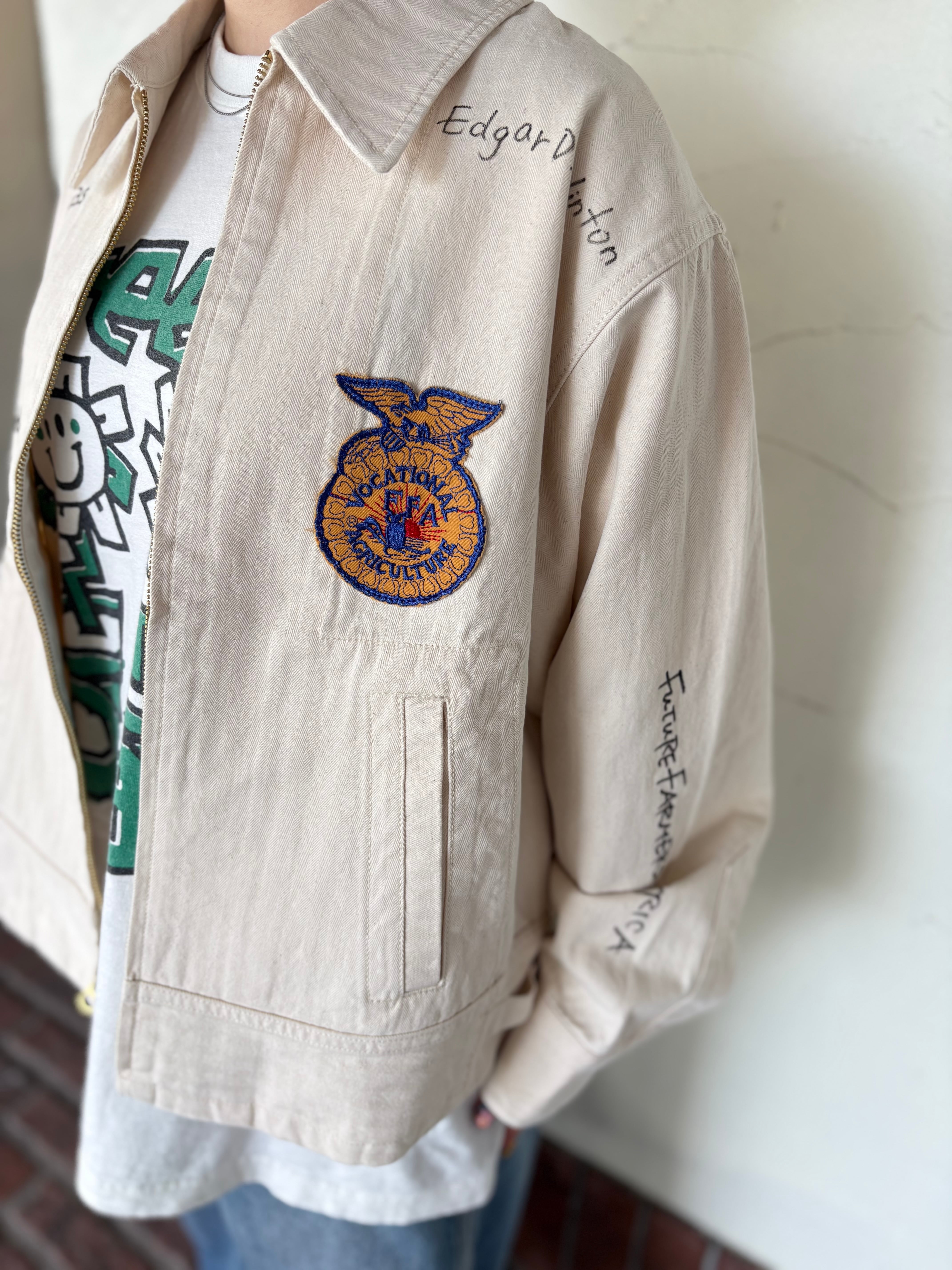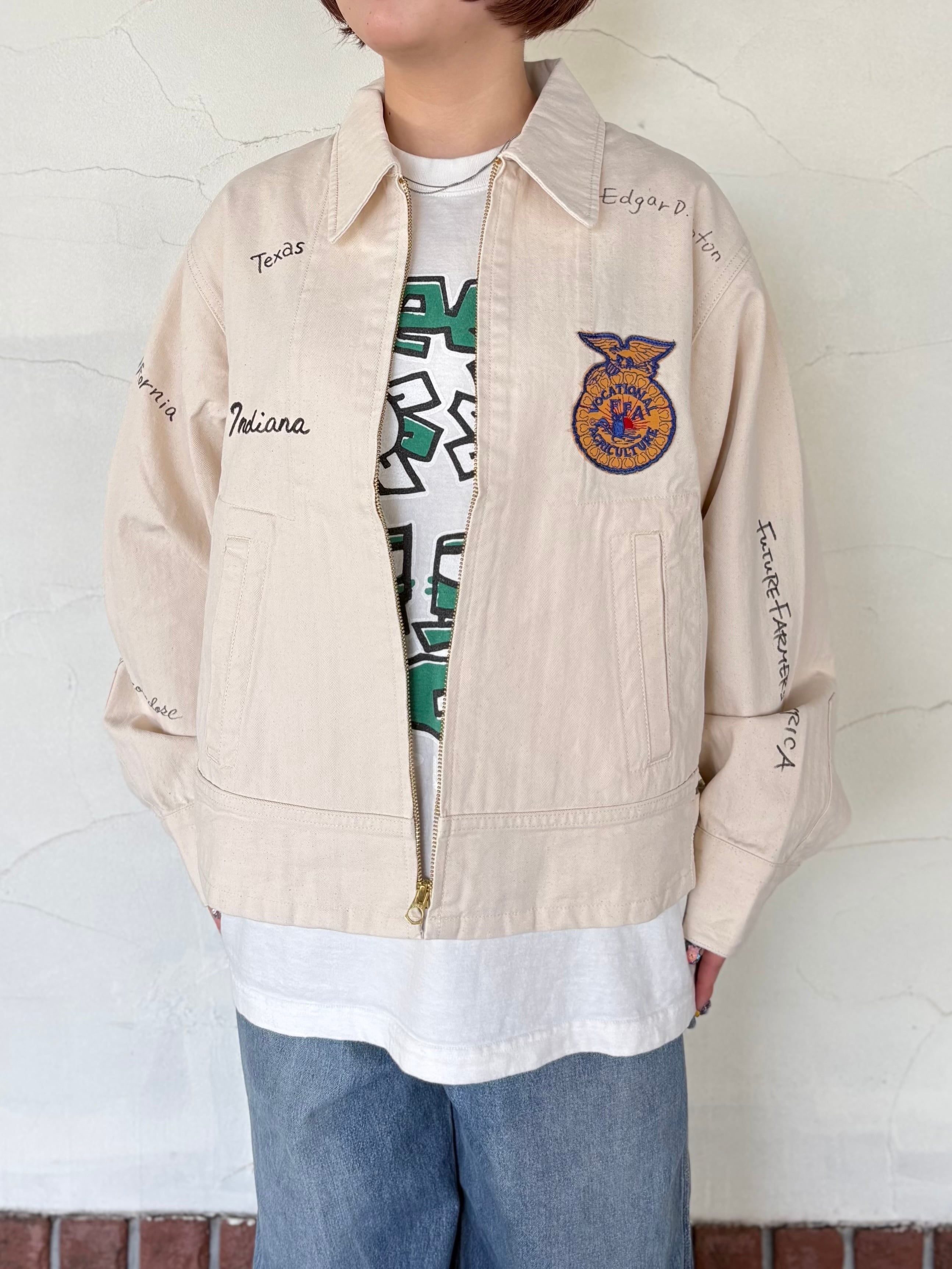 FFA(Future Farmers Agriculture)ジャケットは1928年設立、アメリカの国立農業学校のユニフォームウェアで州ごとに違う刺繍、着用者の名前が施されているジャケット。