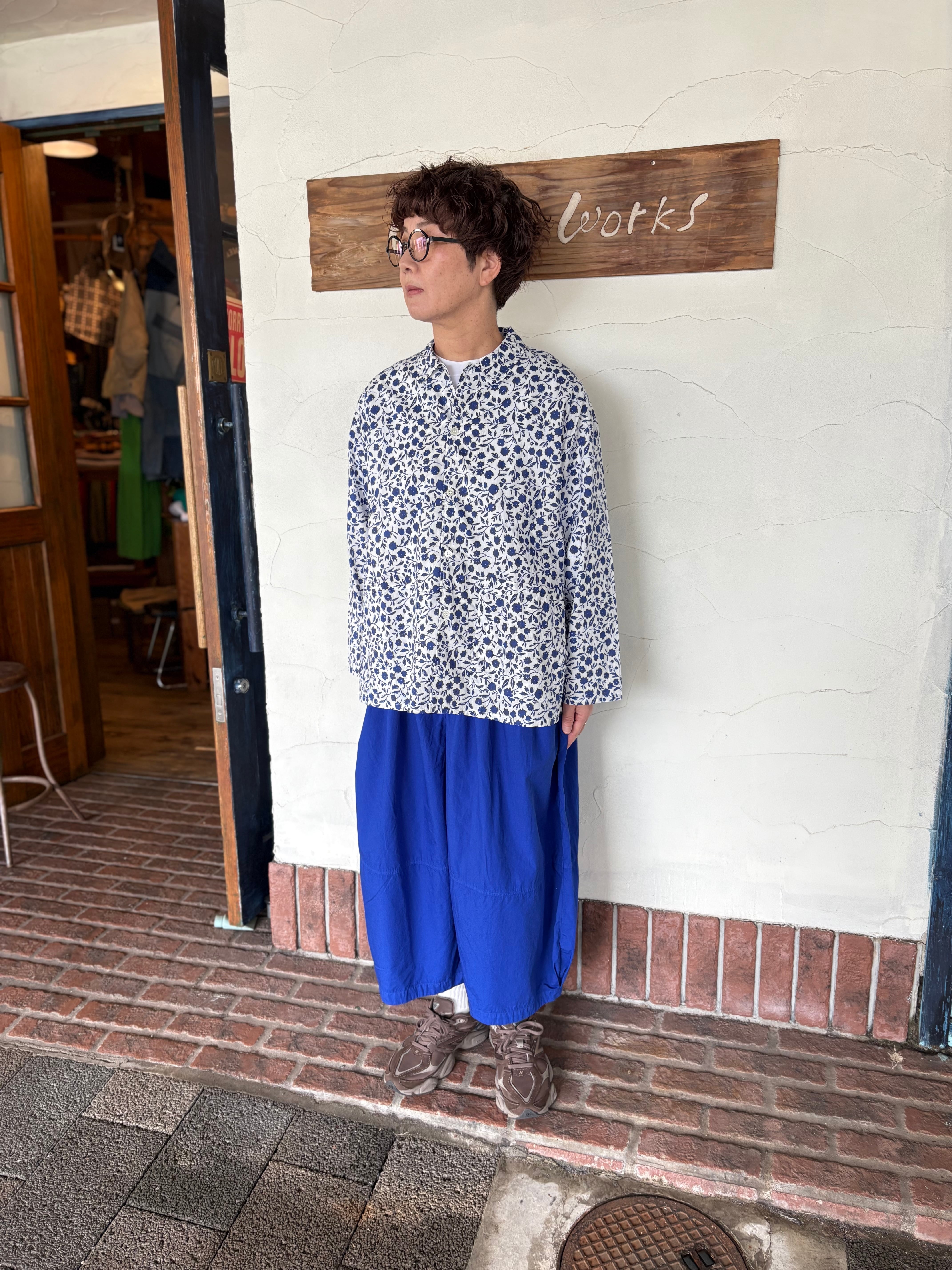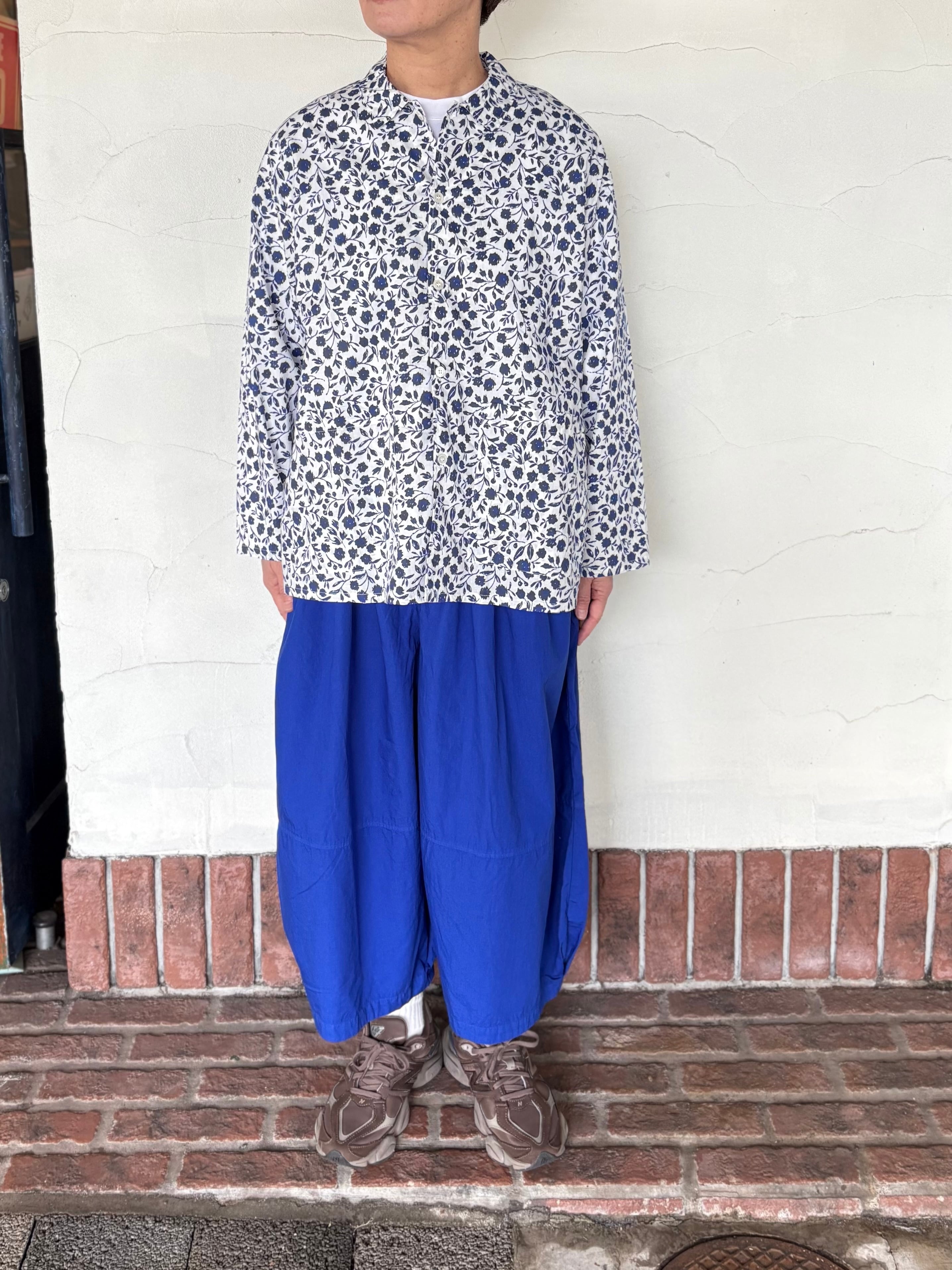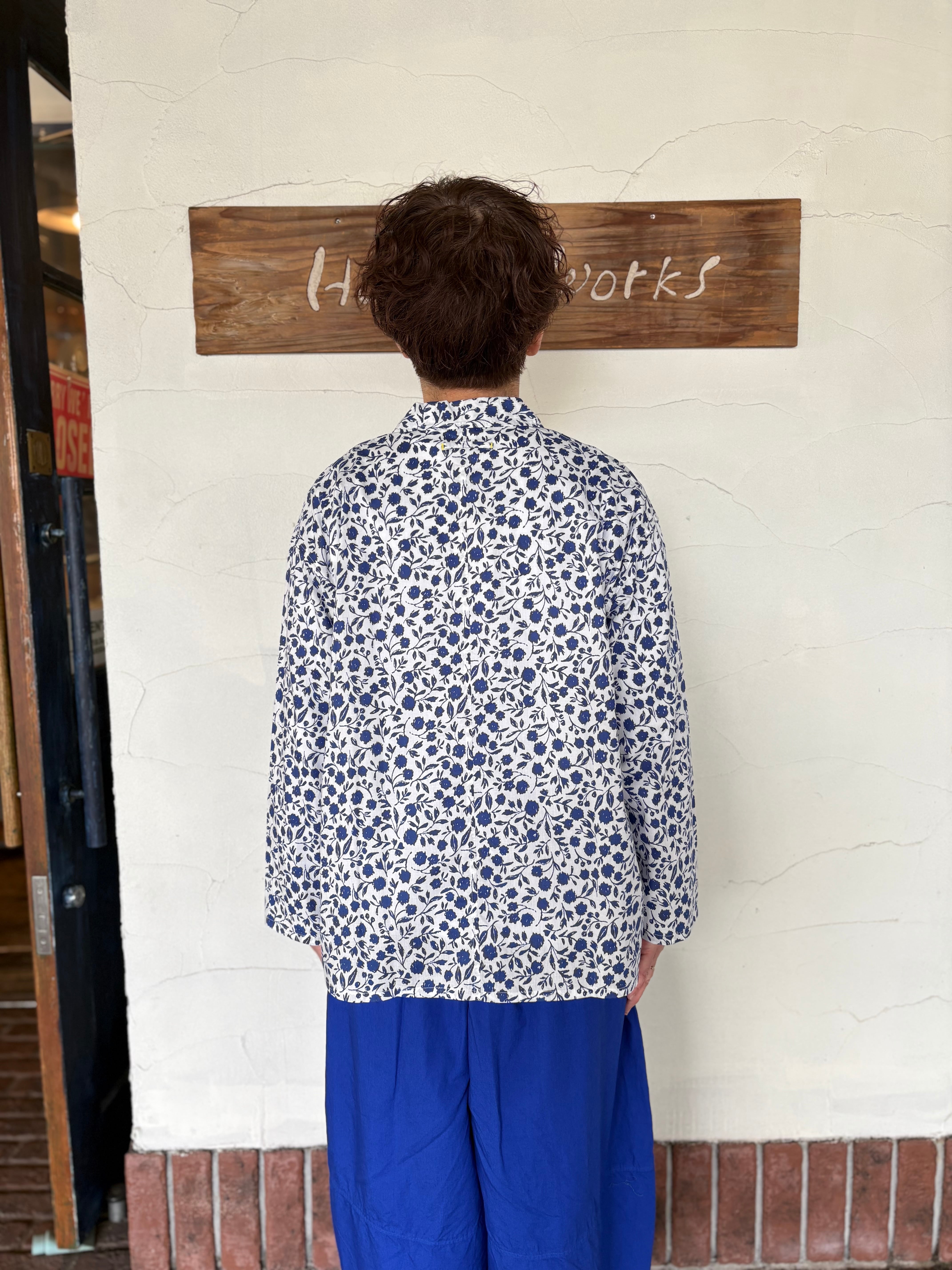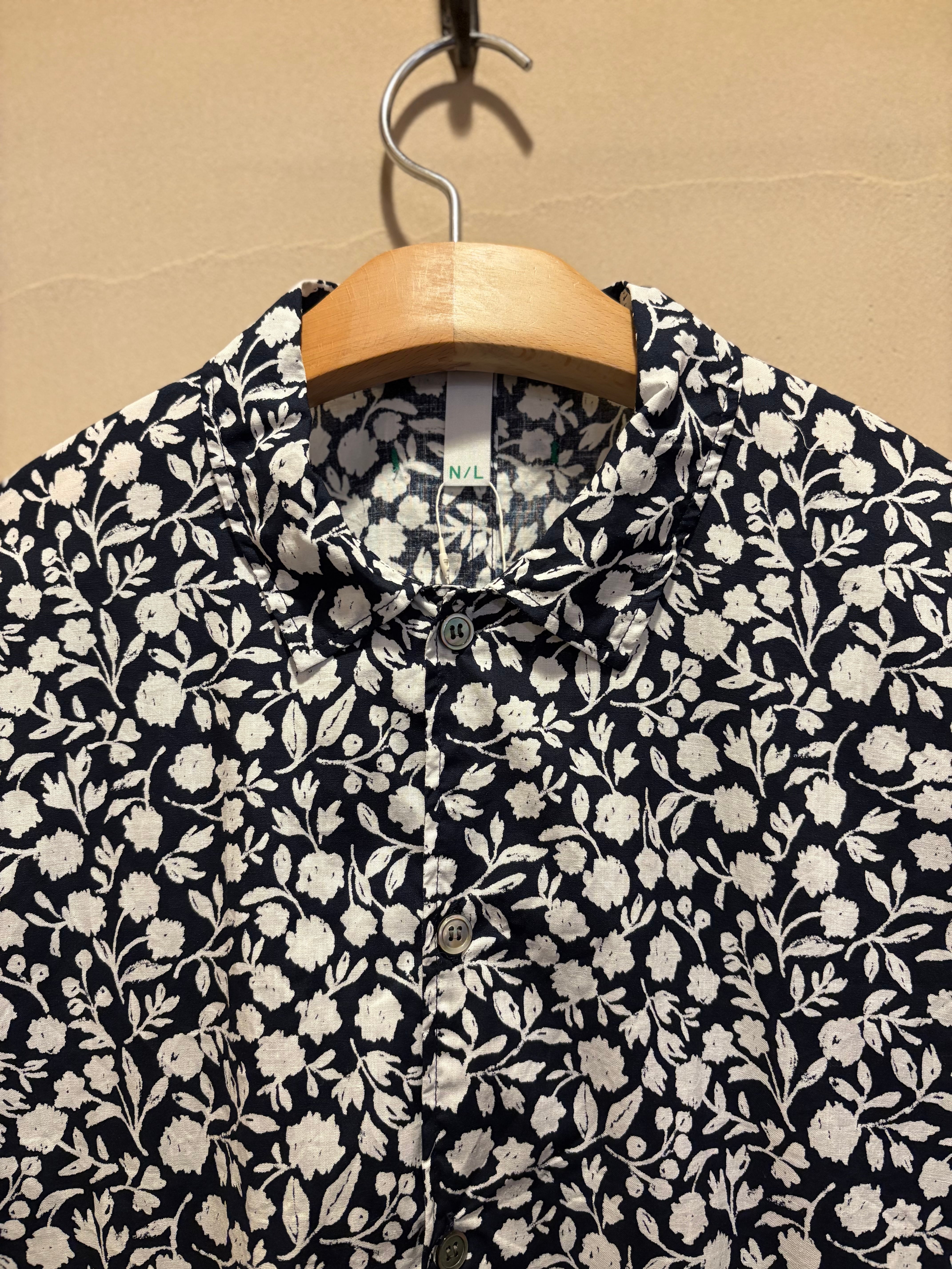 オリジナルフラワープリントのコットン素材の襟付きシャツ、手描きのサッとしたタッチと小花柄よりも少し大きめの柄が華やかな1枚。ゆったりとしたシルエットに柔らかくサラッとした生地。カジュアルな着こなしやジャケットインナーとしても可愛いです!