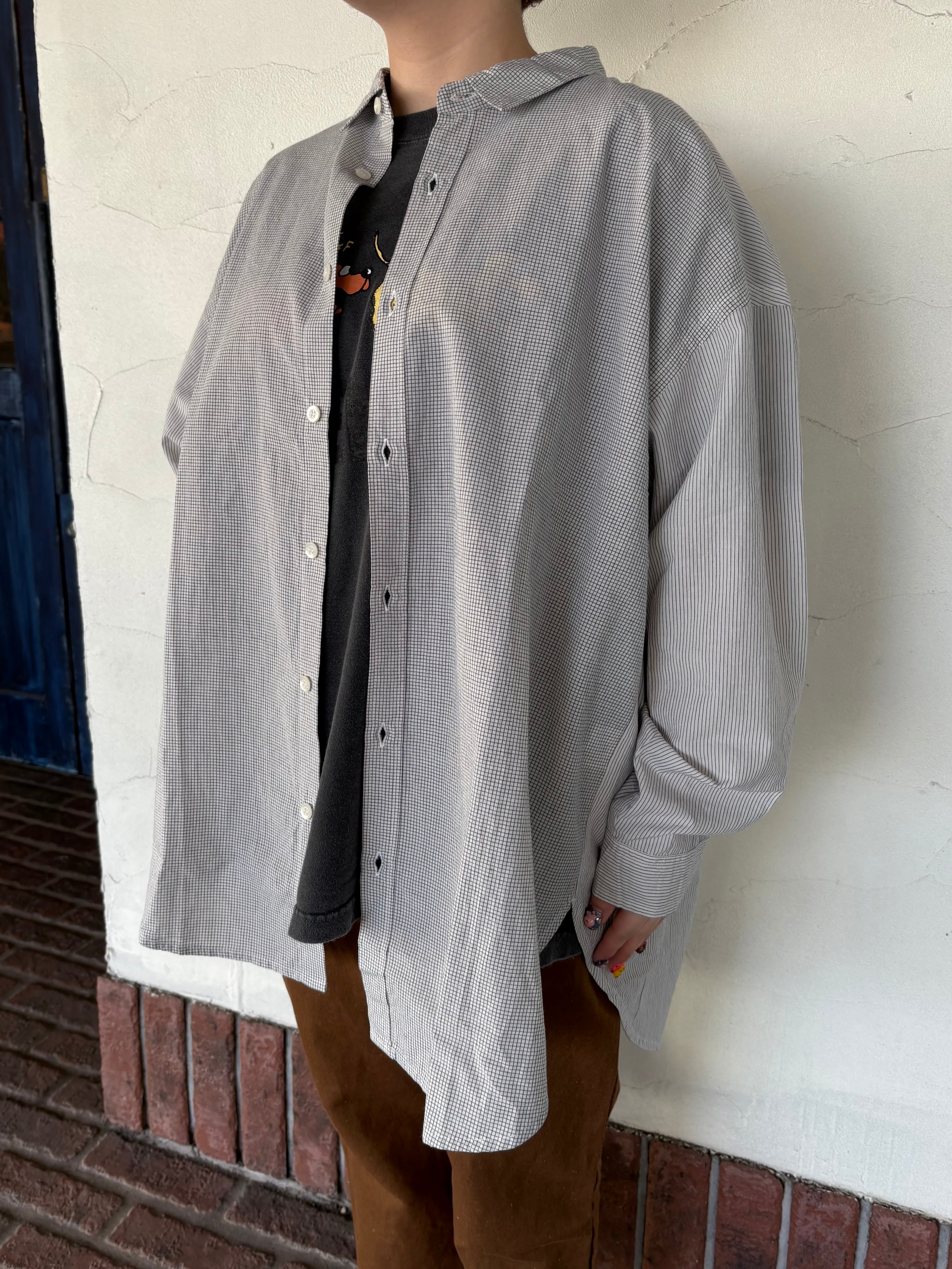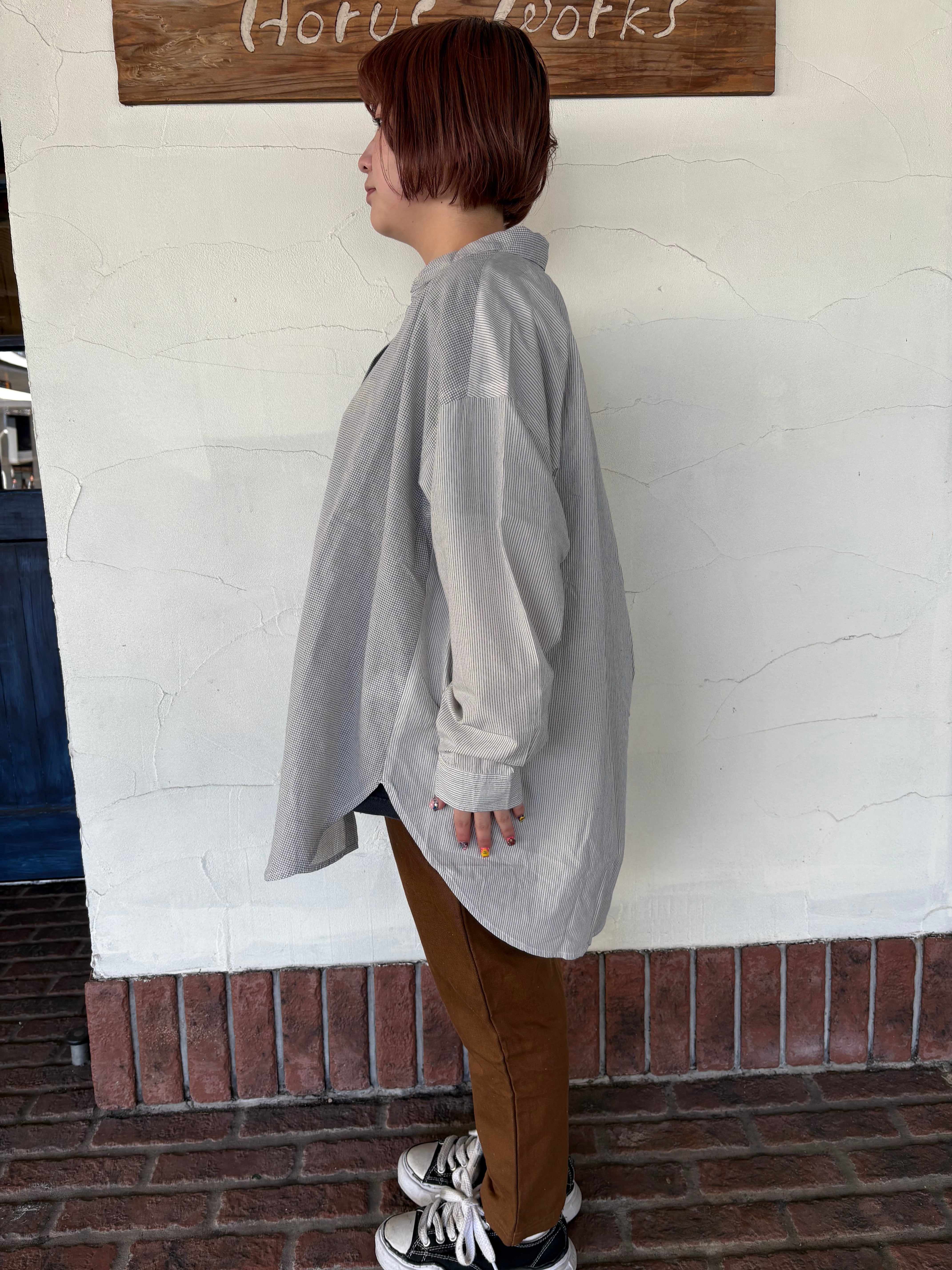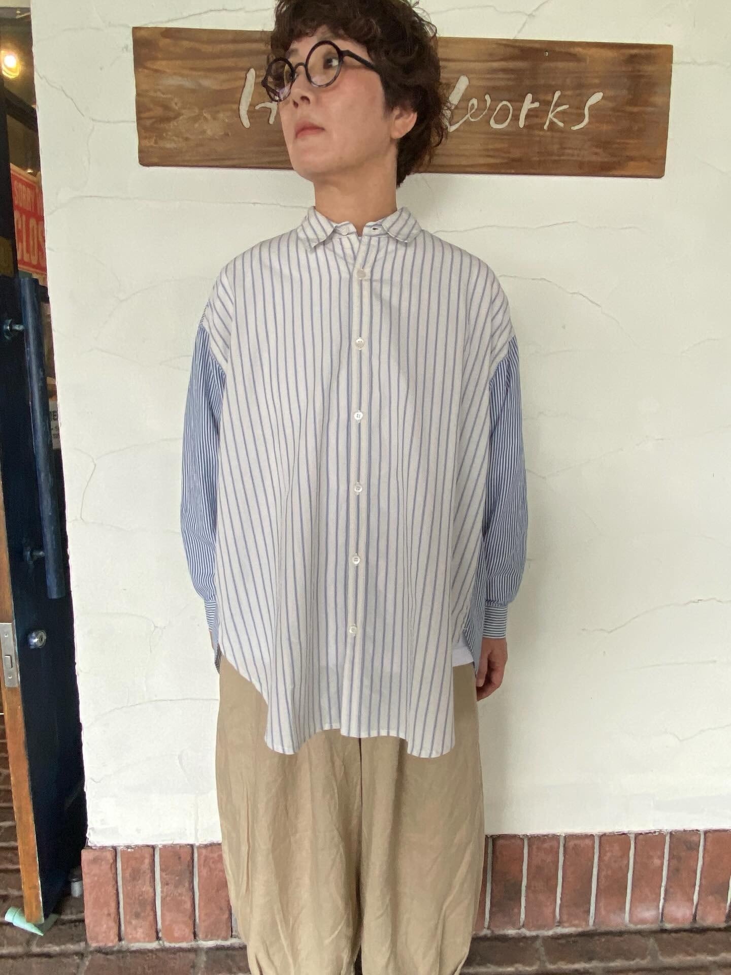 ギンガムとストライプのさりげない切り替えが、装いに程よいアクセントを添えてくれます。
