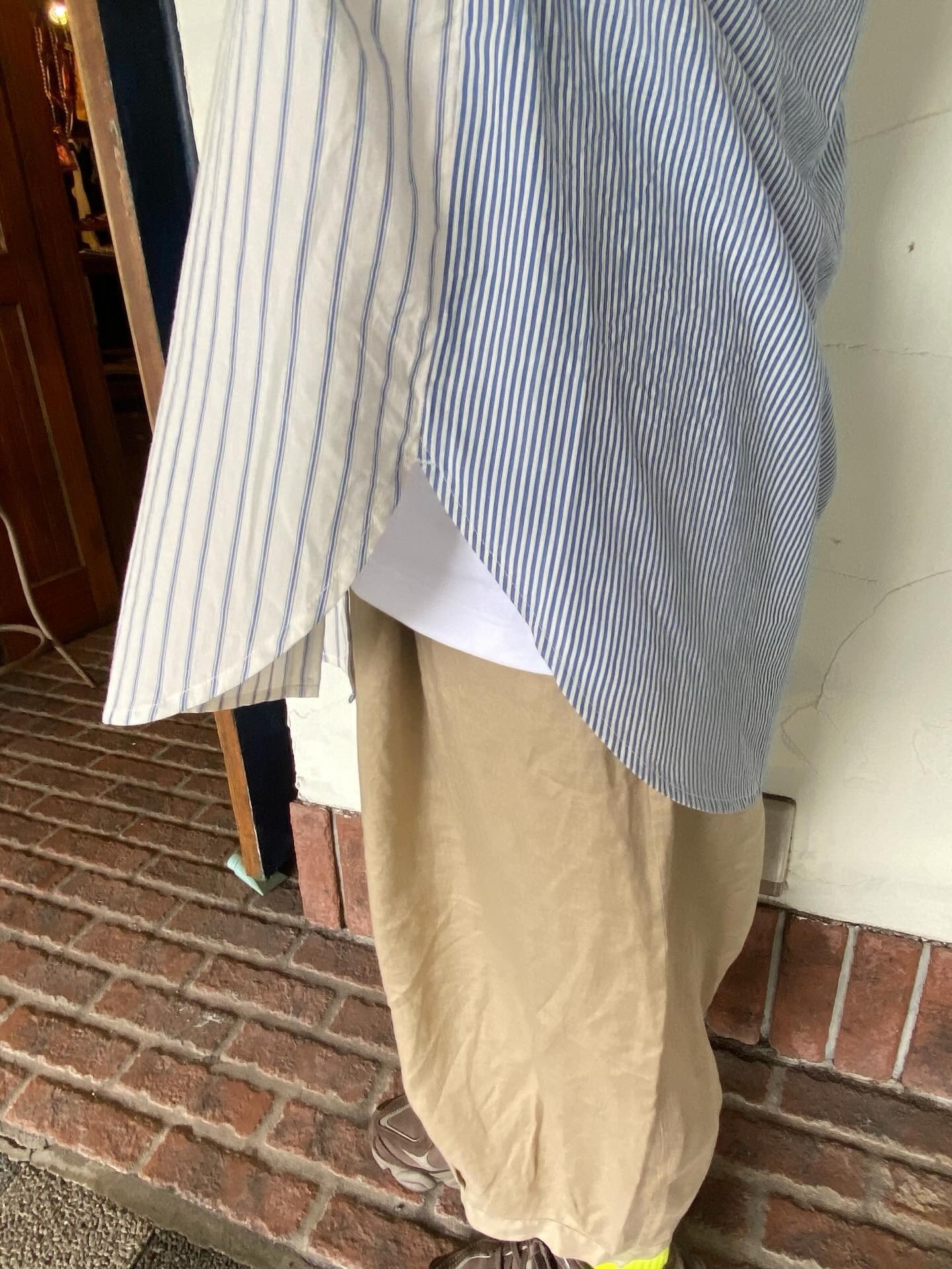 ゆとりのある身幅と前後差のある着丈で、自然と抜け感のあるシルエットが生まれます。