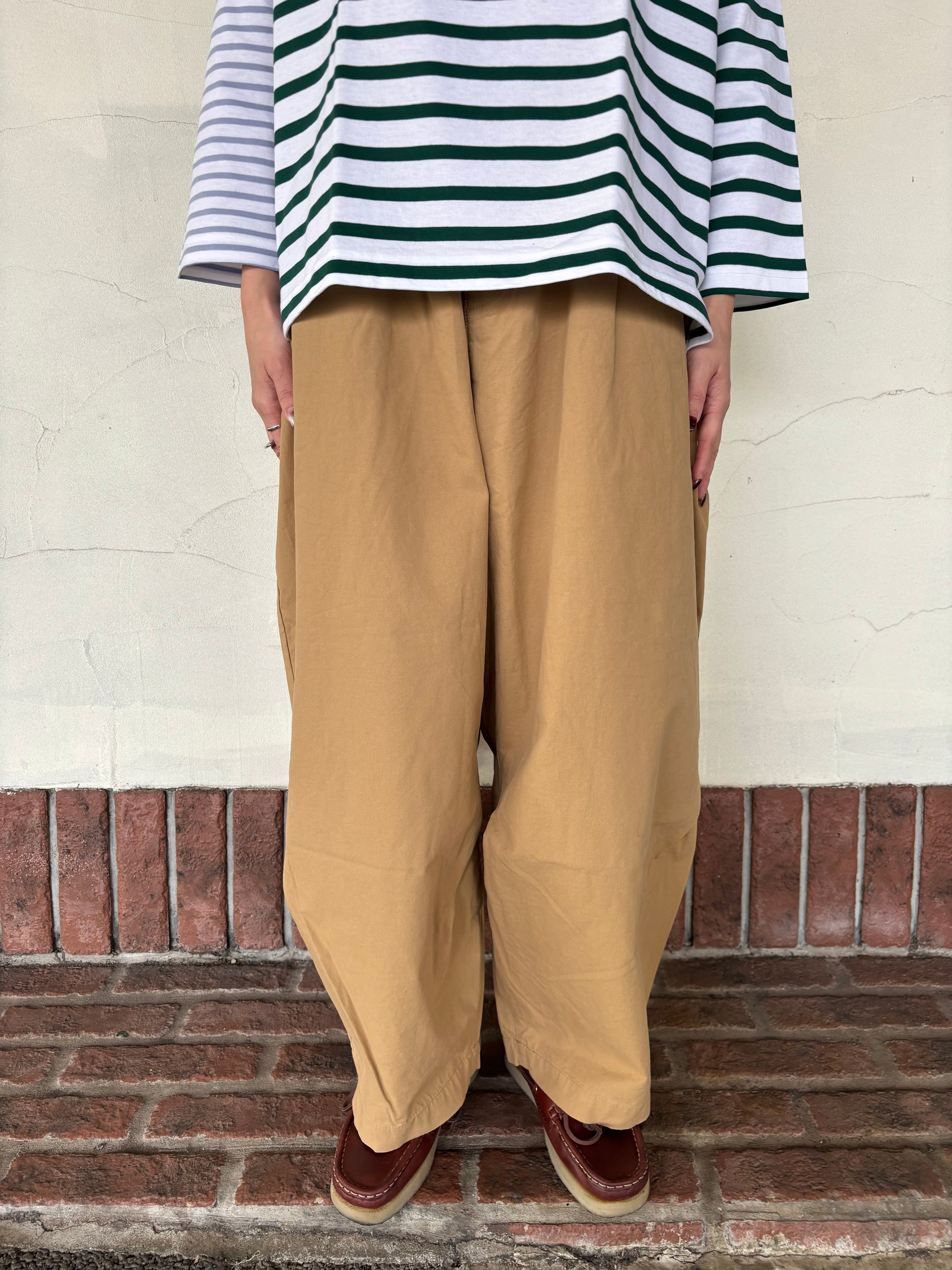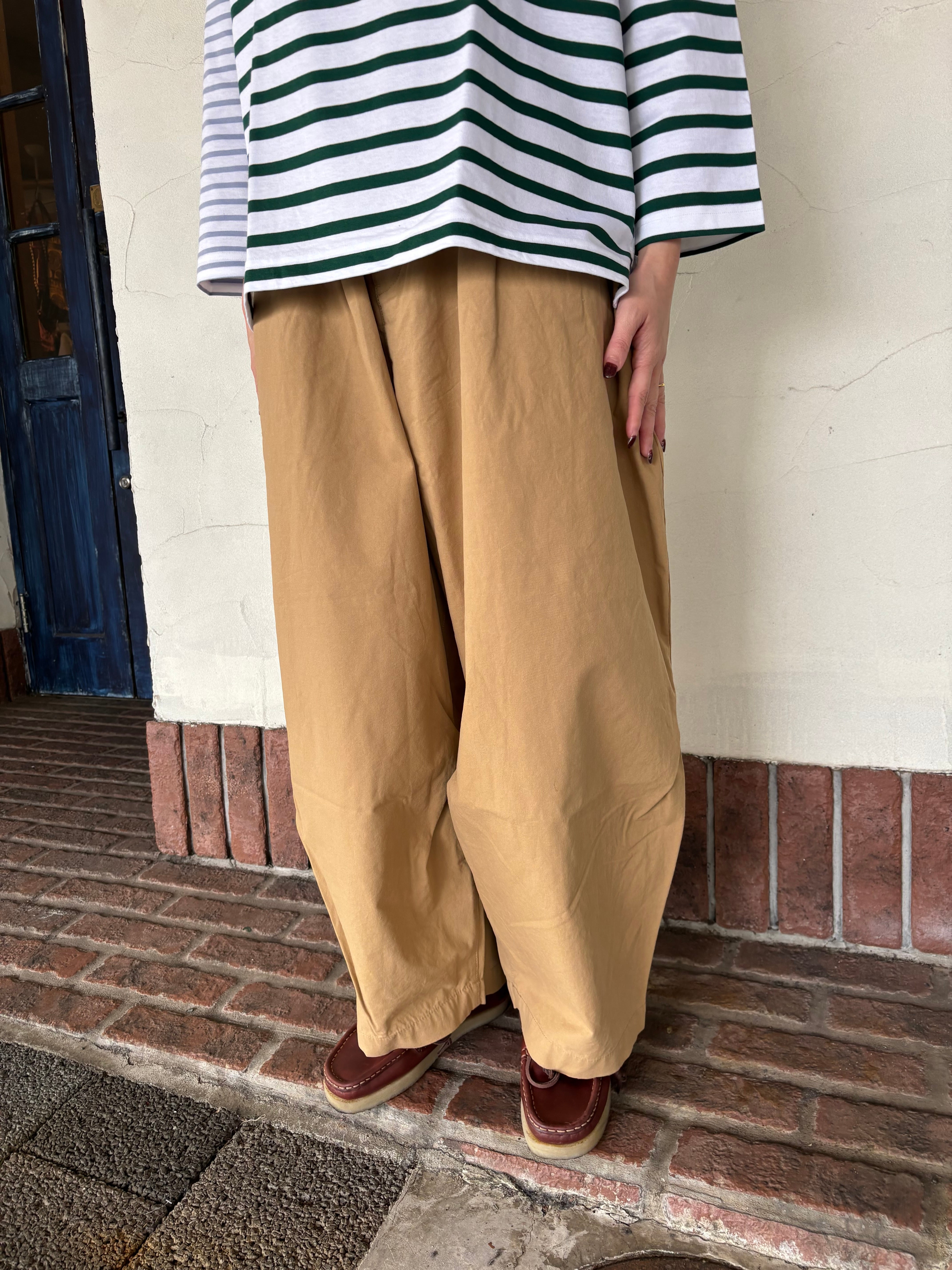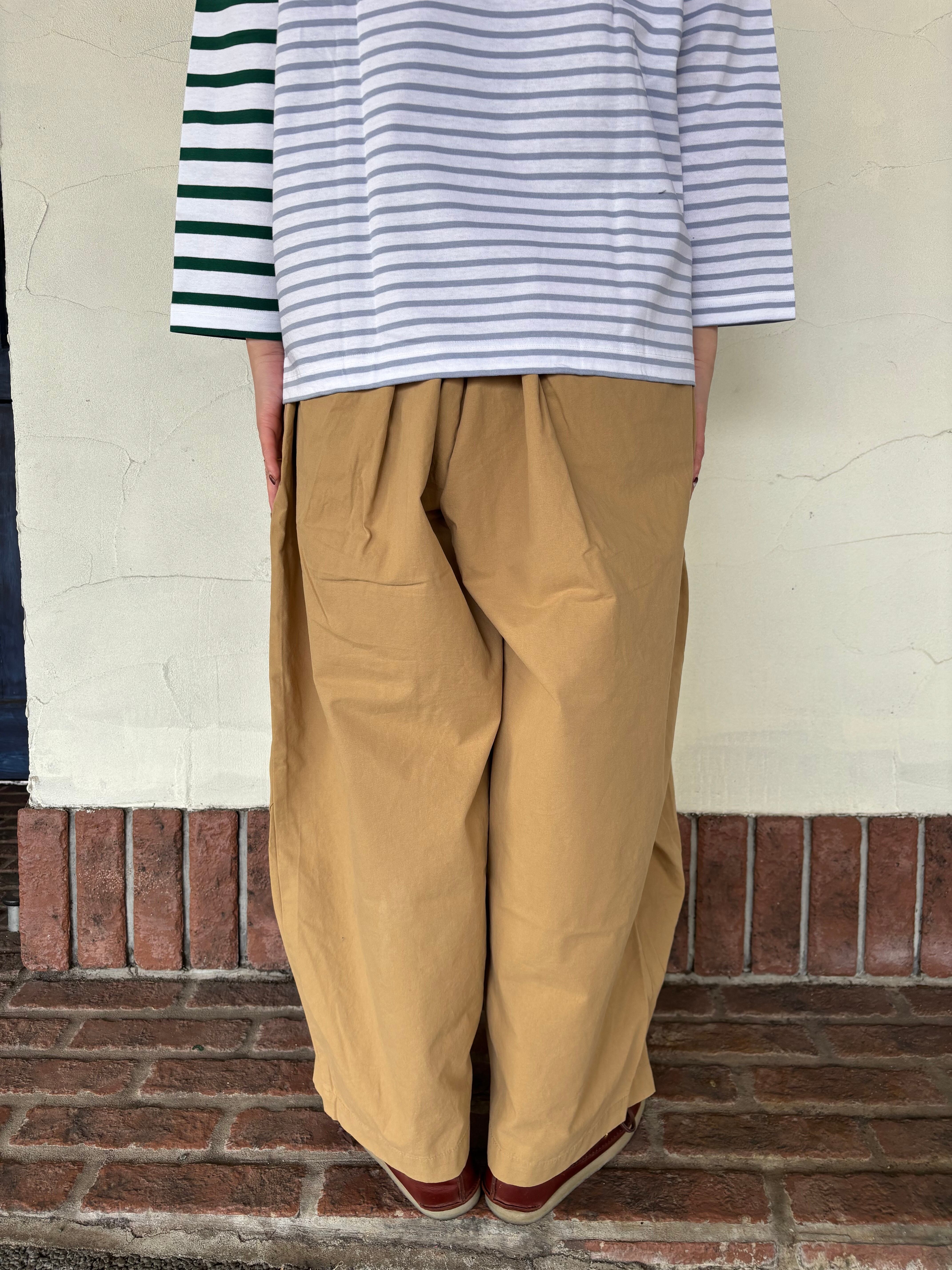 大人気のバックタックトラウザーパンツが入荷しました。ワイドでありながら、裾に向かって細くなるシルエットなのでカジュアルすぎない印象に。後ろはタックデザインでもたつかずすっきりと。穿き心地とシルエットにこだわった1本です。