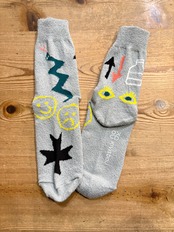 おもちゃ箱をひっくり返したみたいに、“好き”がごちゃ混ぜになった HAPPYなミックス柄 のソックスです。