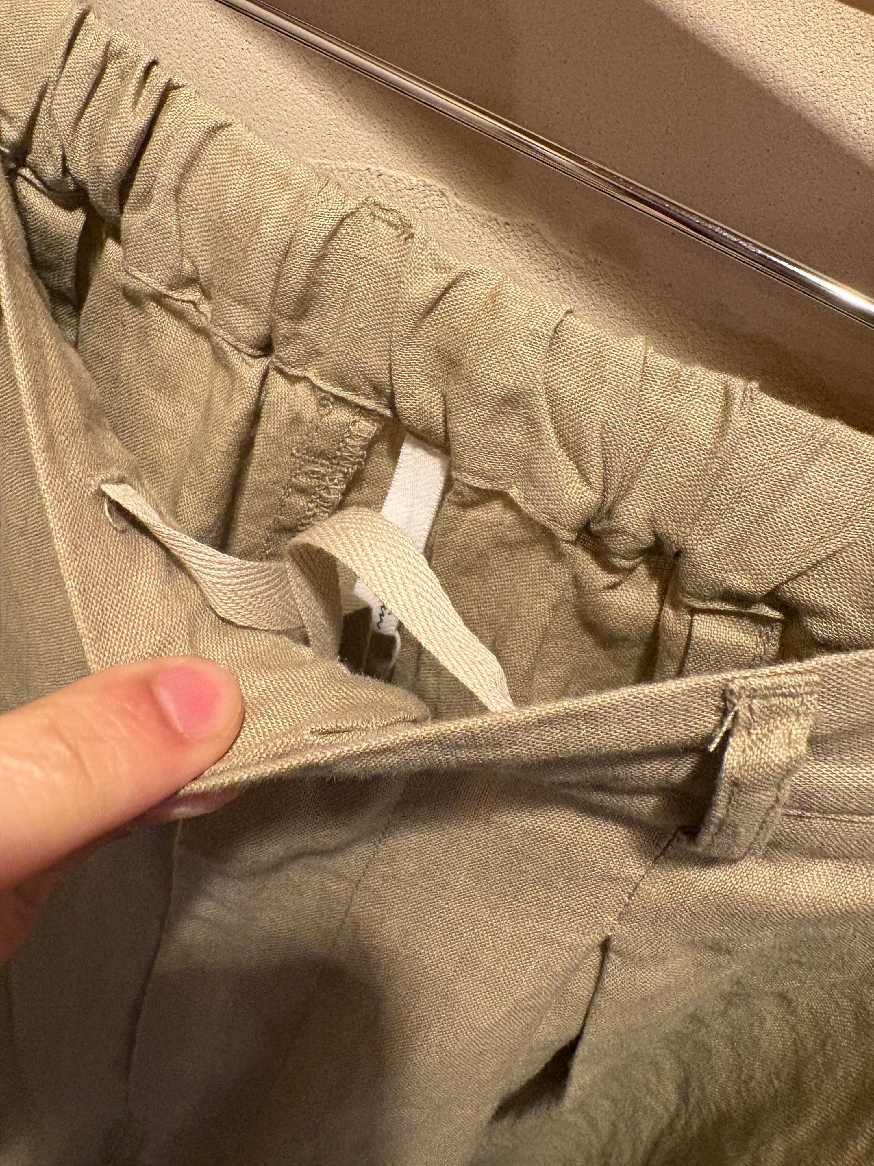 ウエストはボタンですっきりとしながらも、ゴムと紐で自在に調整可能です!