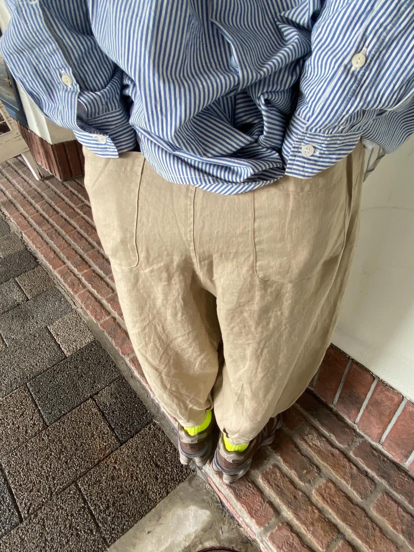 リネン特有の粗野感は抑えめで、ほんのり艶のある綺麗目な素材です。