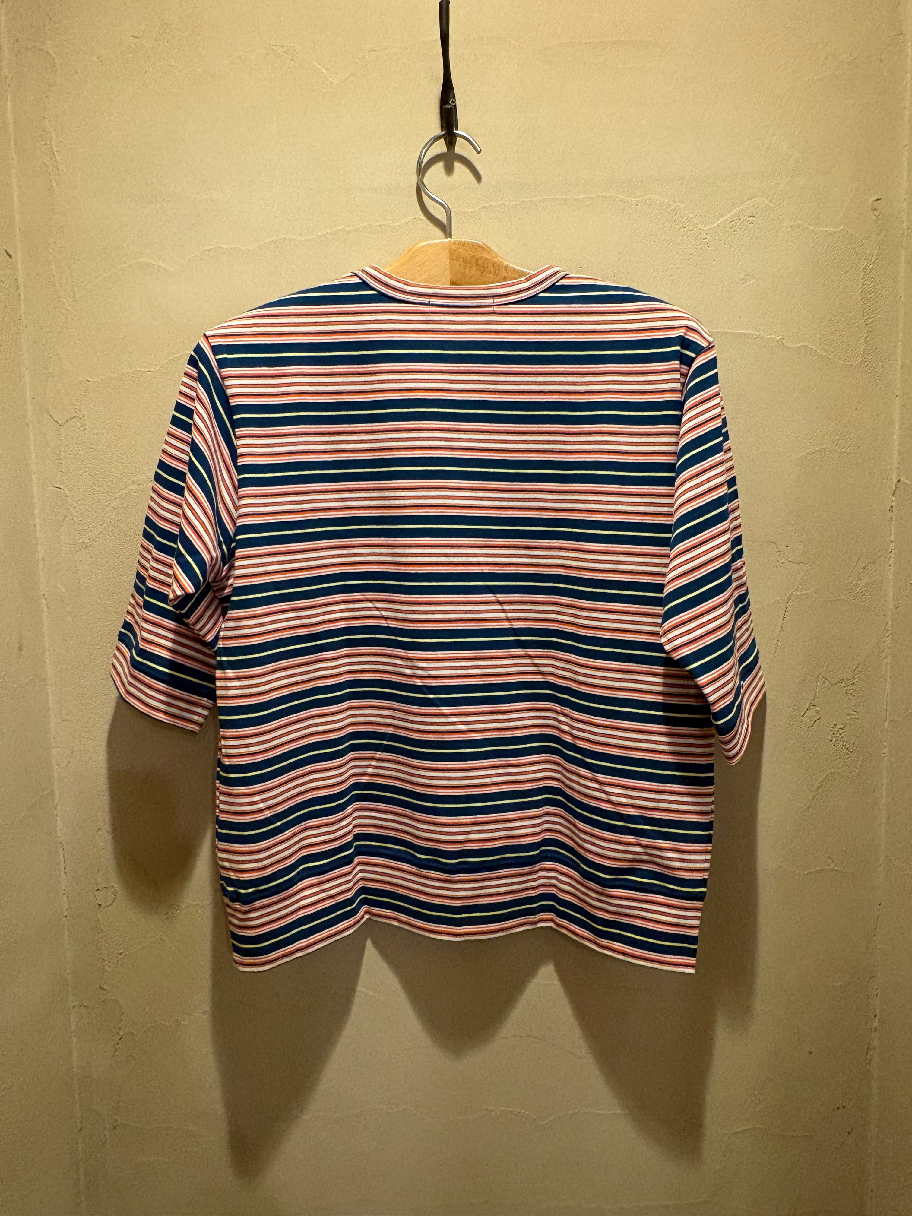 シンプルながらも配色のバランスが絶妙で、コーディネートにさりげないアクセントを添えてくれる一枚です。