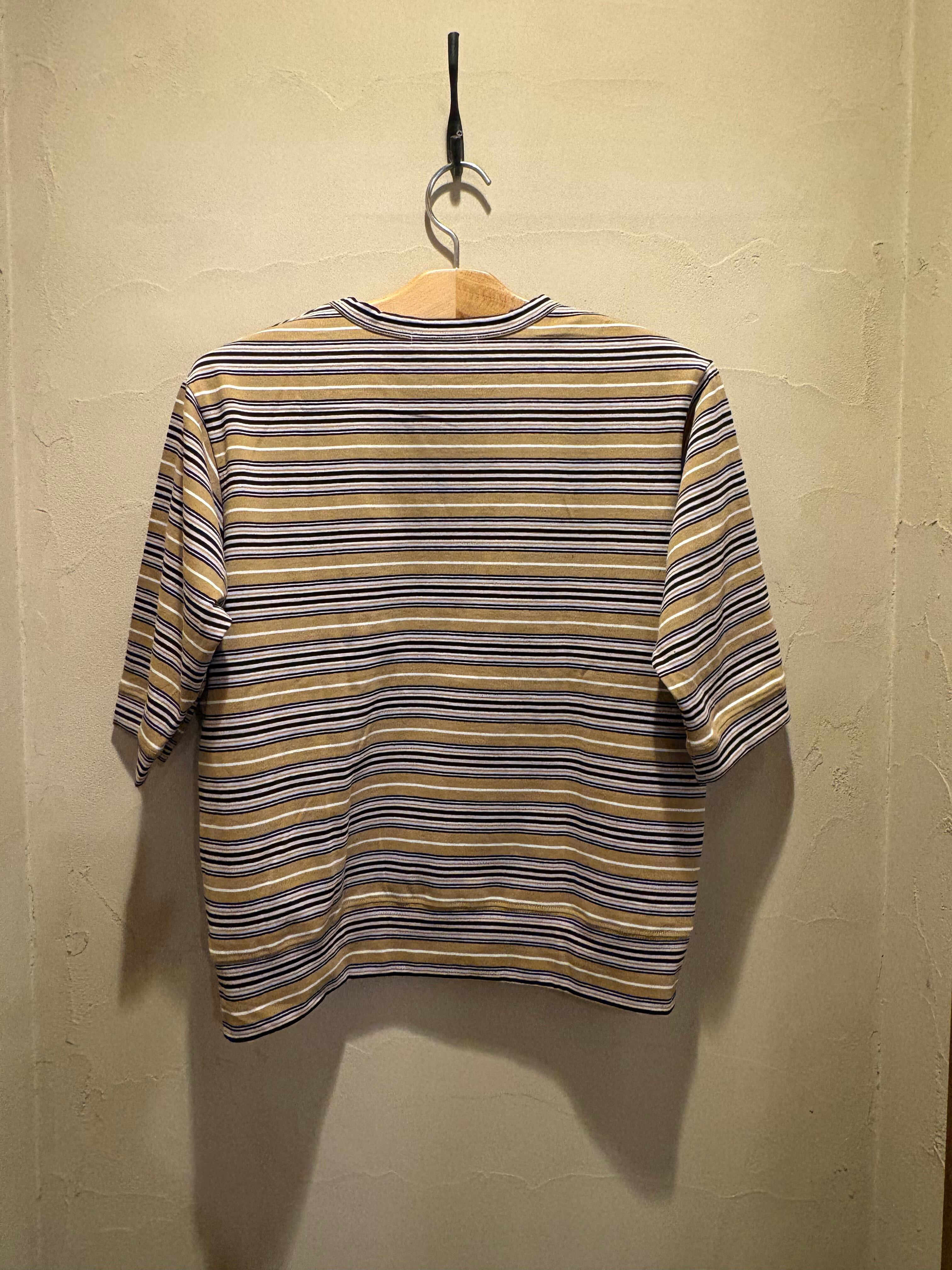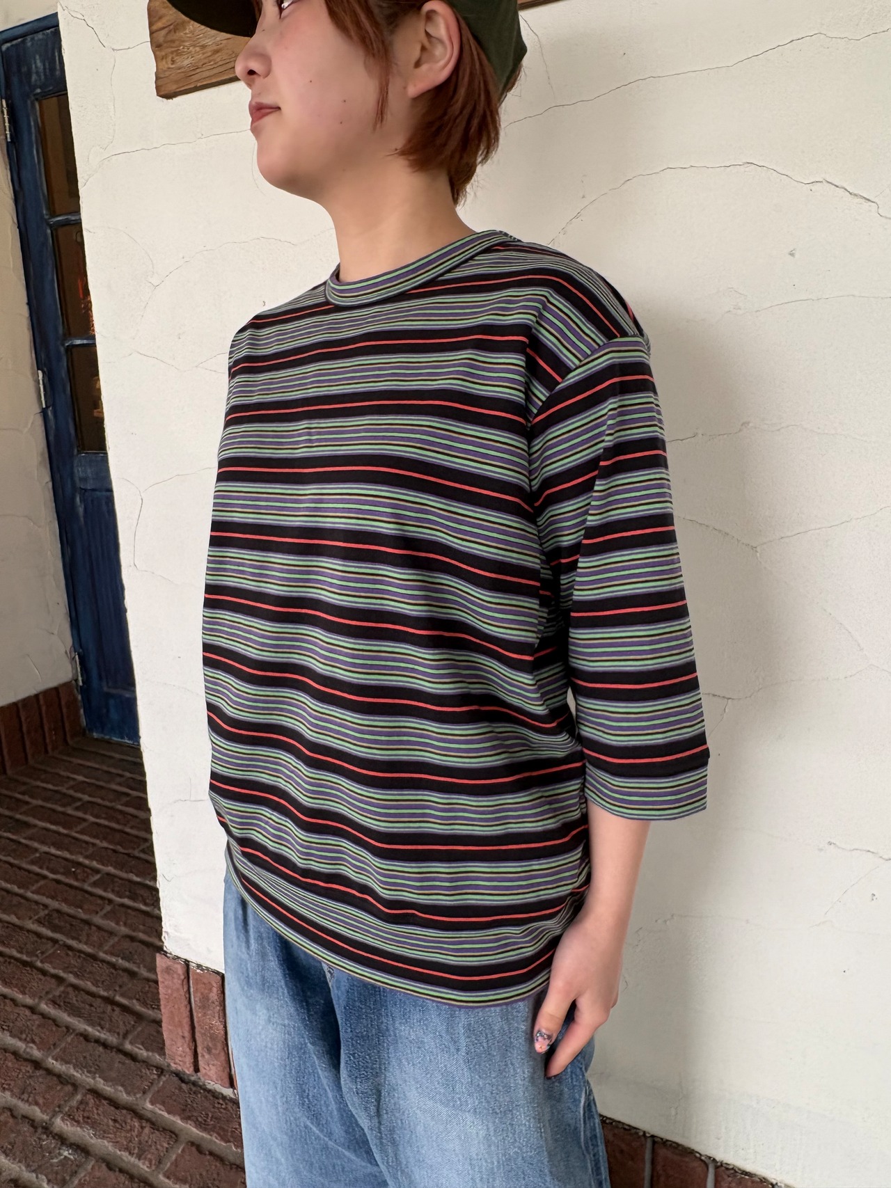 落ち着いたカラーに、細やかなボーダーが映える五分袖プルオーバー。