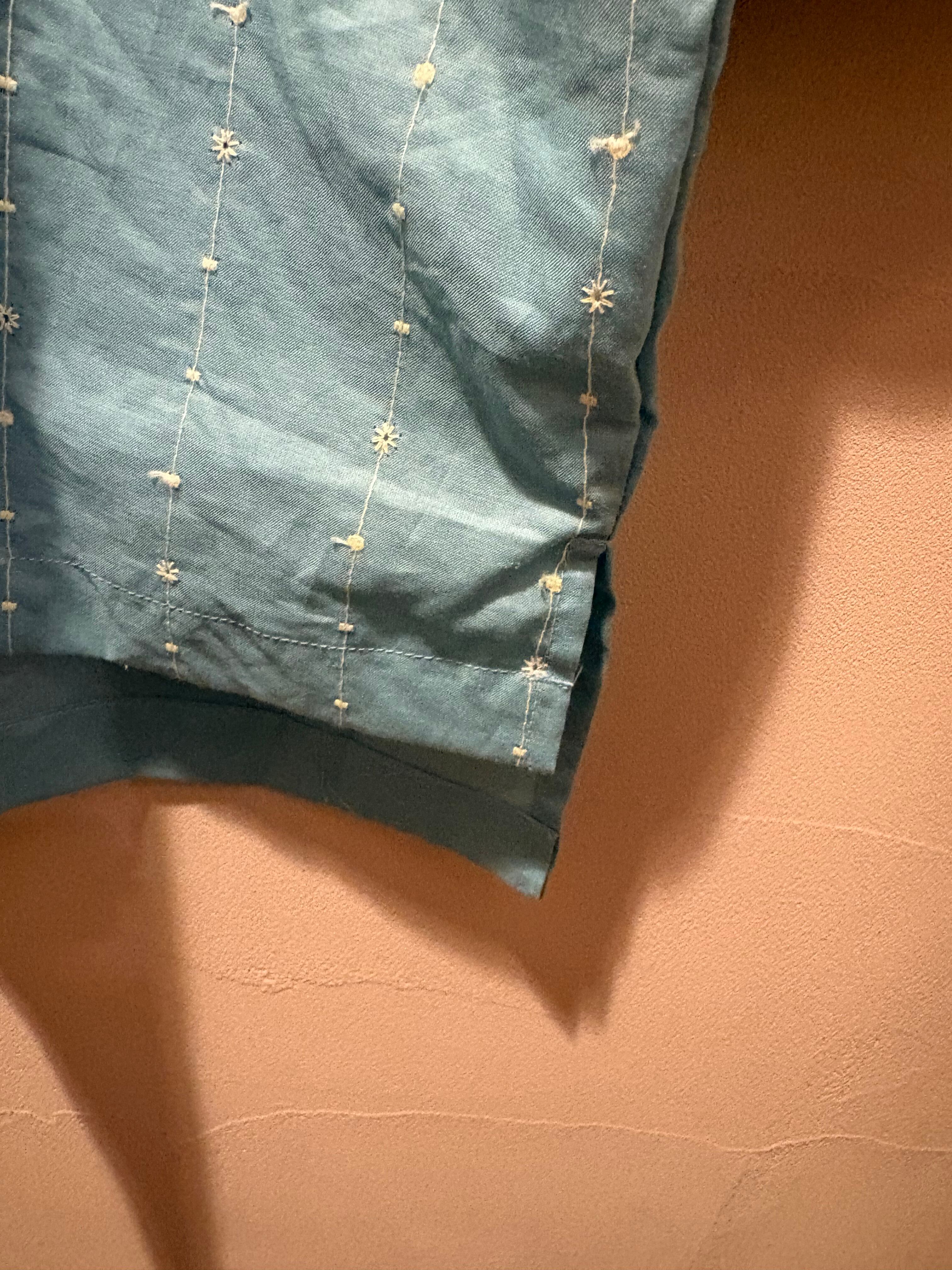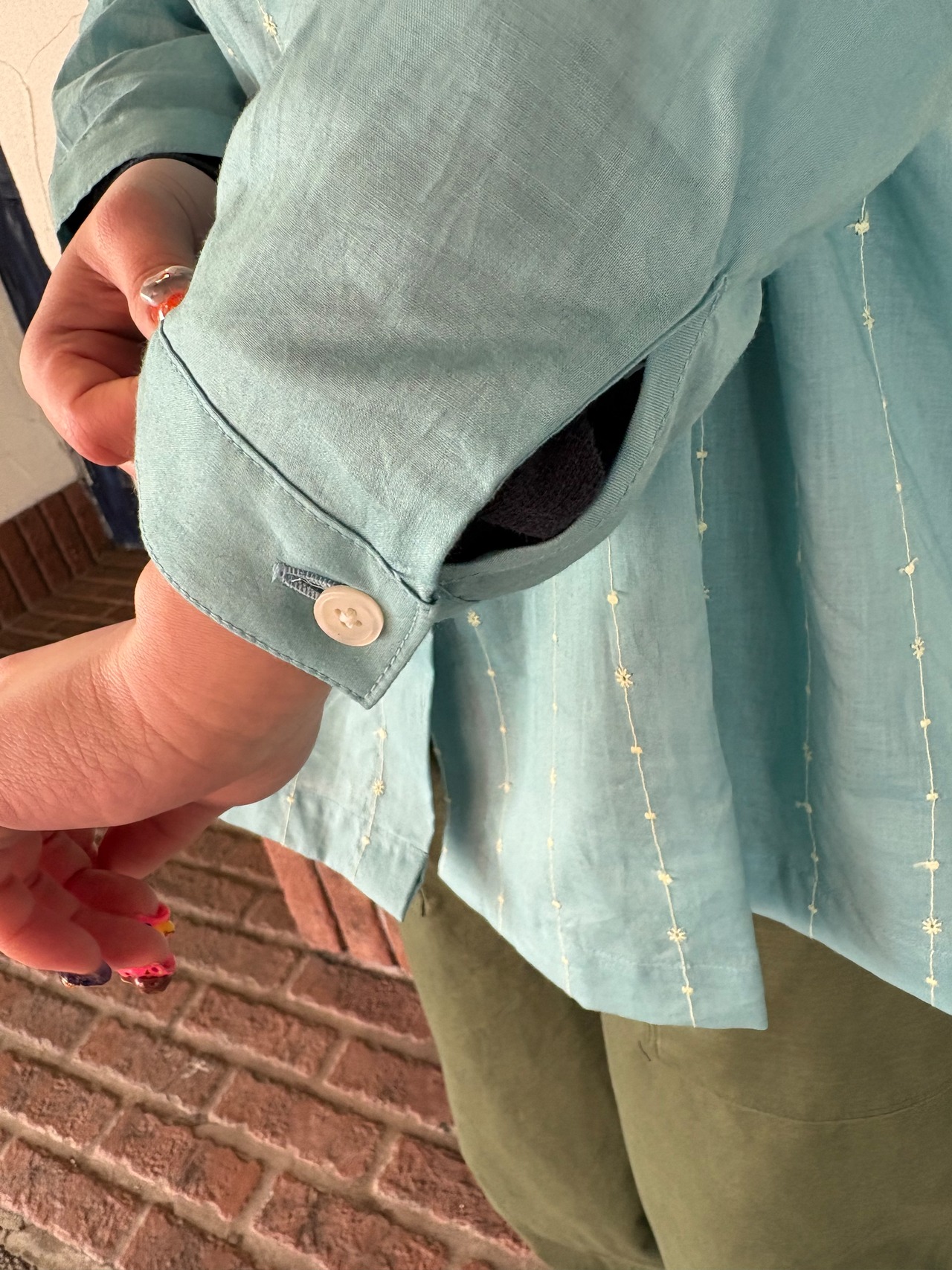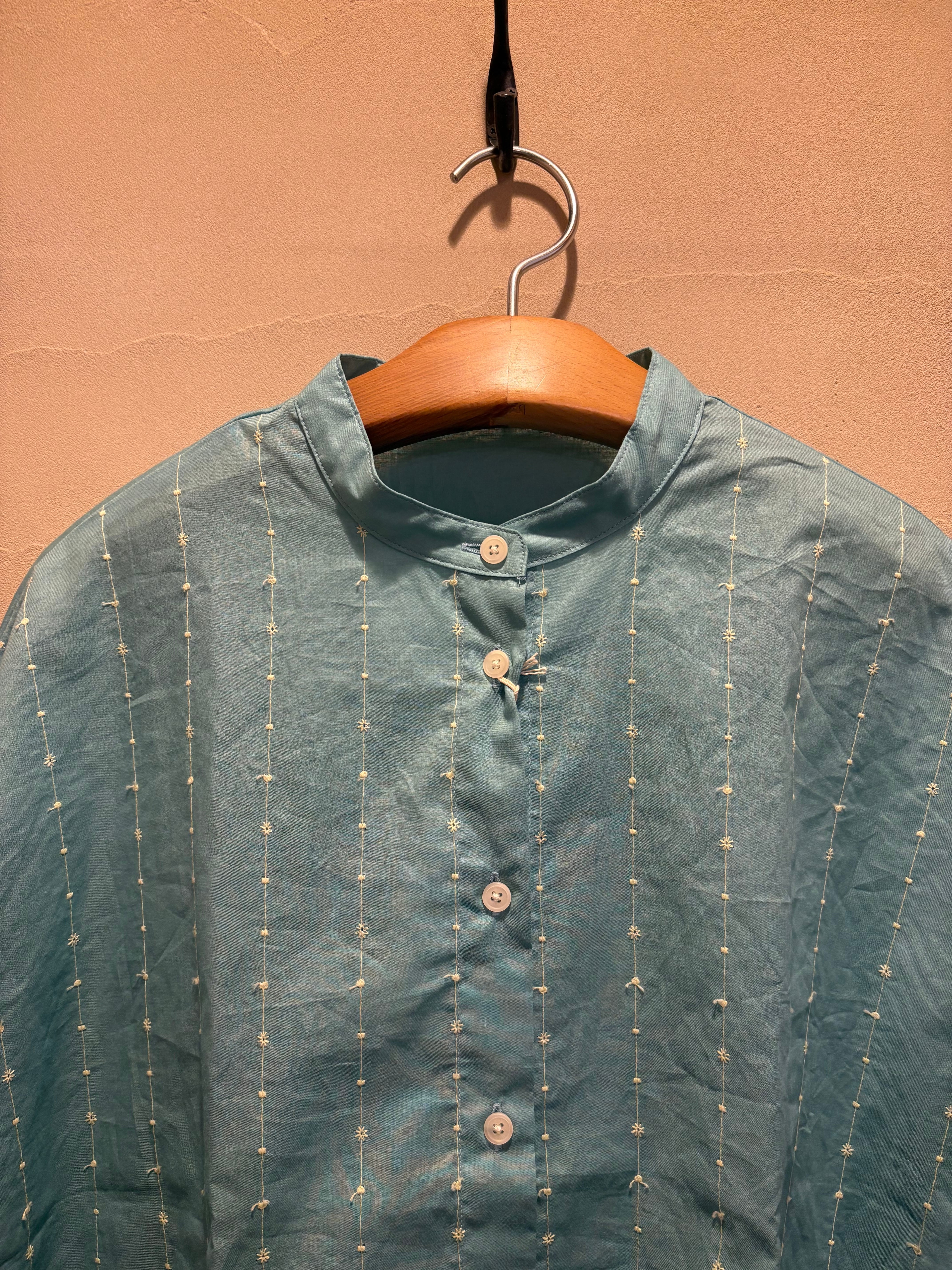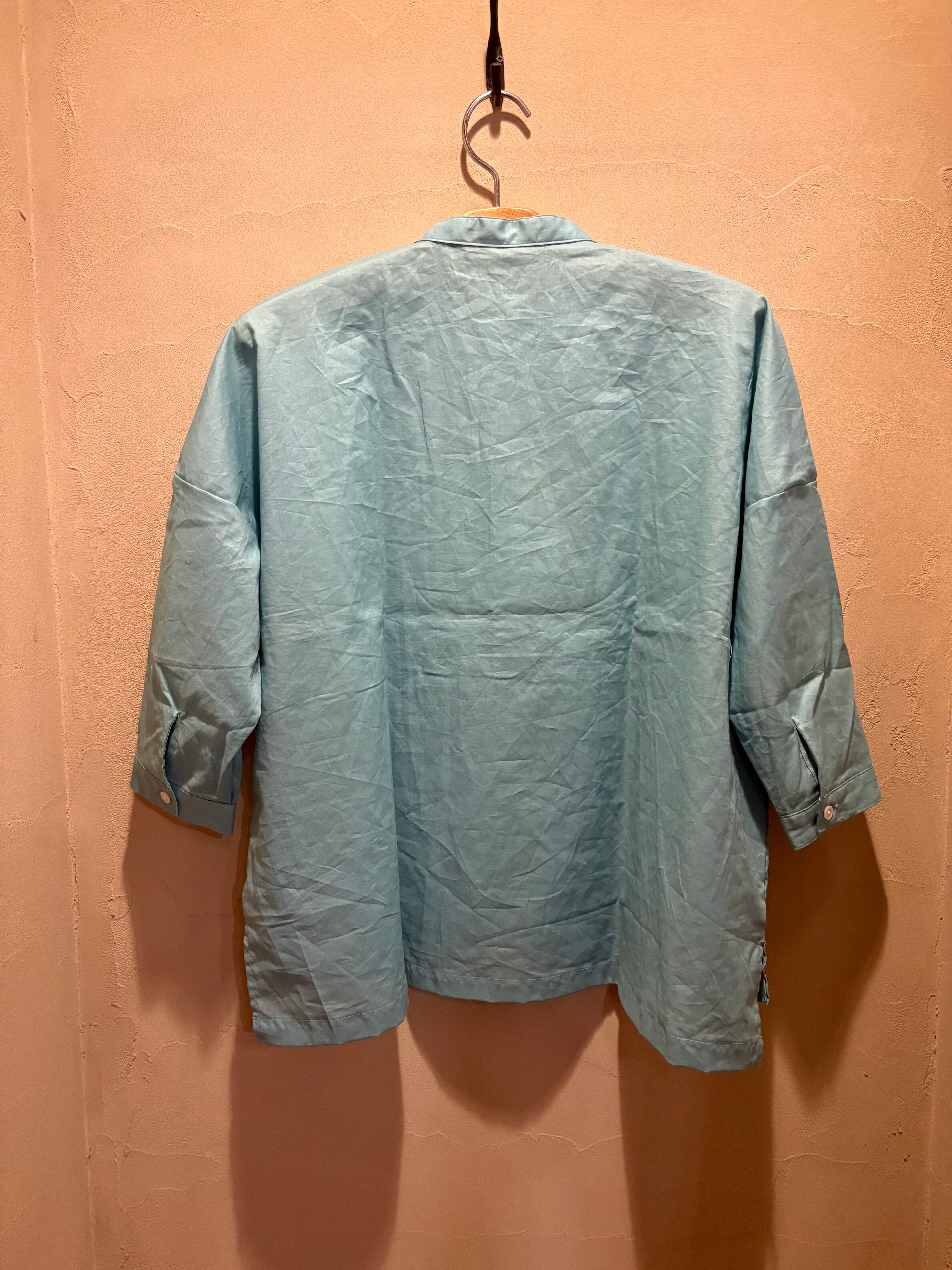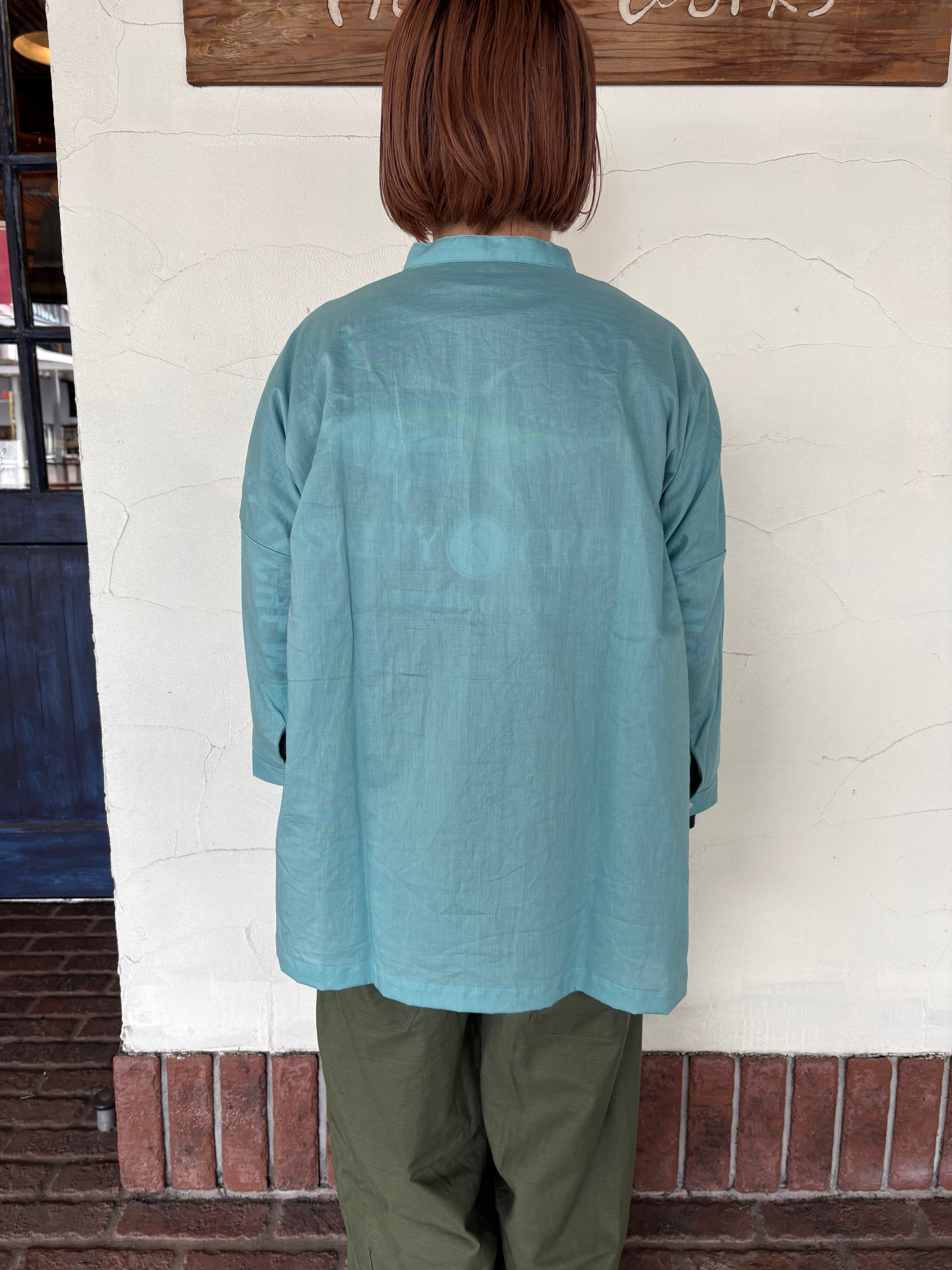 身幅にゆとりを持たせることで、リラックスした着心地ながら、前身頃のみに施した刺繍とバンドカラーがラフすぎない上品な印象を与えるアイテムです!