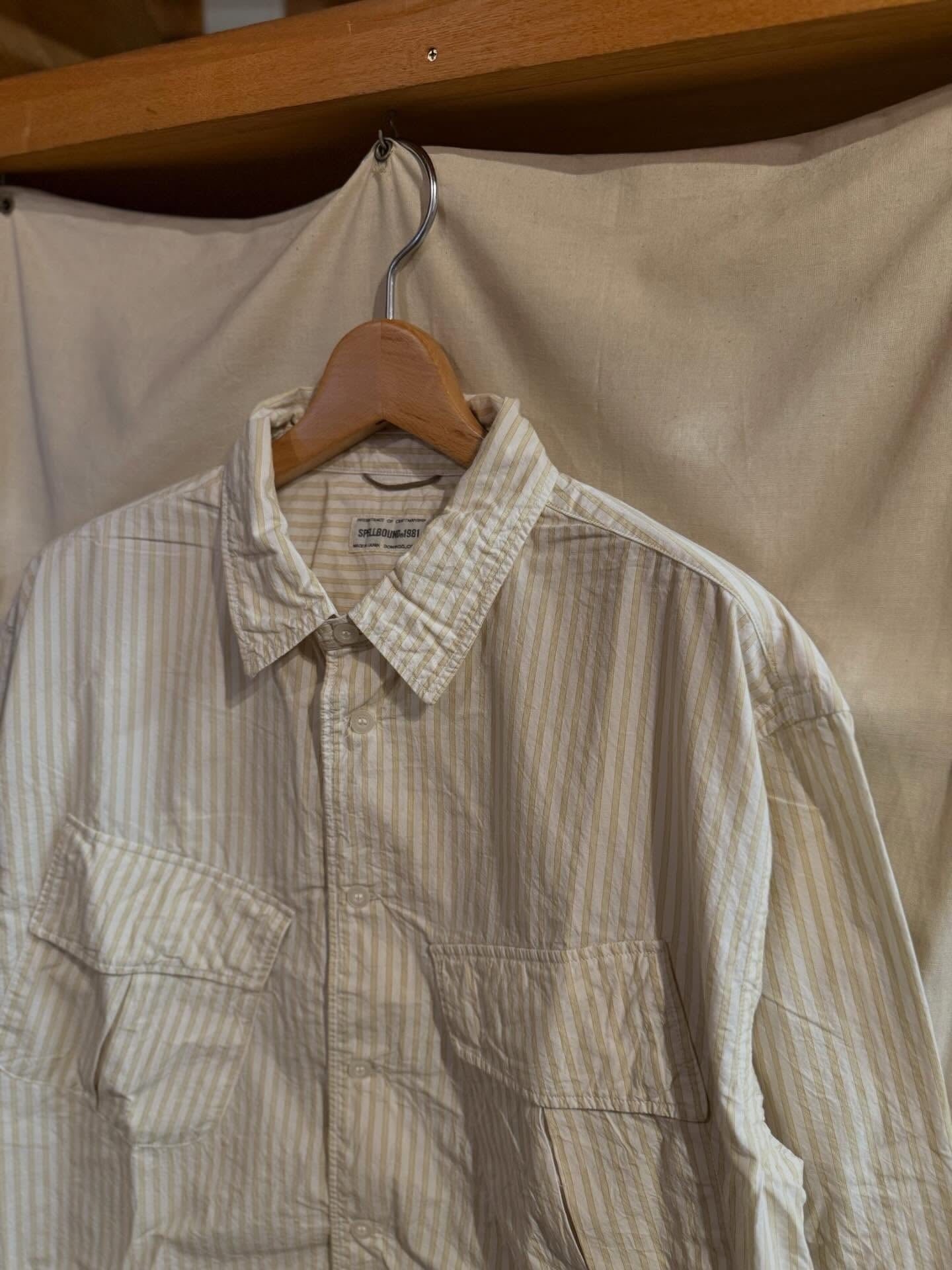 ミリタリーの名品として知られるファティーグシャツをデザインベースに、日常で扱いやすい一着へ再構築。