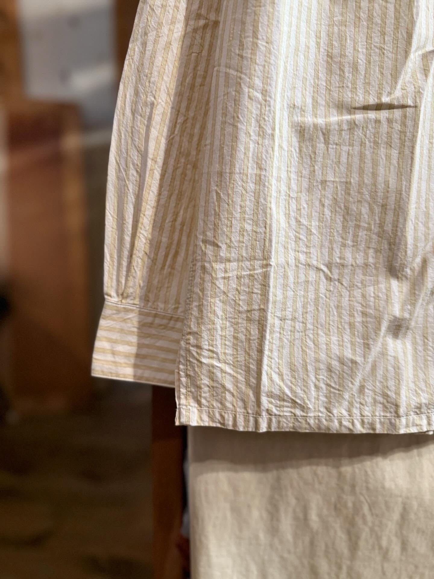 スクエアの裾やサイドスリット、大きめのボタンにより、シャツとしてはもちろん軽い羽織りとしても機能します。