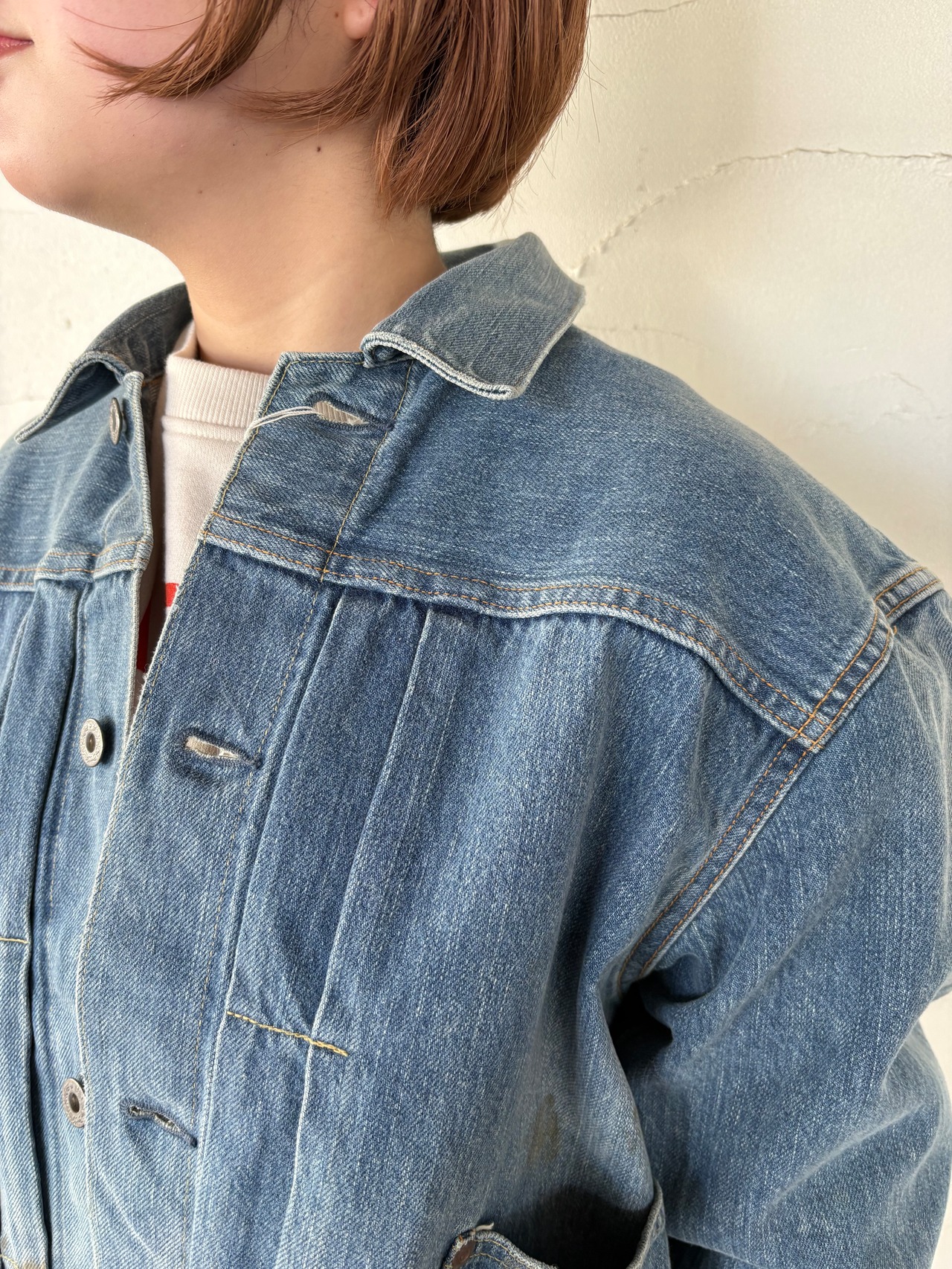 ほどよくヴィンテージ感のある風合いが魅力のデニムワークジャケット。