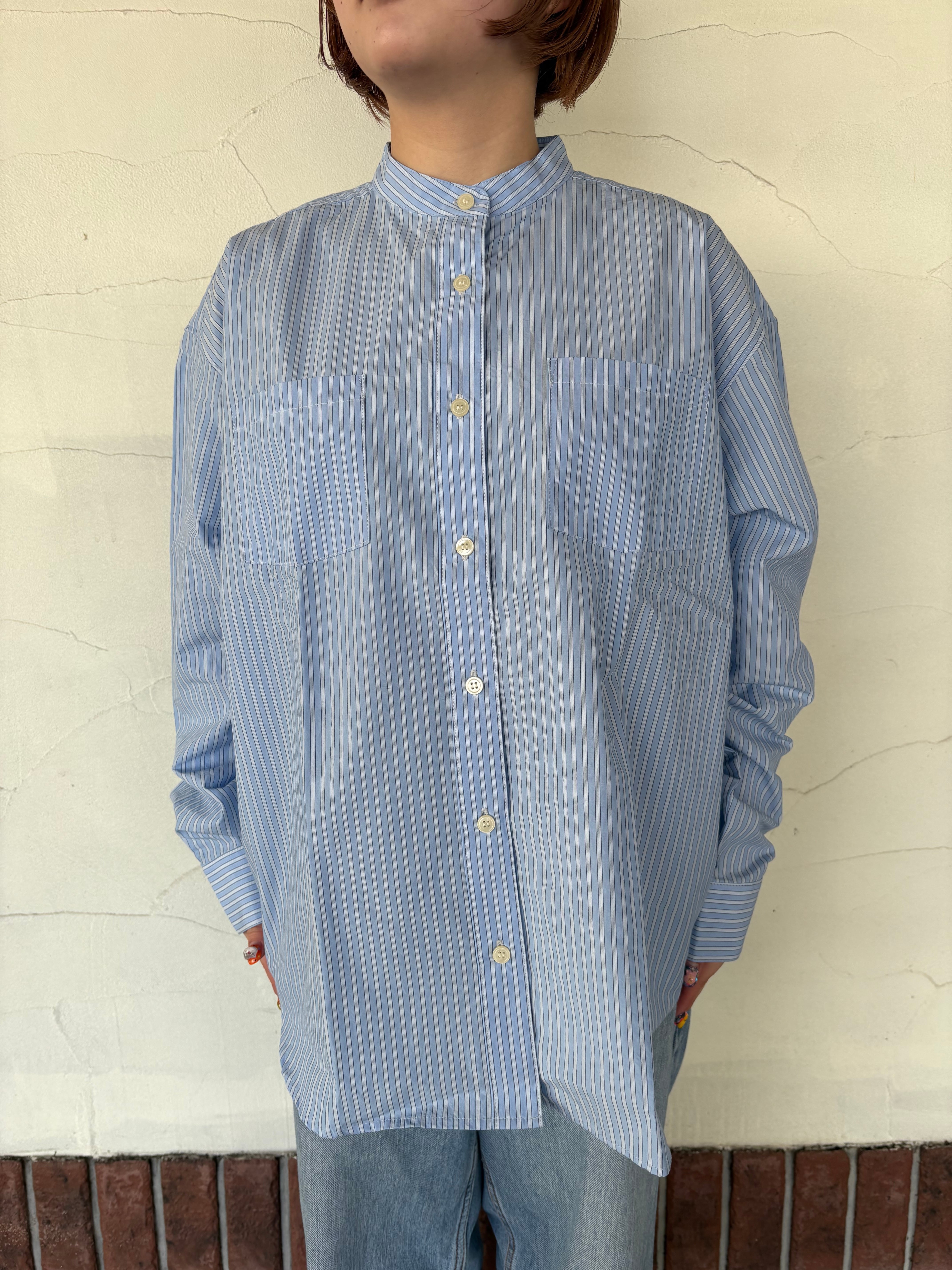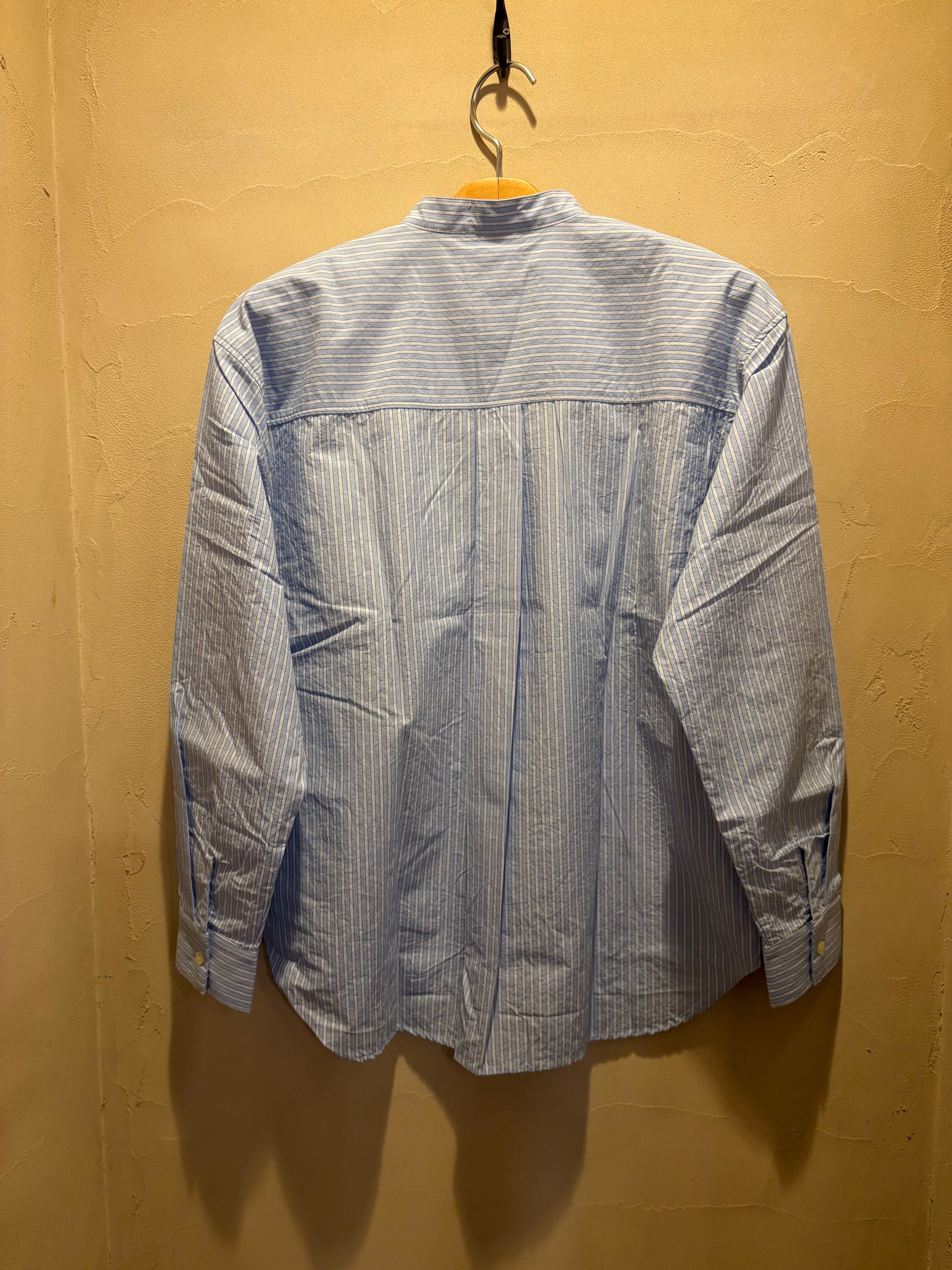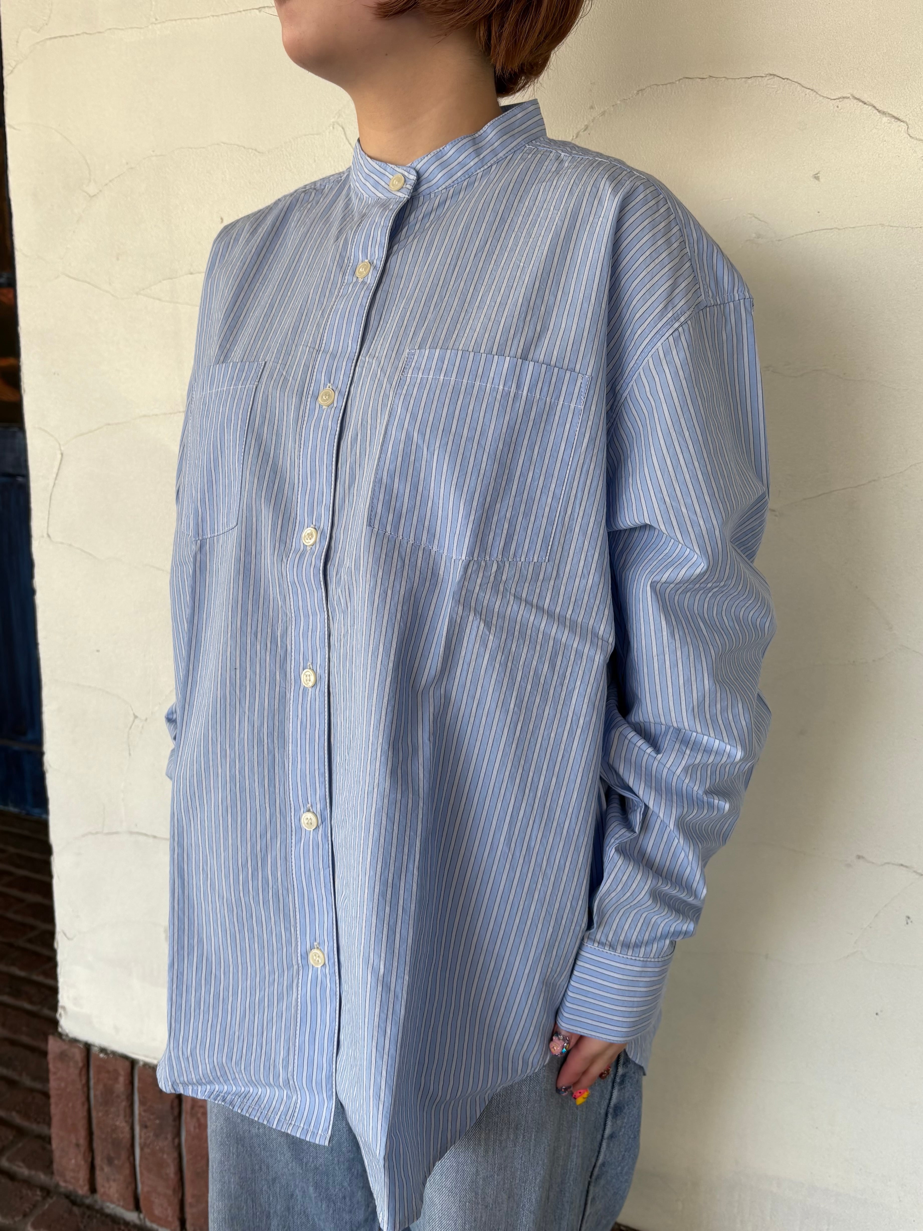 爽やかなストライプ柄が目を引く、軽やかな着心地のバンドカラーシャツ。