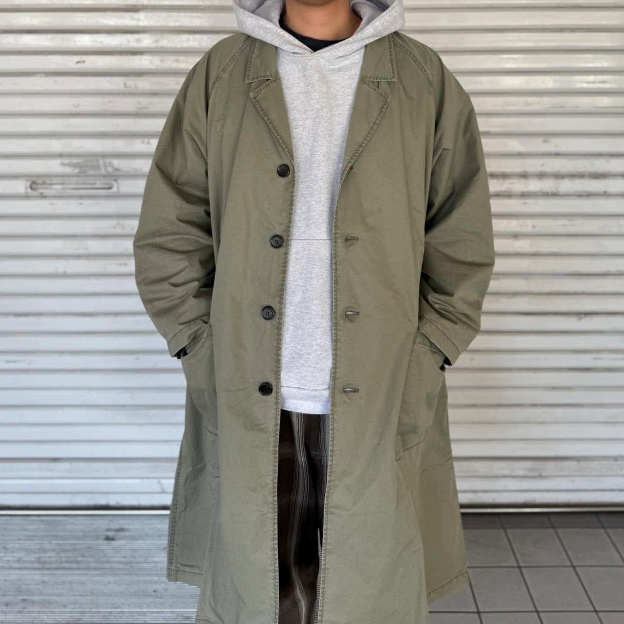 生地の特性を生かしてバイオウォッシュを施し、しっかりとしたアタリ感とフェード感を出したカジュアルなスタイルにに最適なコート。