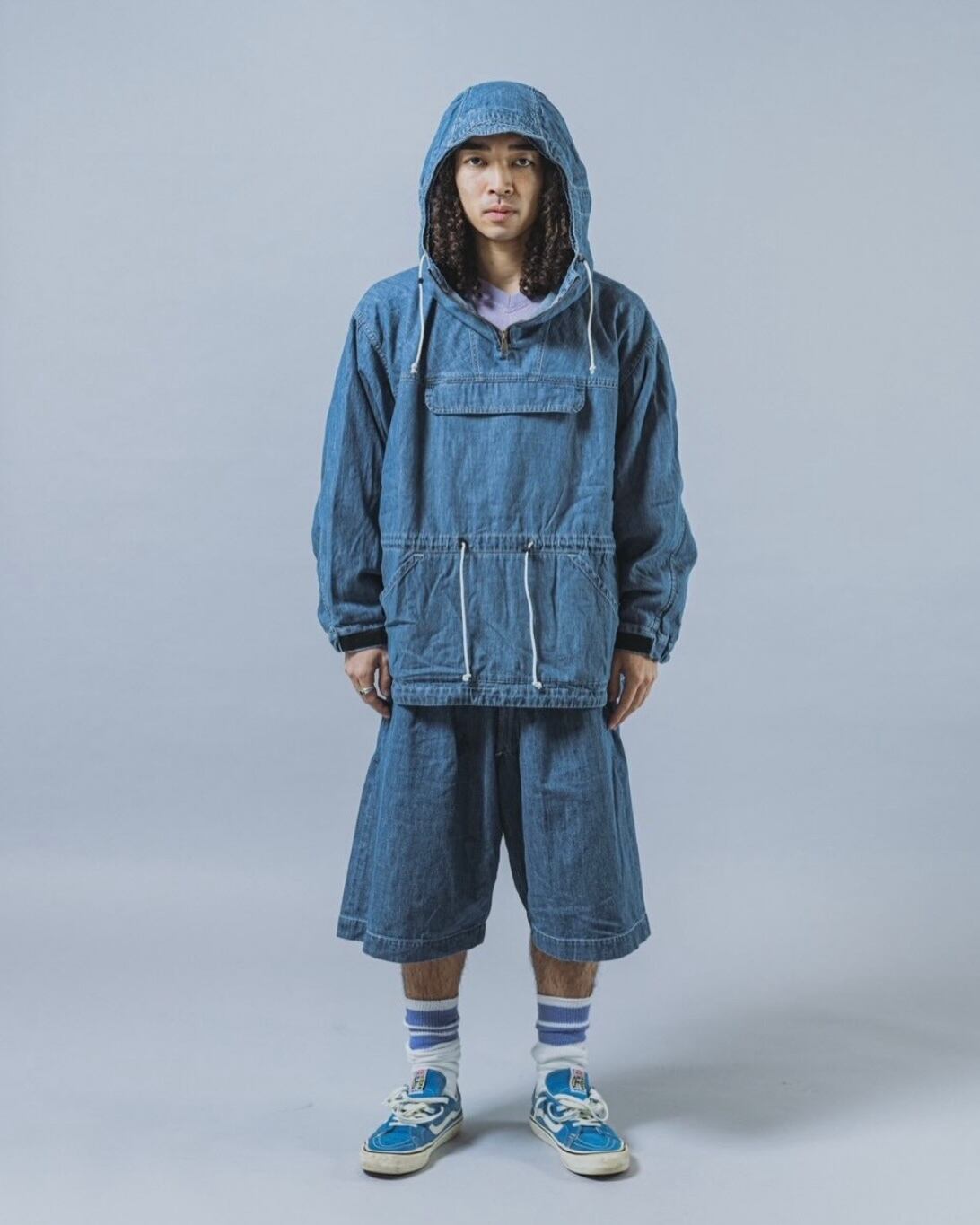 蒸し暑い日本の夏でも着やすい軽快な素材感です。様々な楽しみ方が詰め込まれた“全部盛り仕様”のアノラックです。