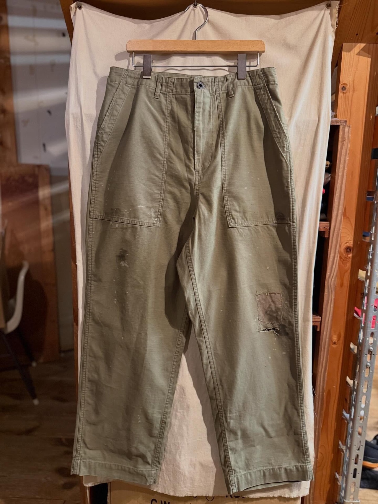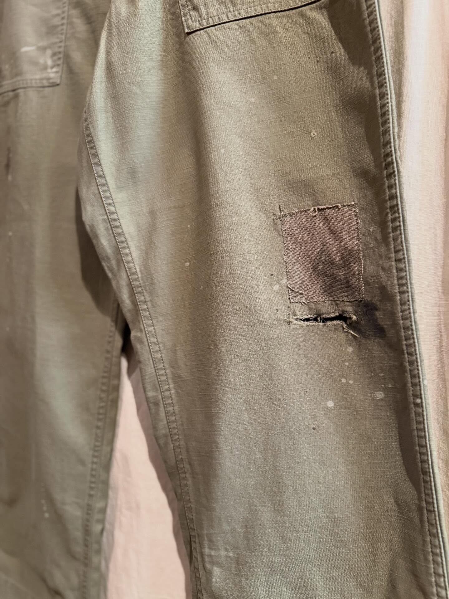 リアルな汚し加工やリペアを施し、まるでヴィンテージのような雰囲気に仕上がったこだわり深い一本です。
