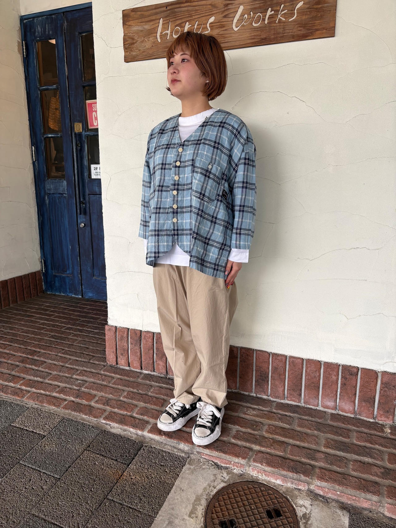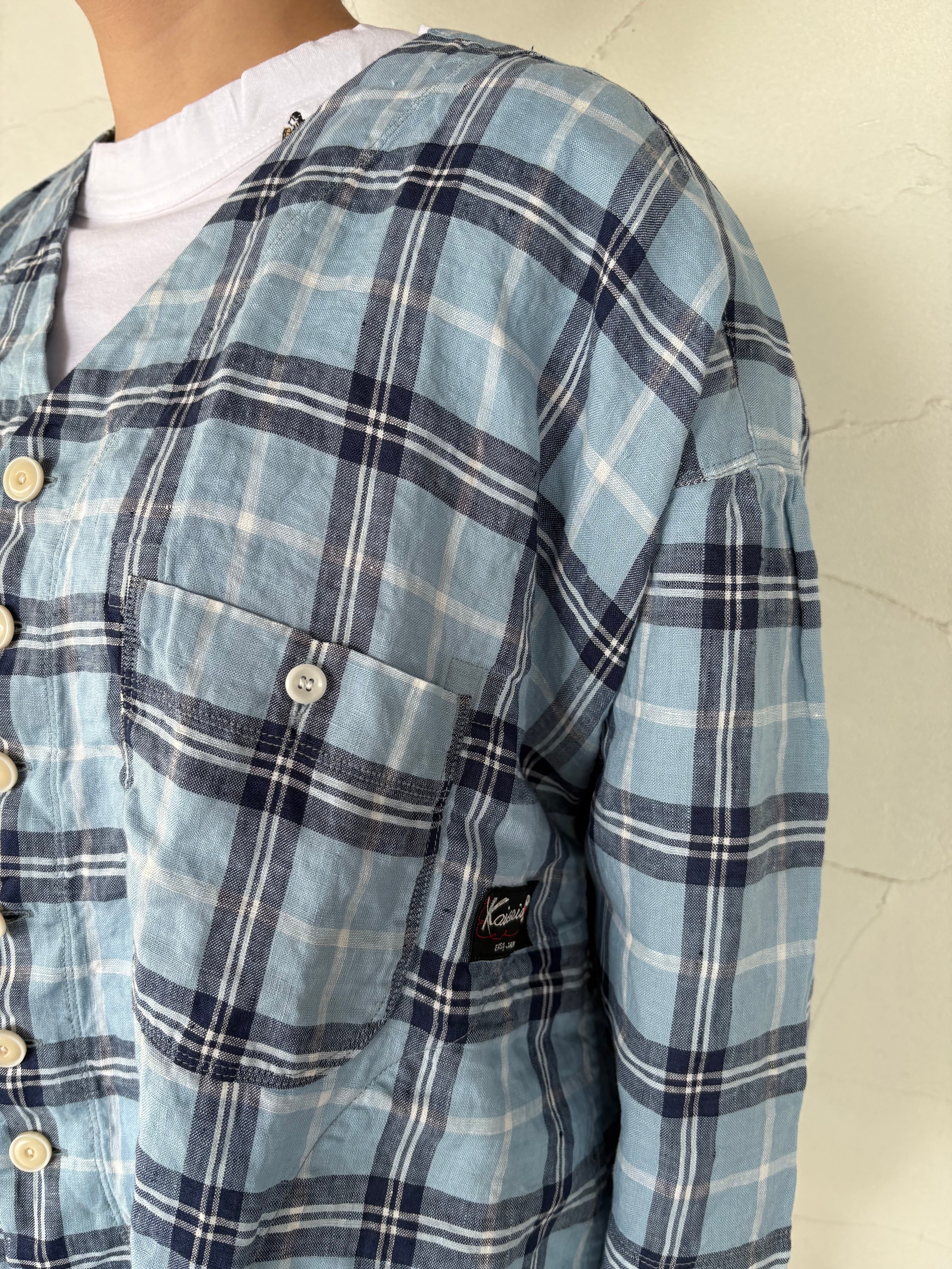 [快晴堂] “リネンタータンチェック ふわりカーディガン”