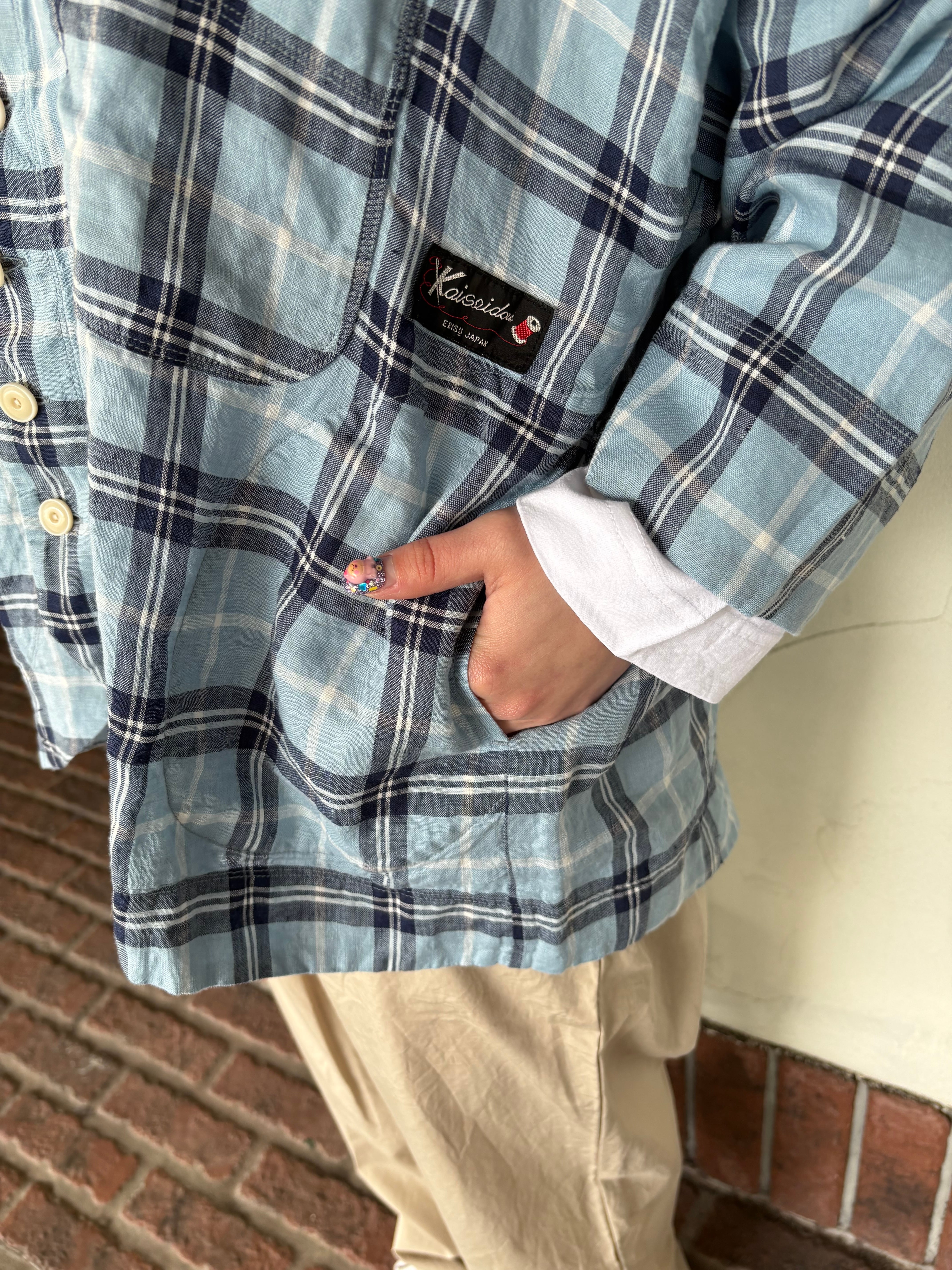 チェック柄はスコットランドの伝統的な柄格子になる糸の帯色や配列は快晴堂のこだわりをもとに織り上げてもらいました